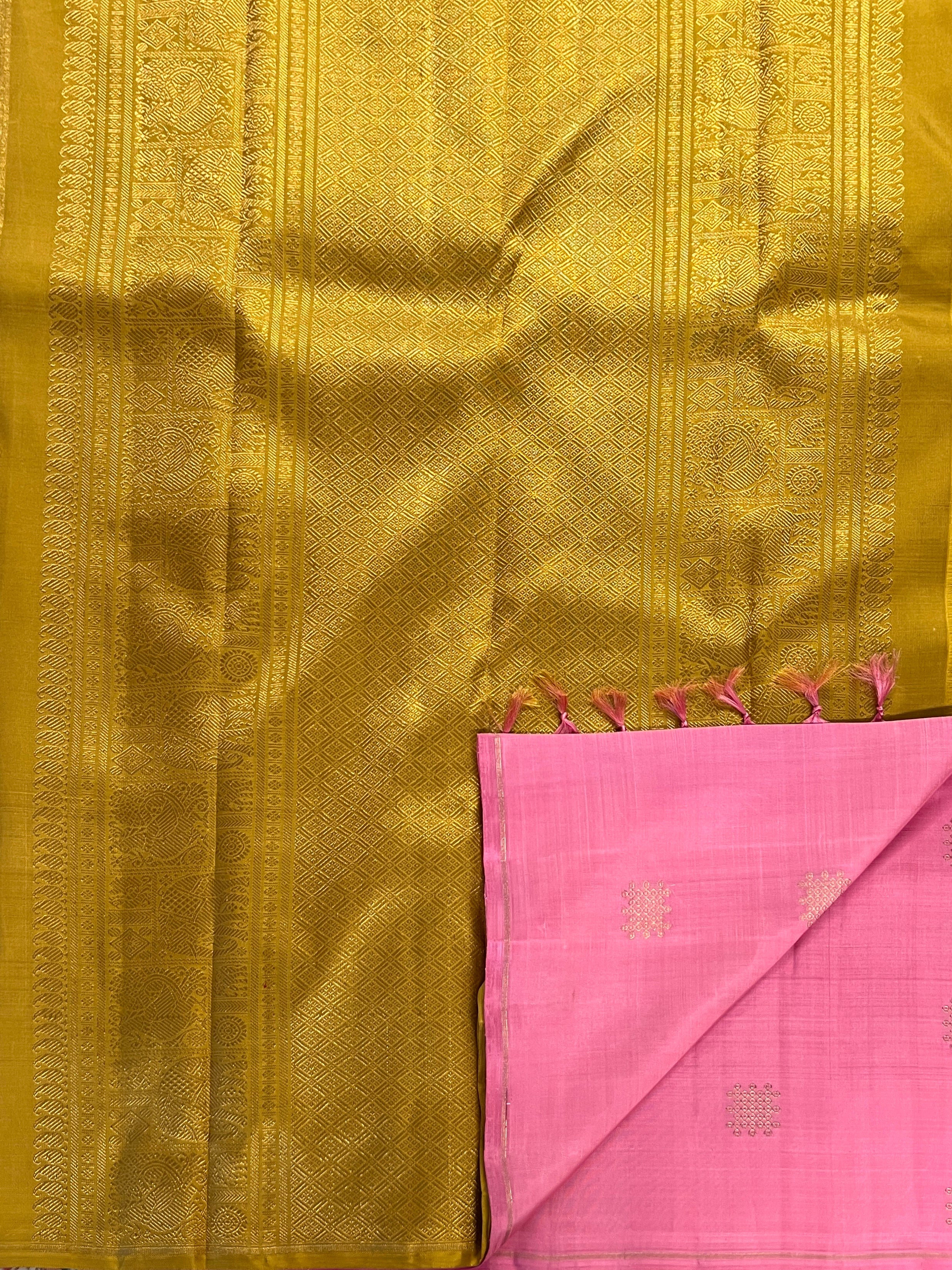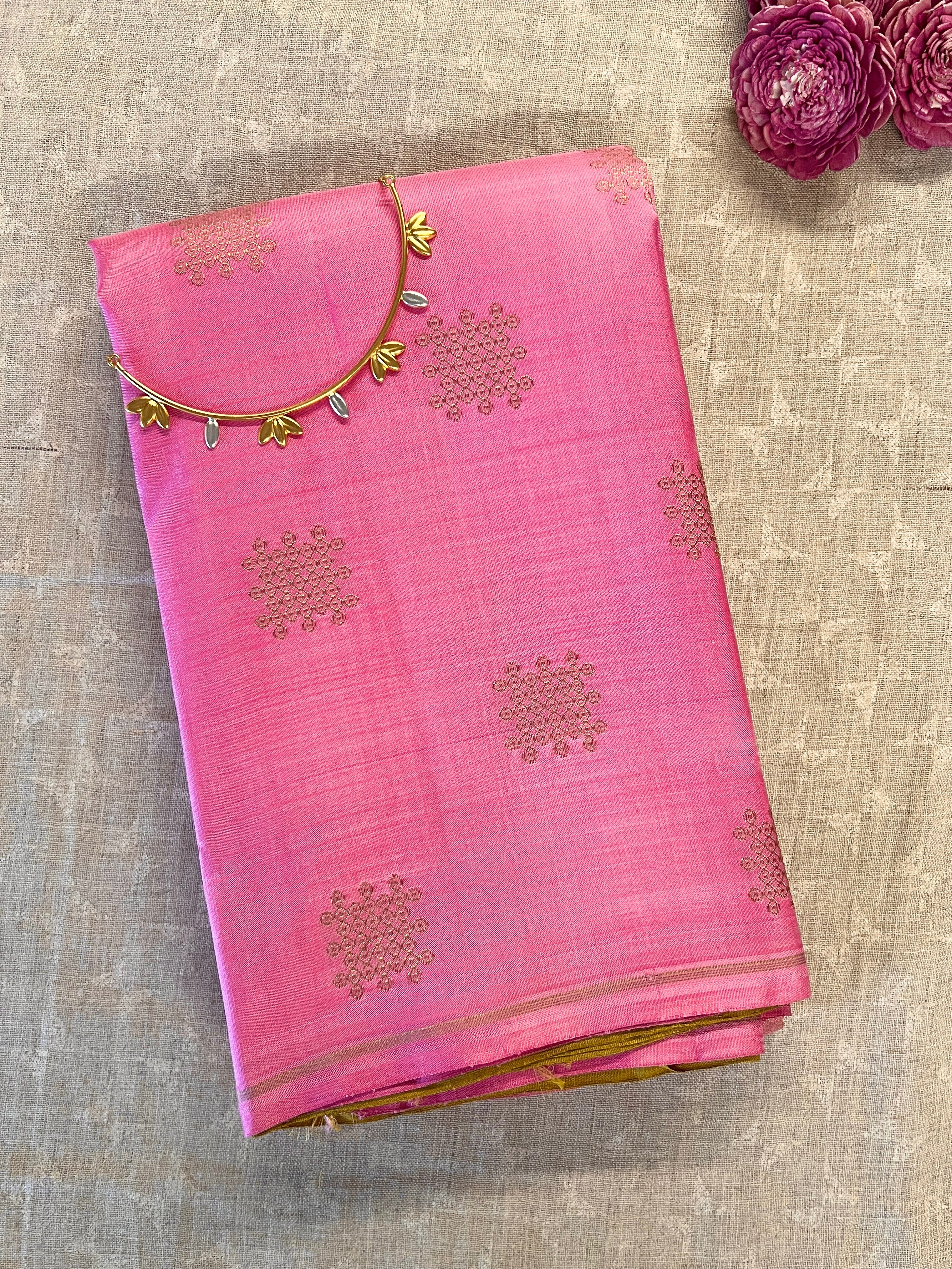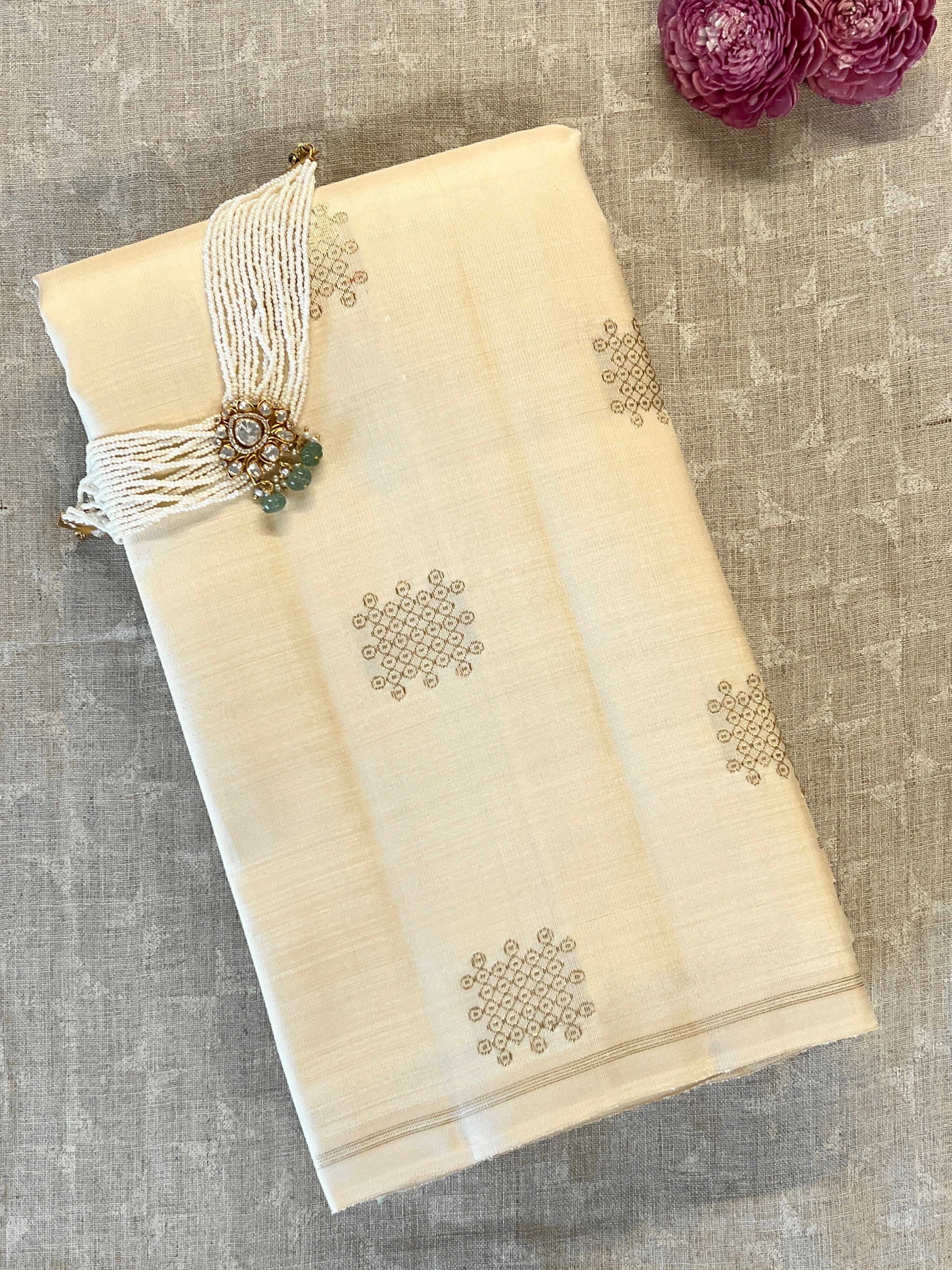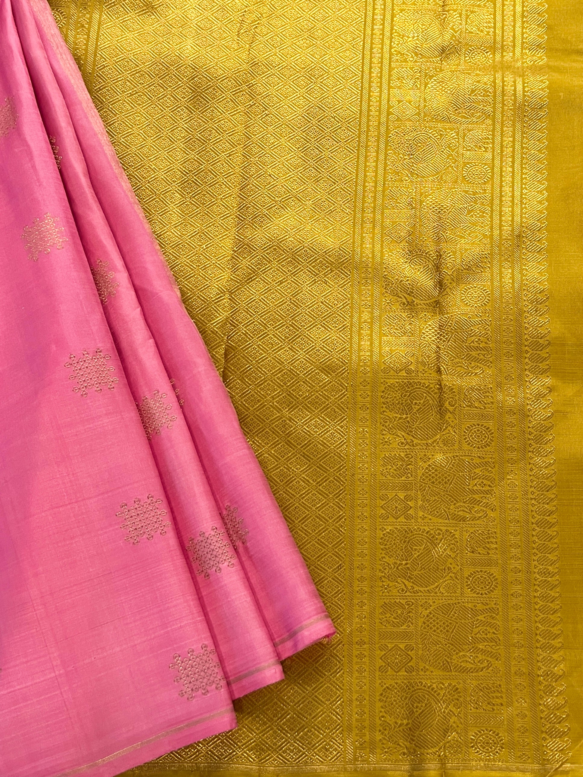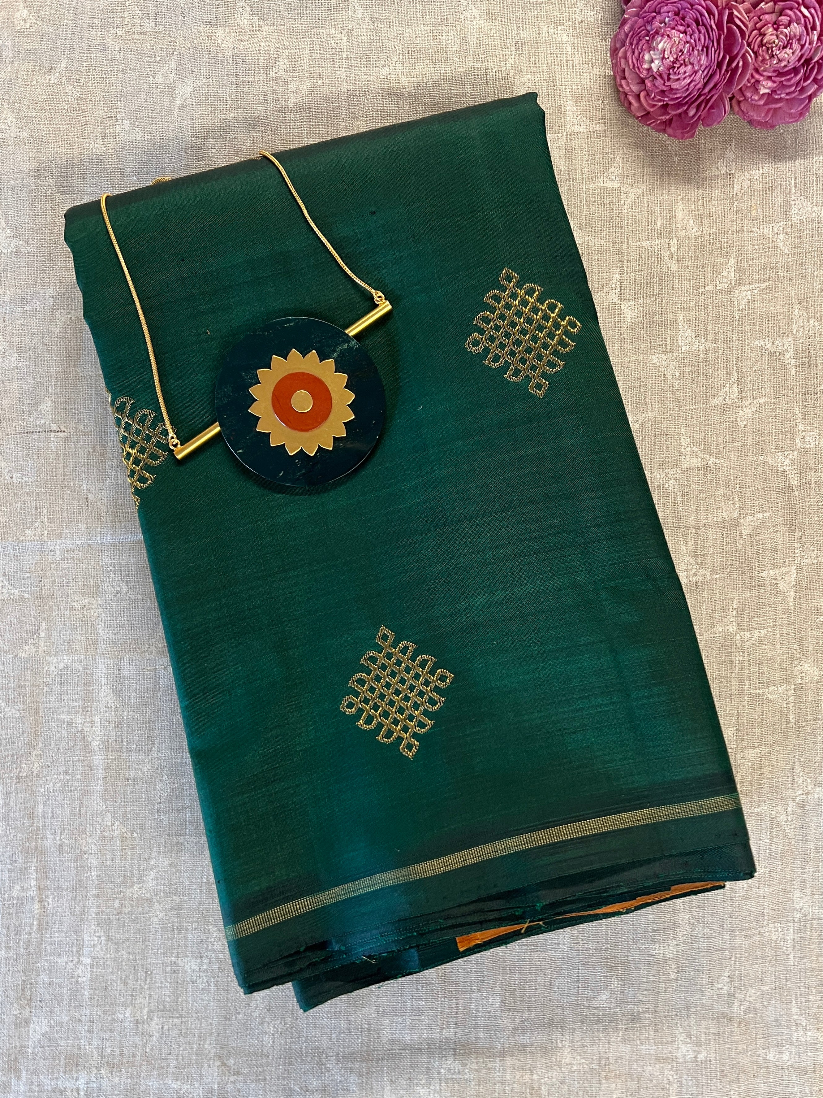 - Pallu and Blouse in contrasting colours to the saree, creating a striking and elegant look.