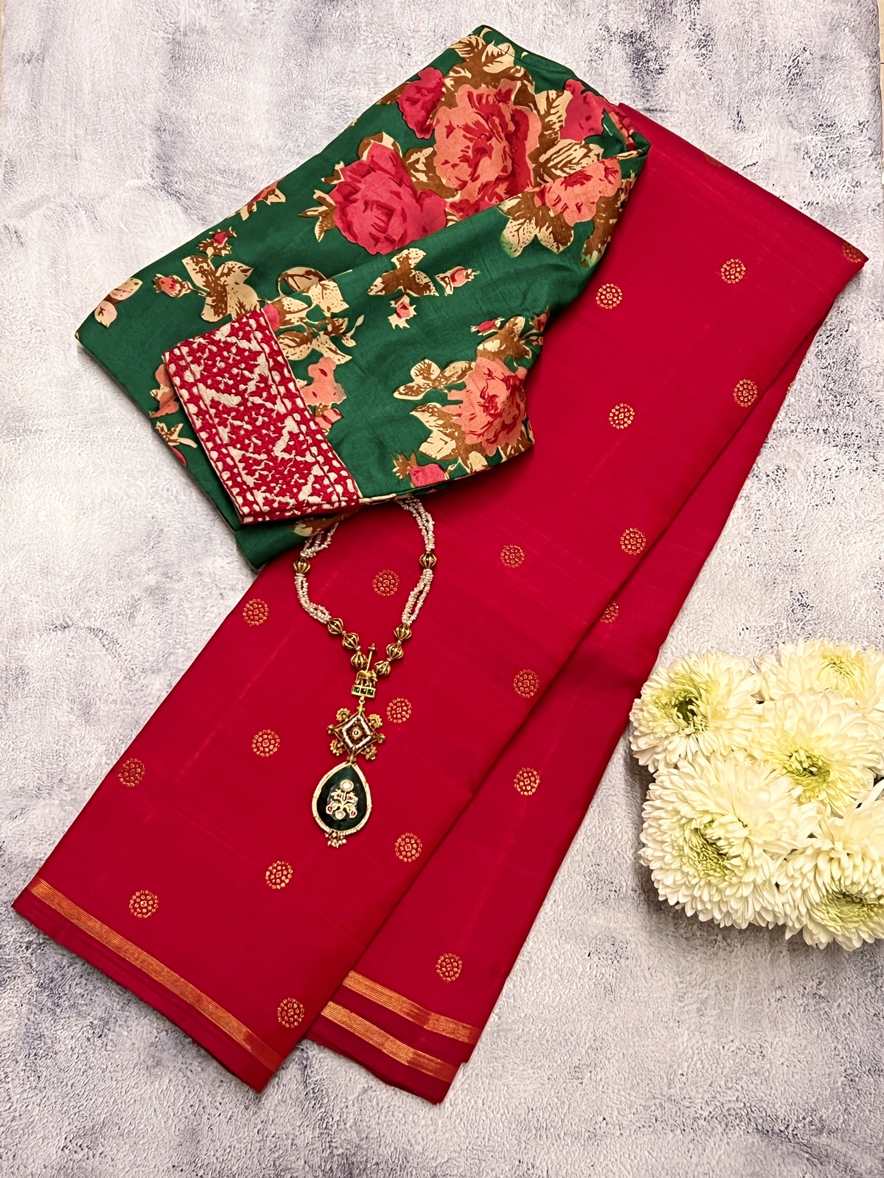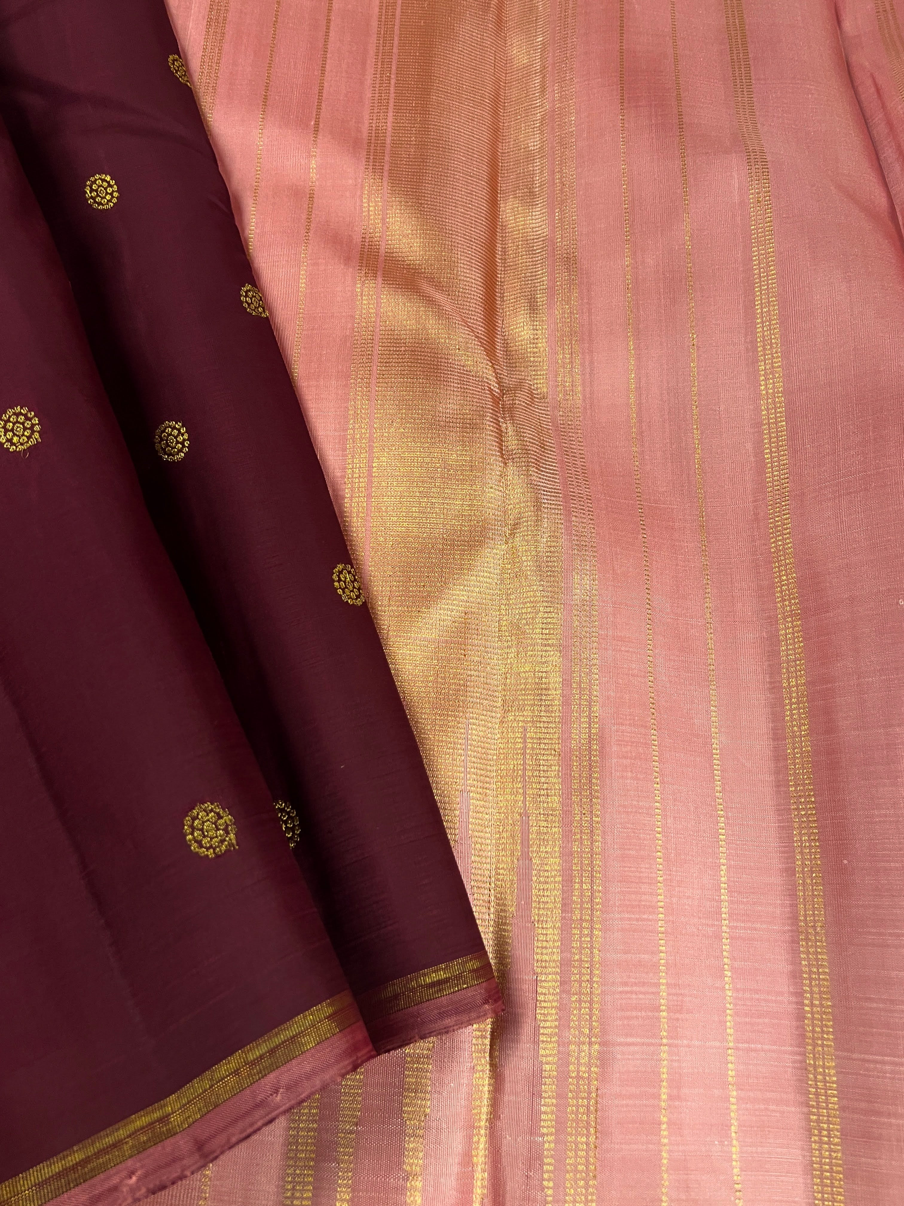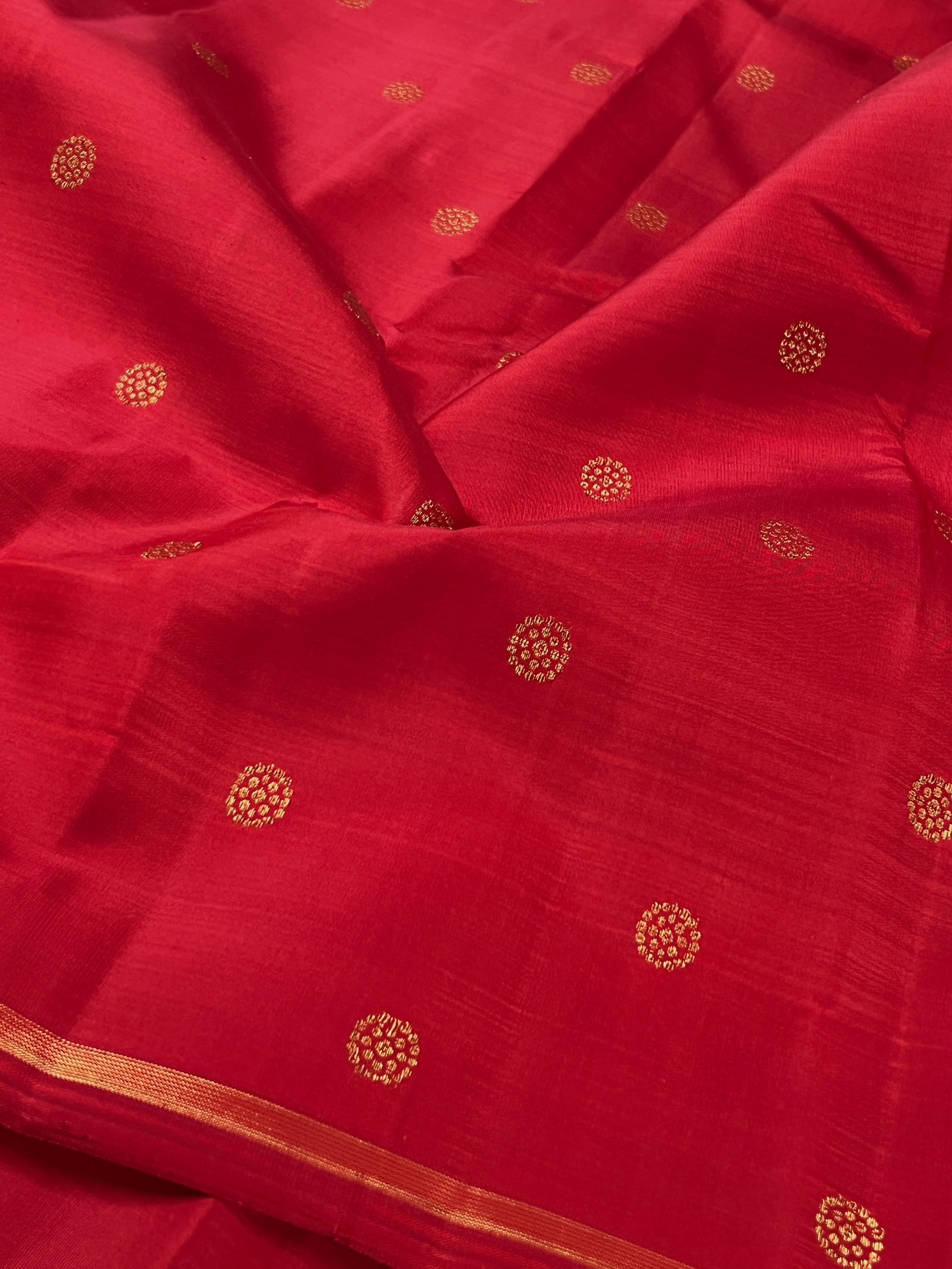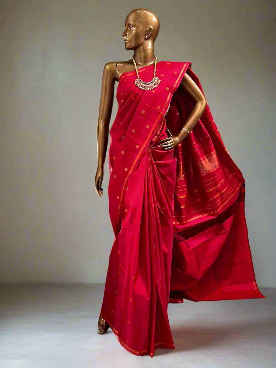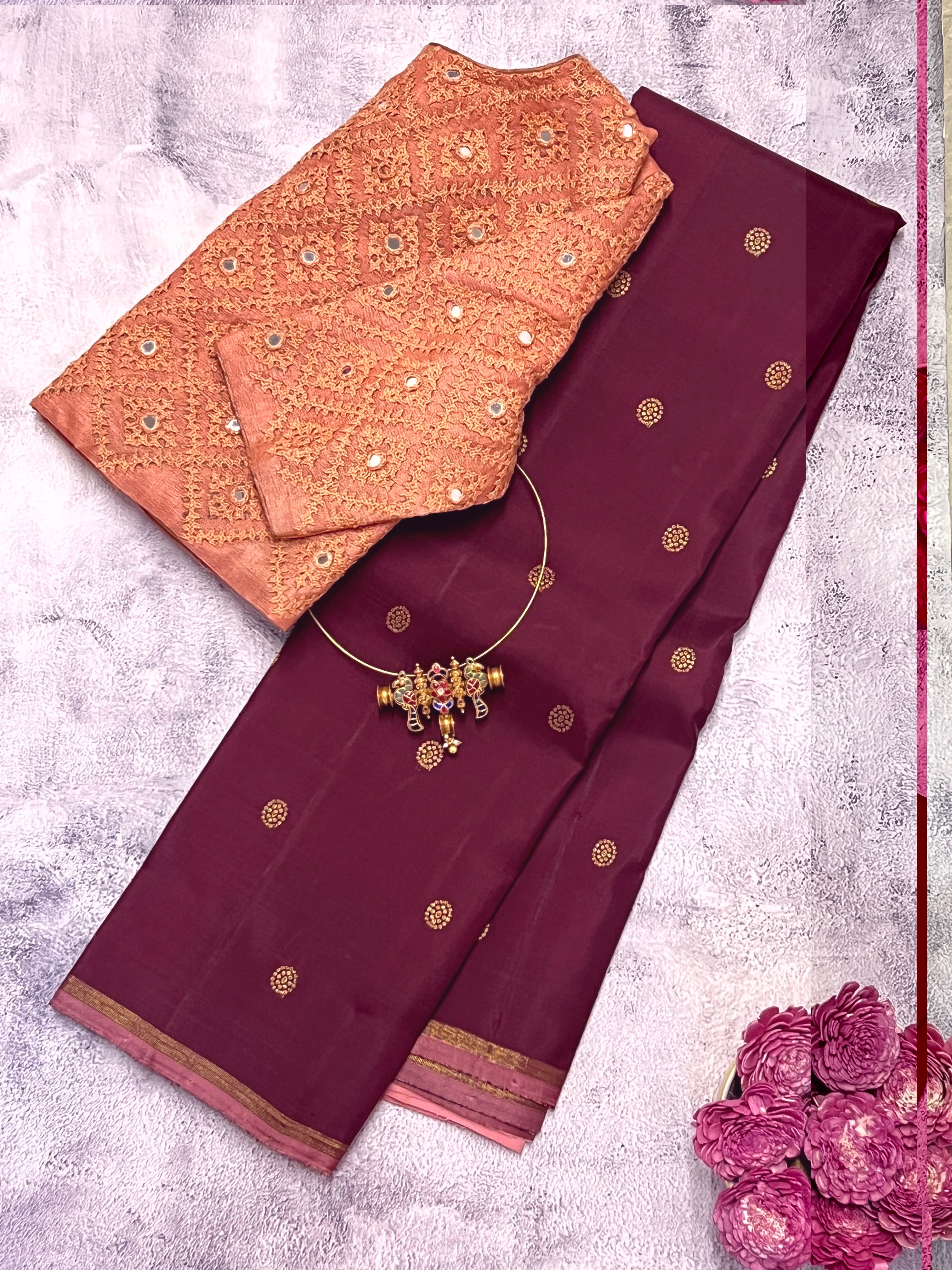 - Dots woven in zari on the body
