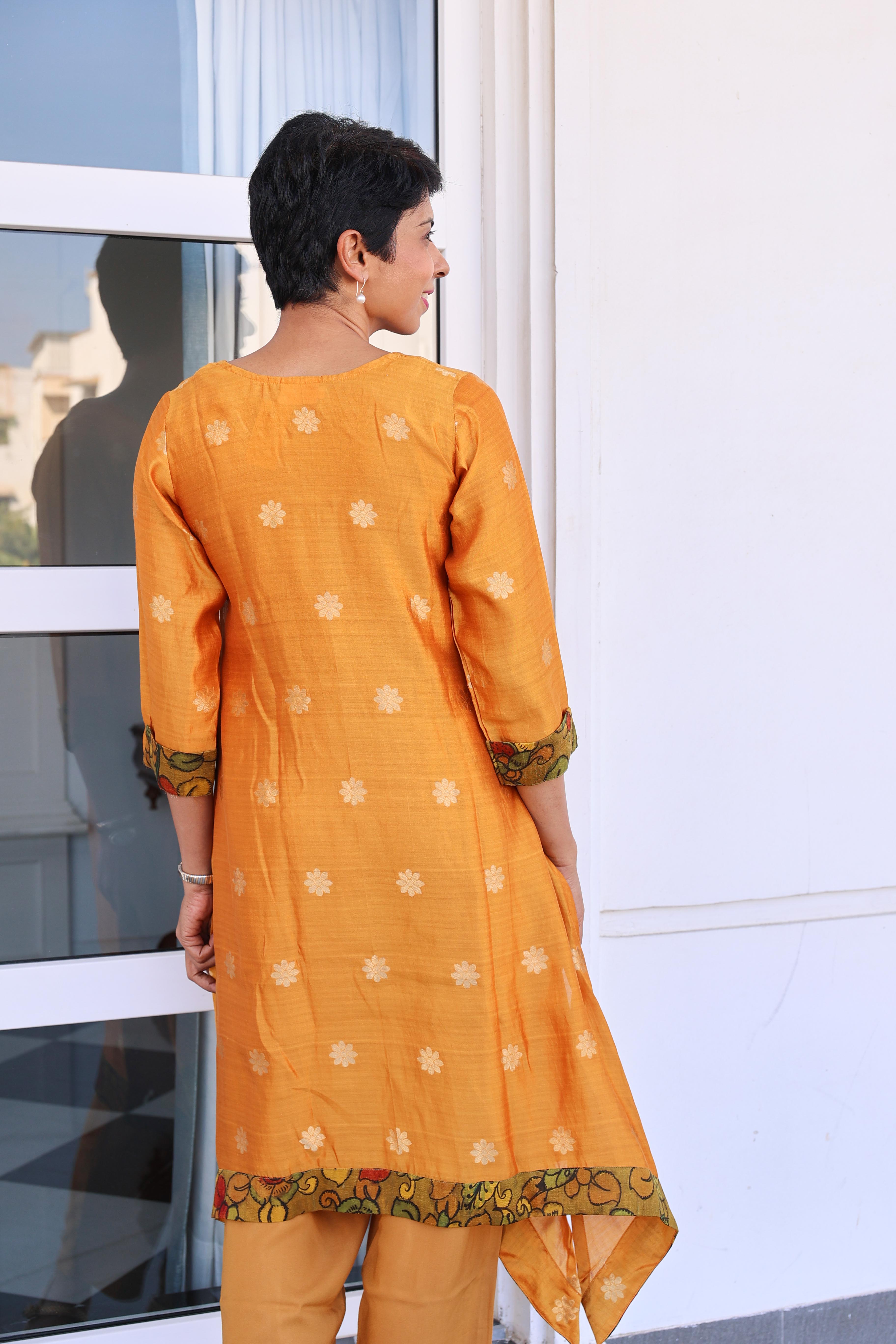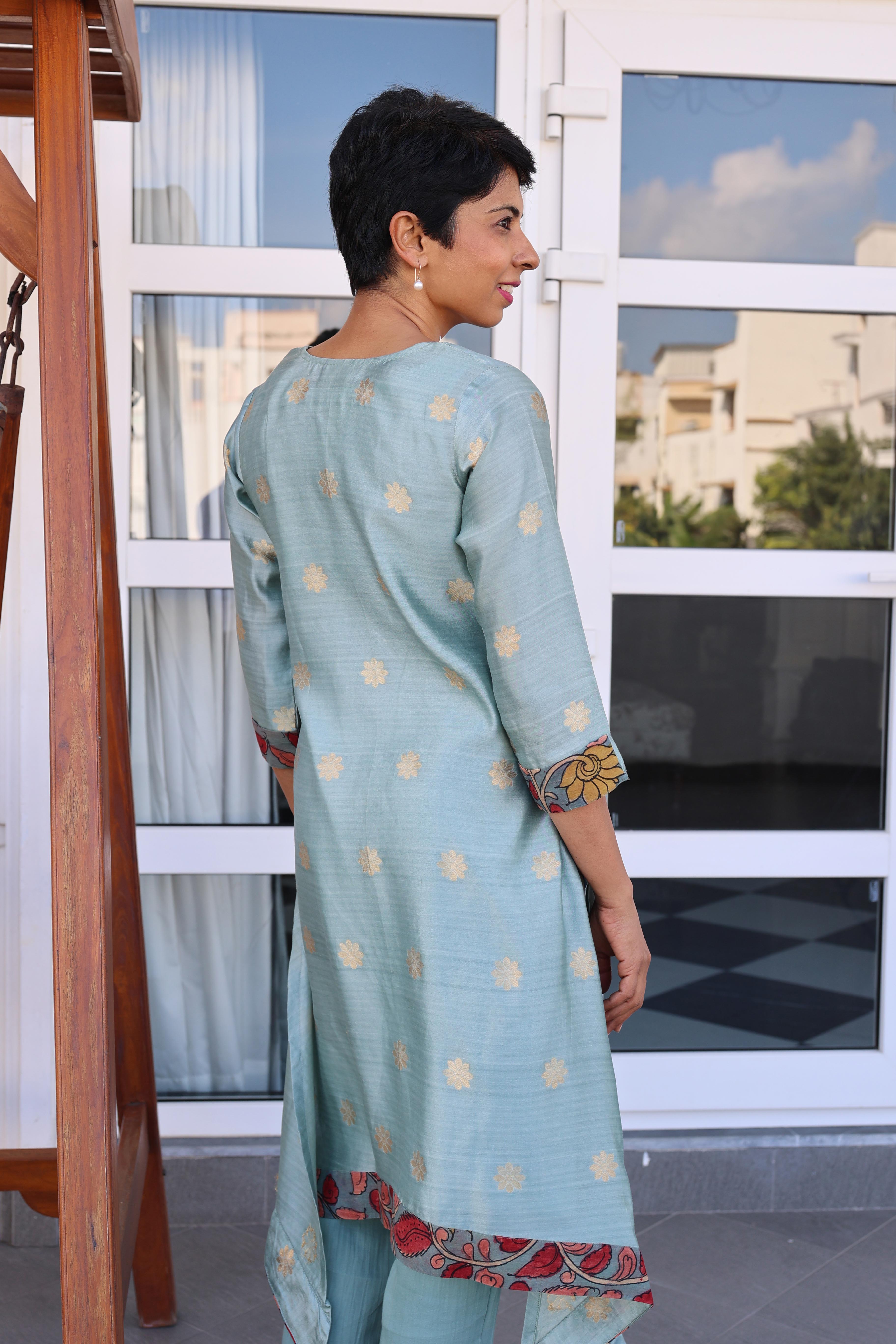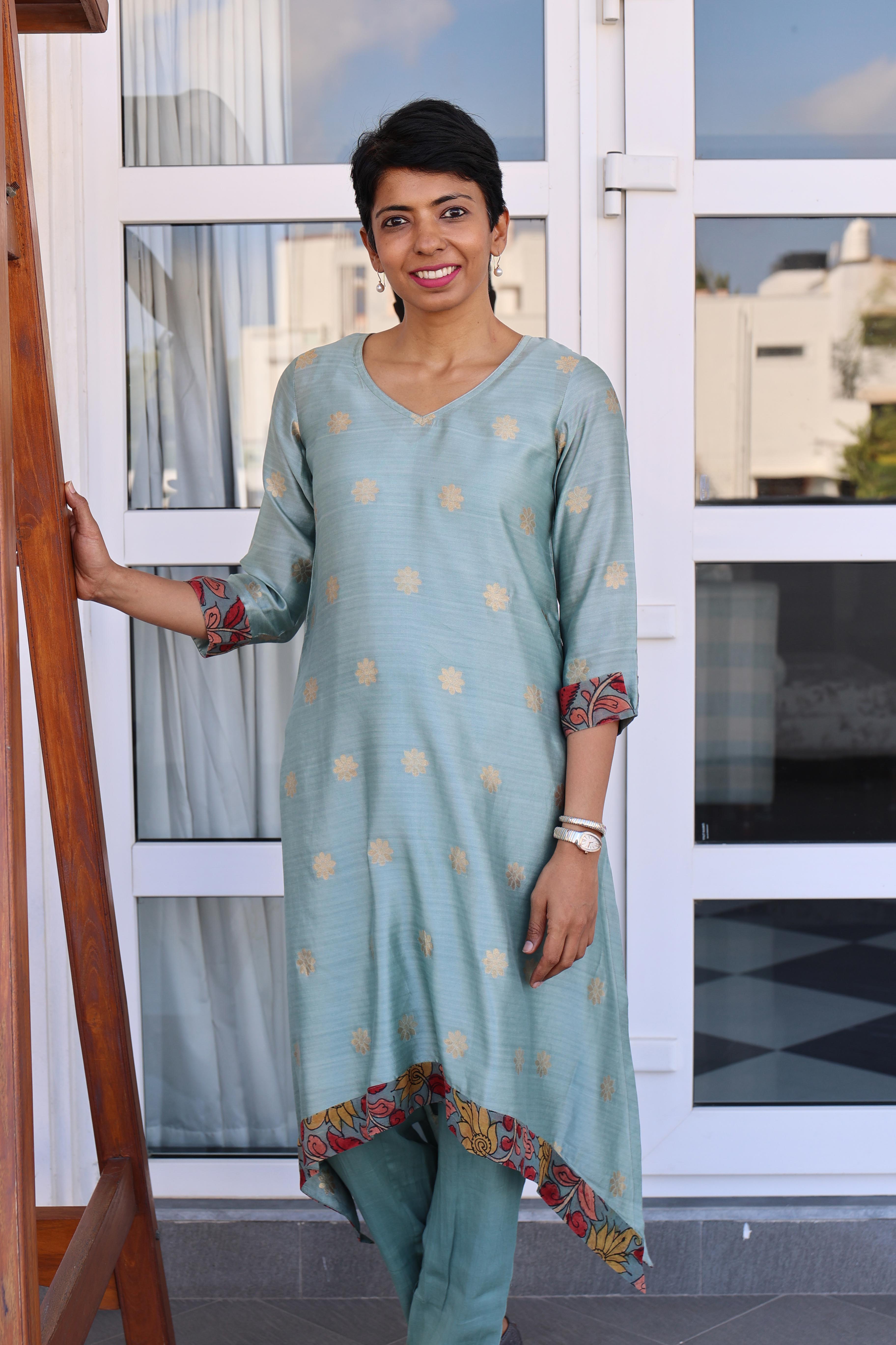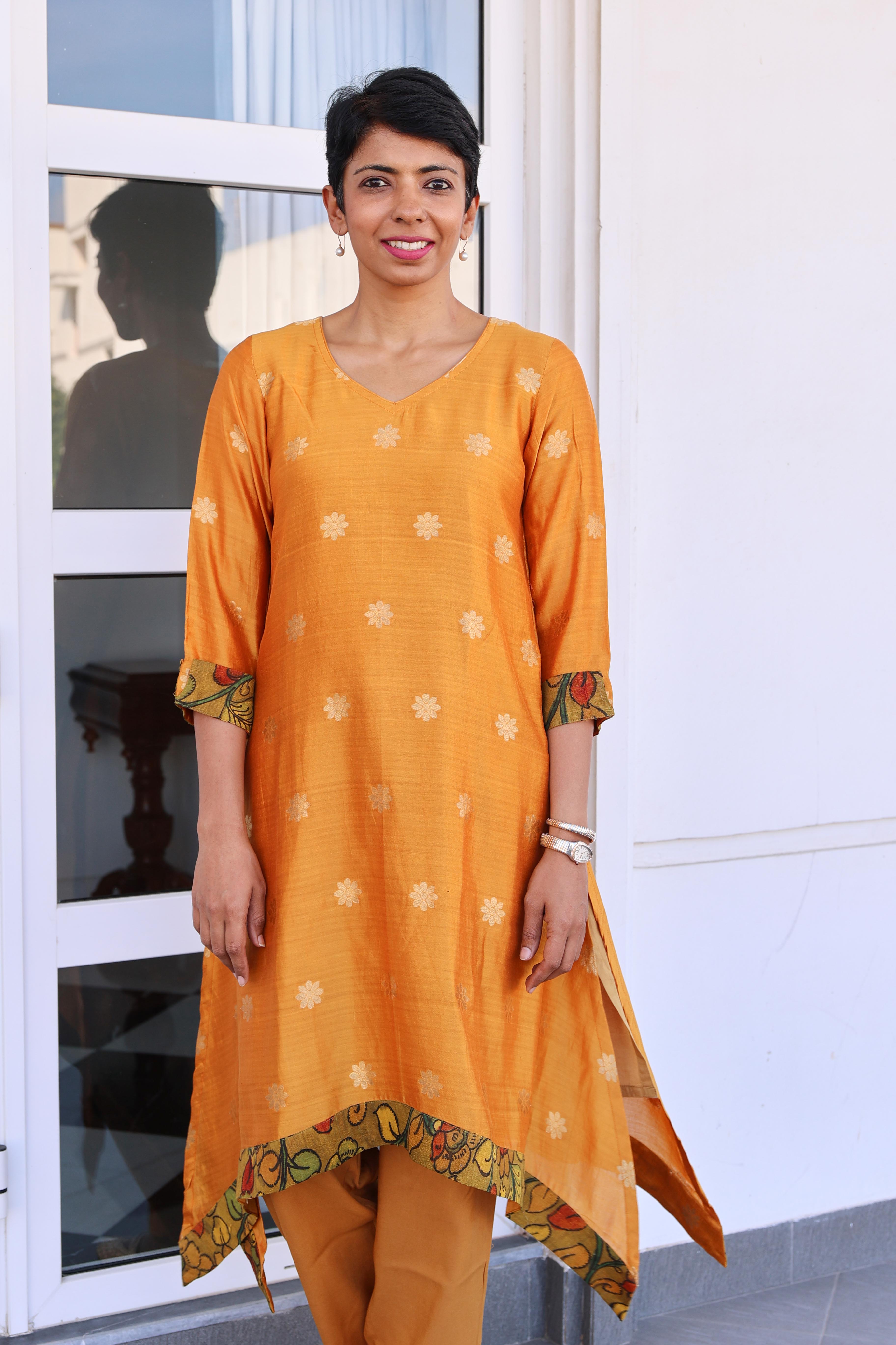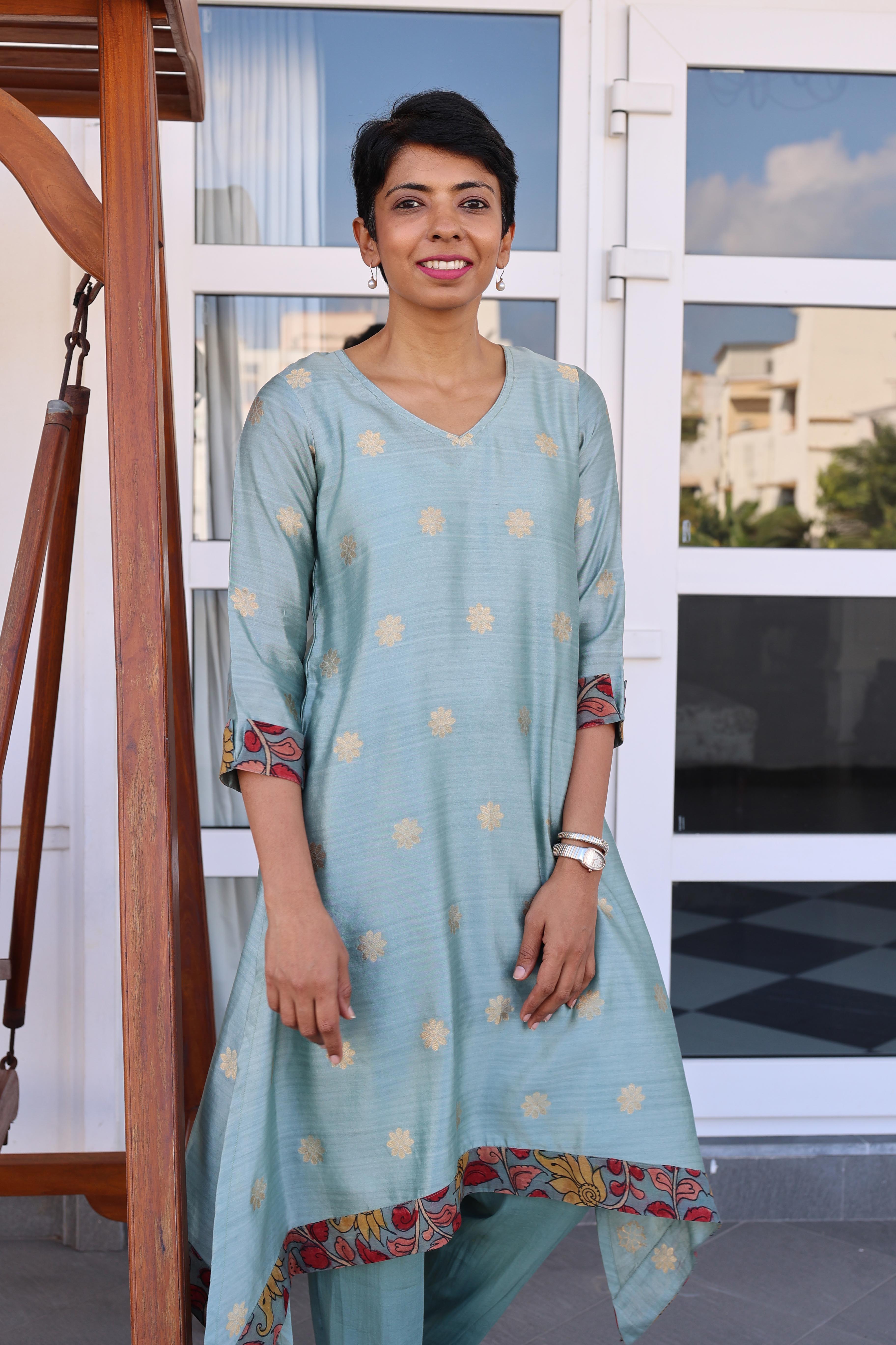 - Hand painted kalamkari detailing on the hemline and sleeves