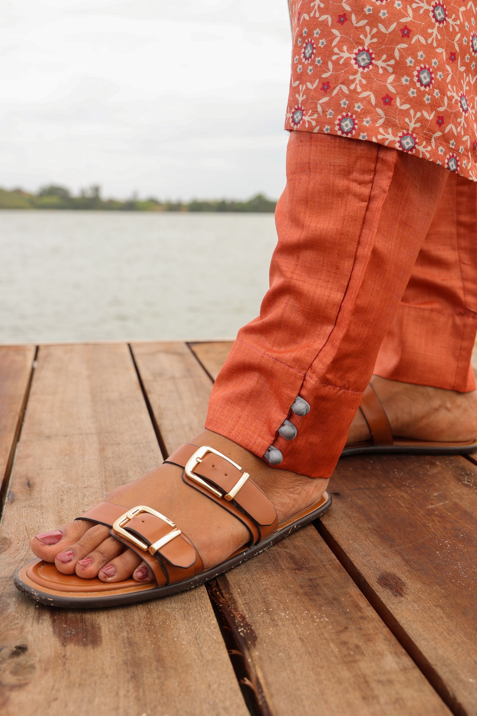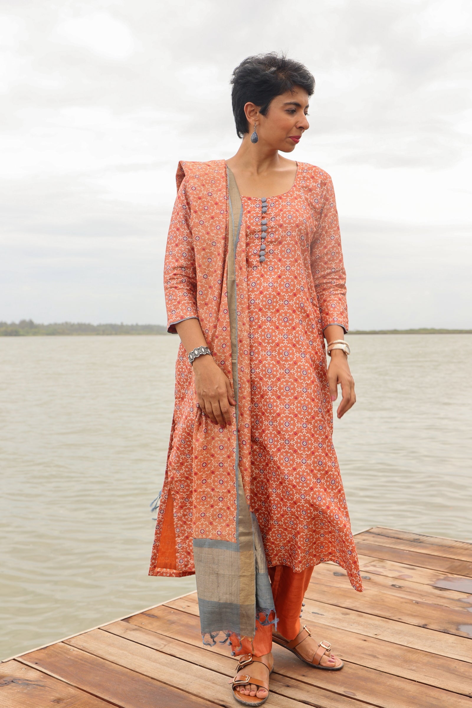 Tile printed tussar kurta set