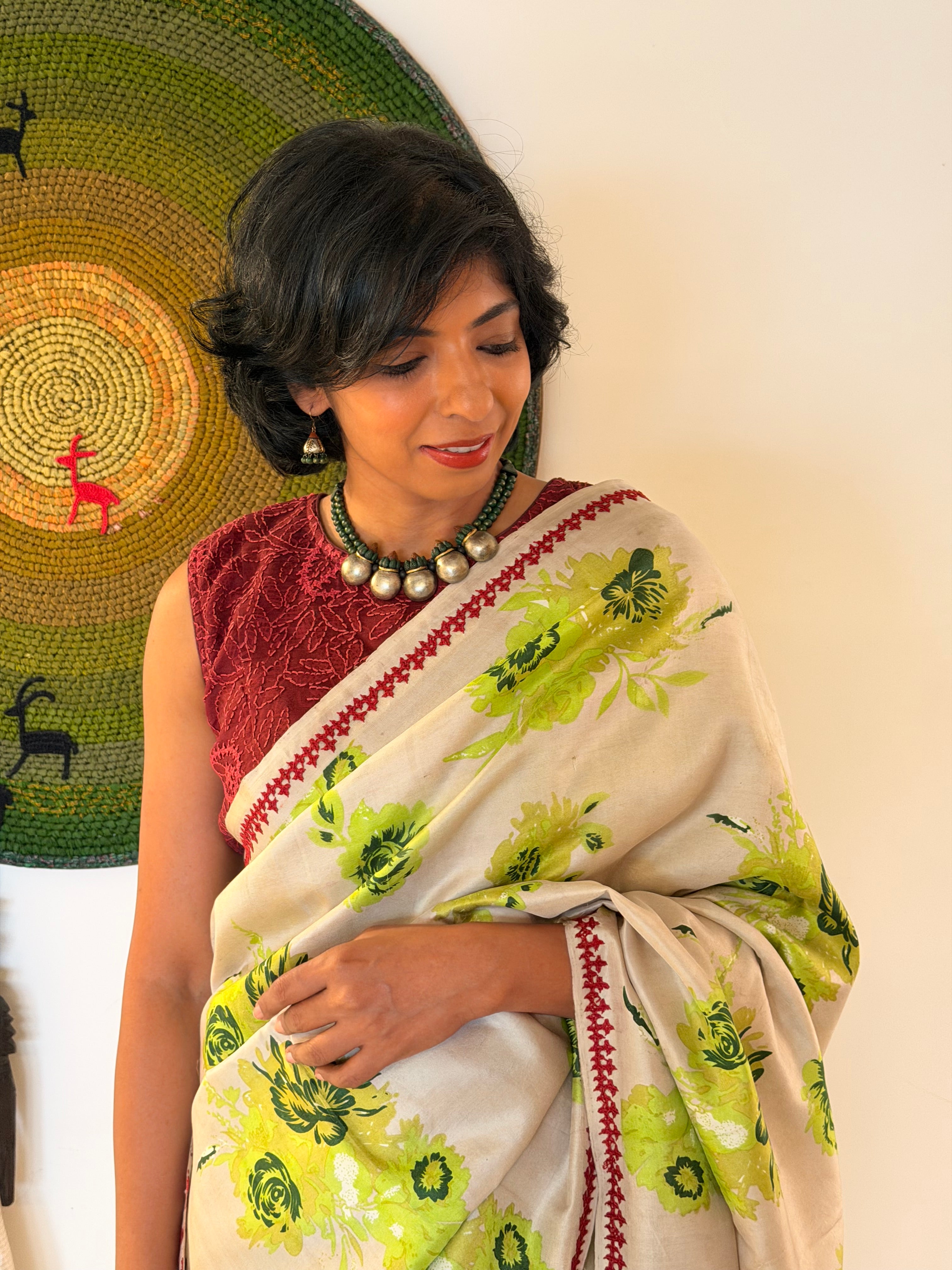 Anagha Foliage Kutch Embroidered Kanchi Silk Saree