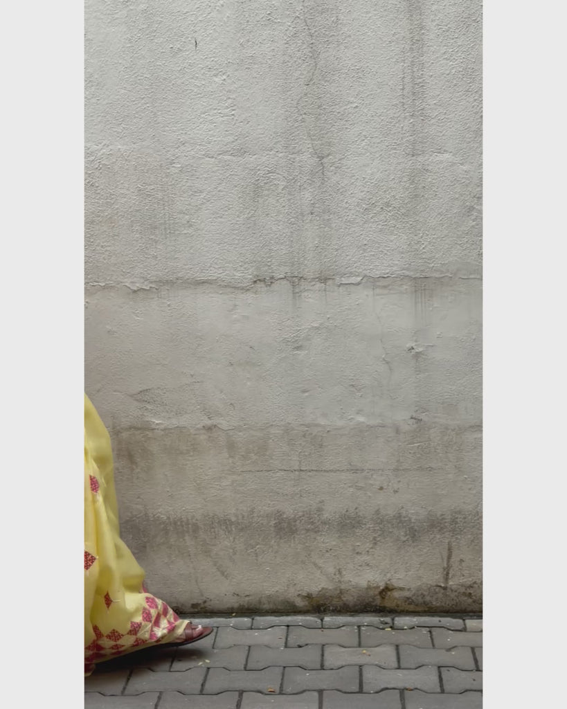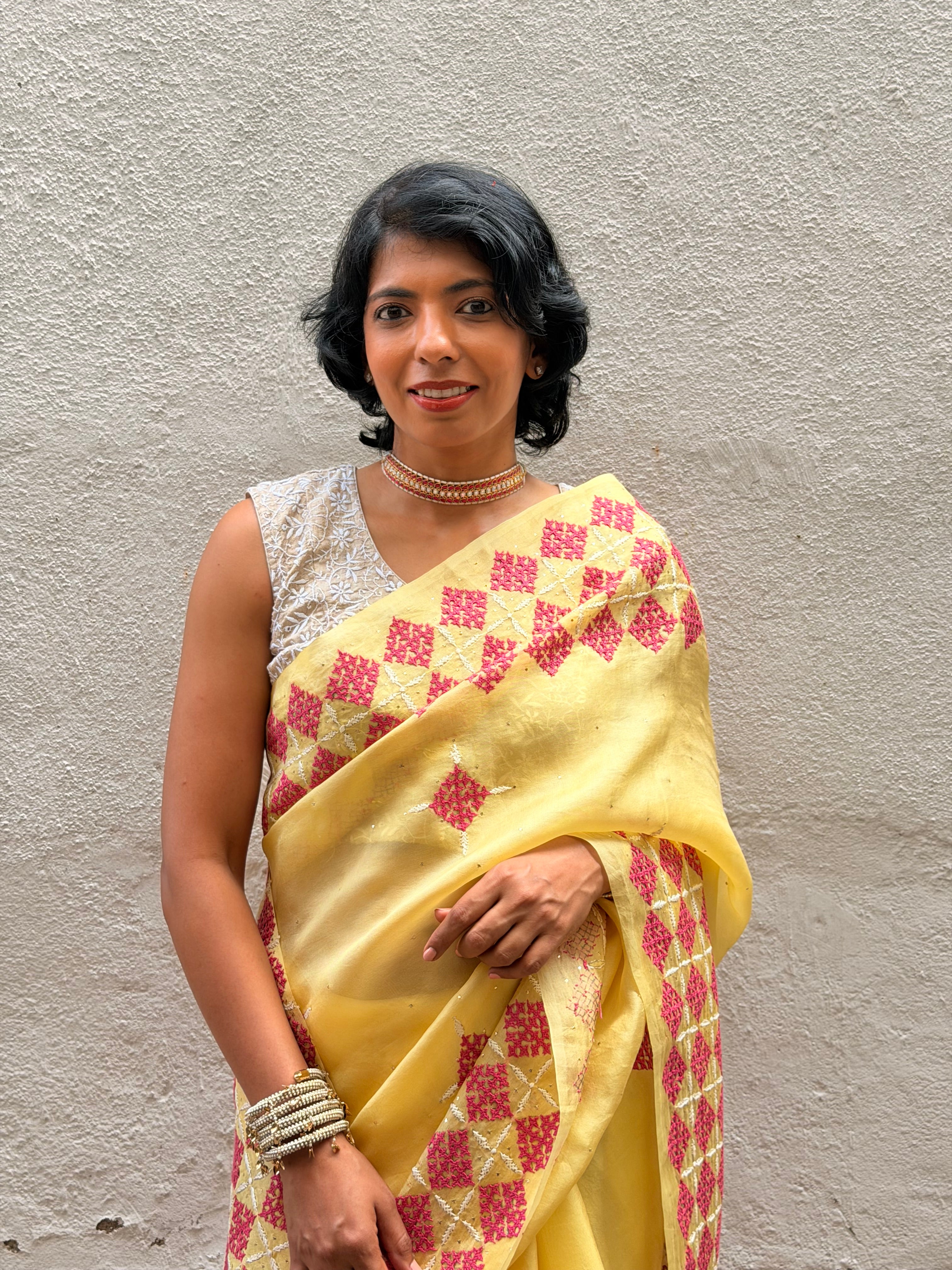 Tuhina Yellow Kutch Embroidery Organza Saree