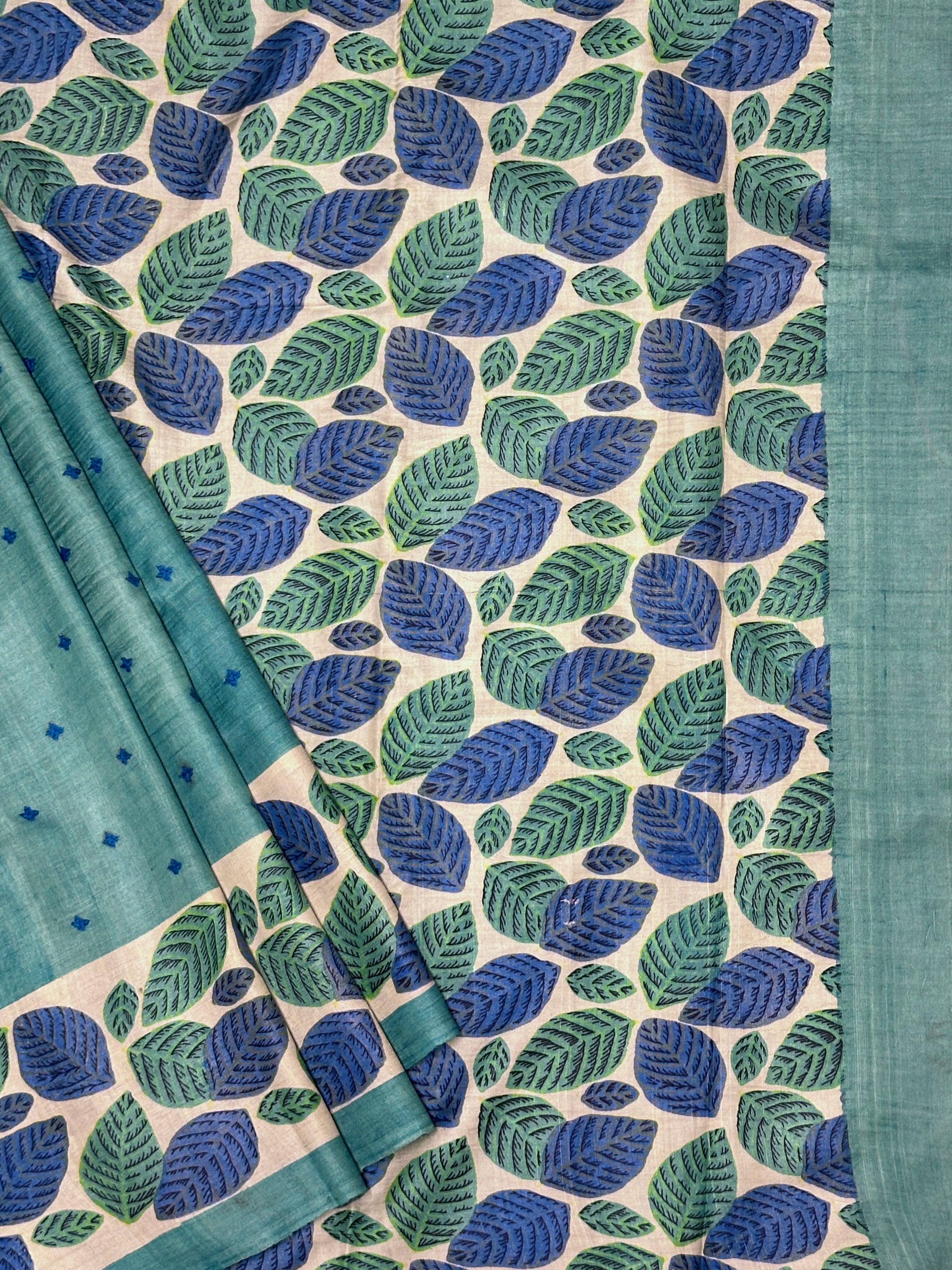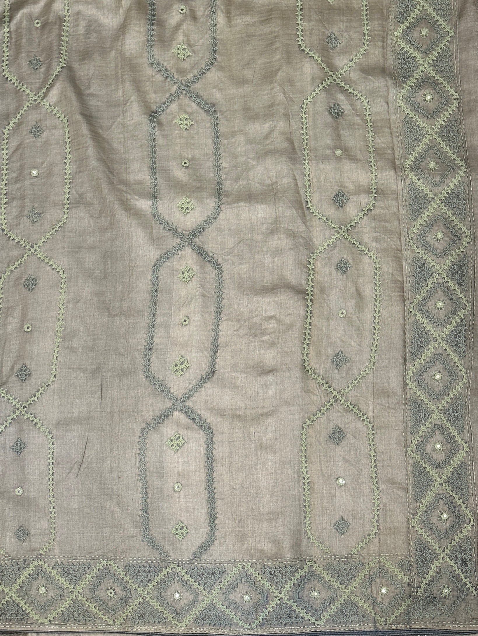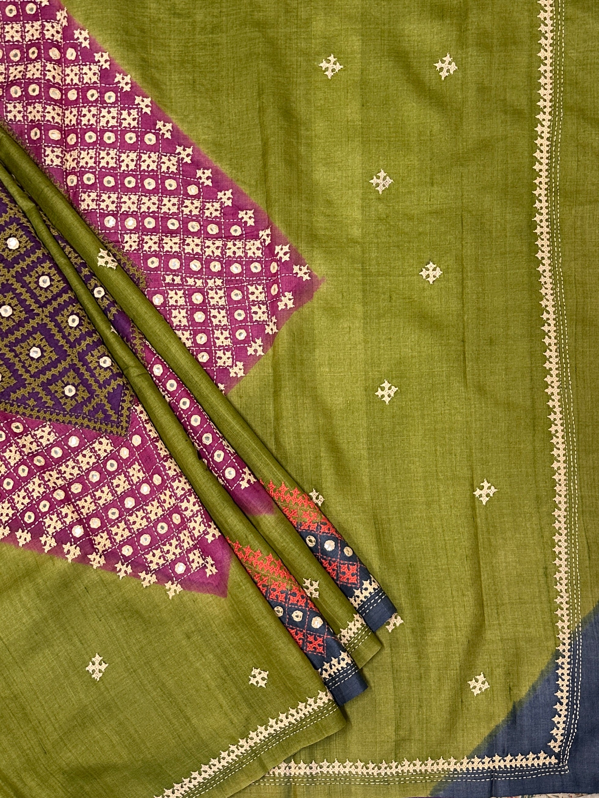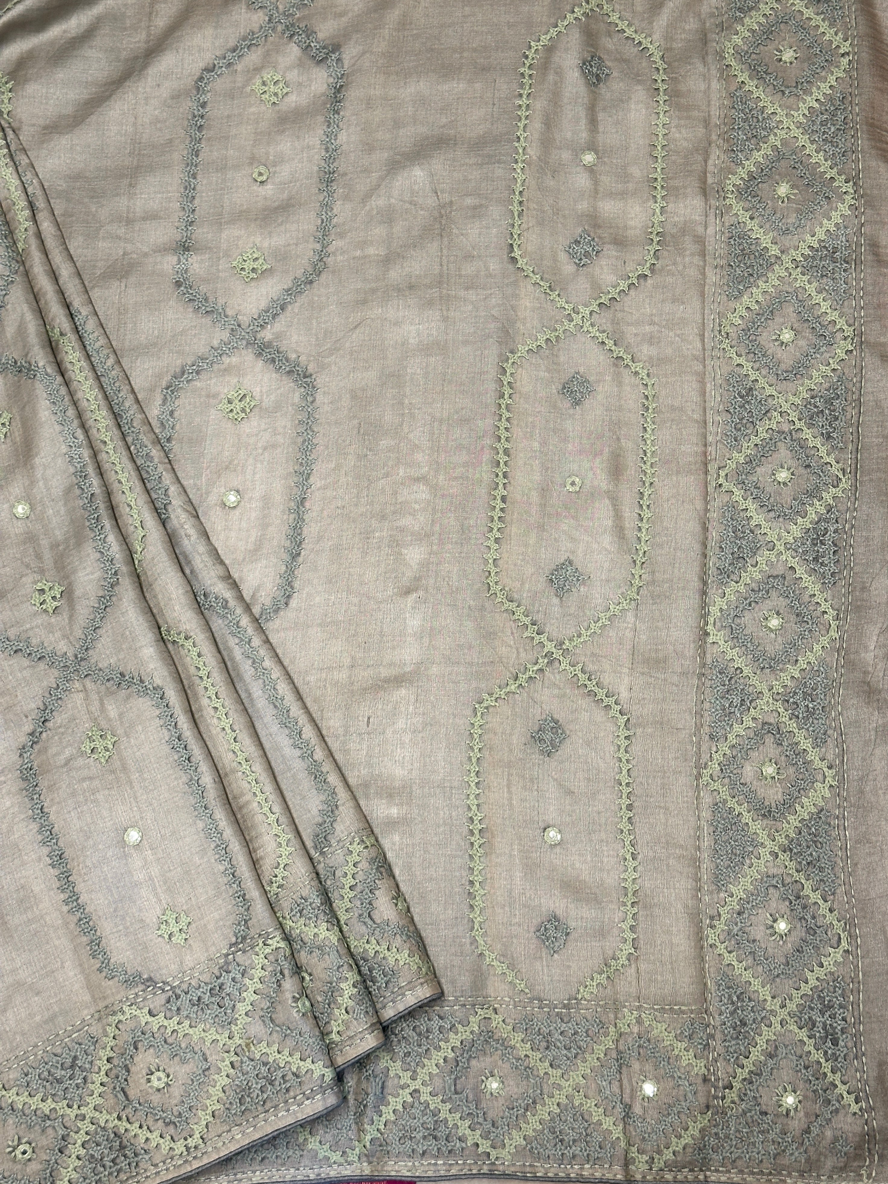 Tuhina Sage Green Kutch Embroidery Organza Saree