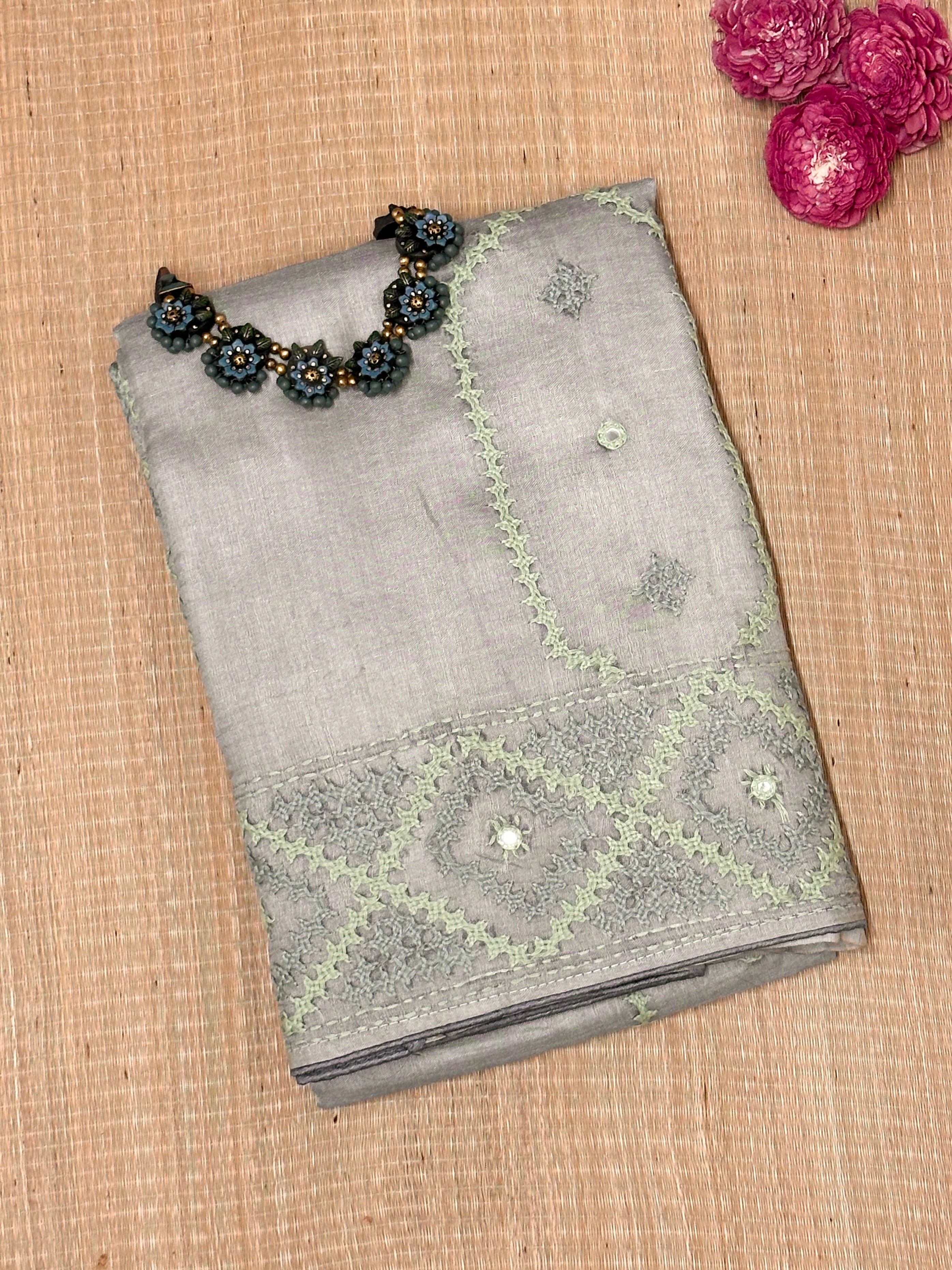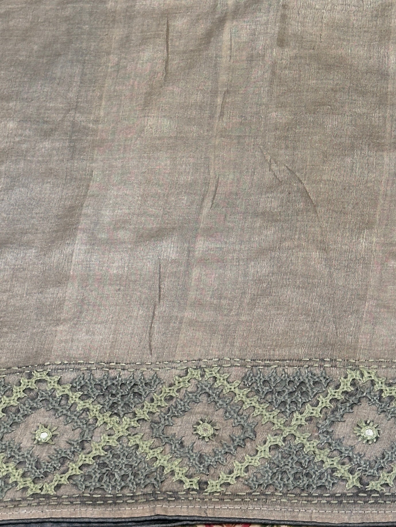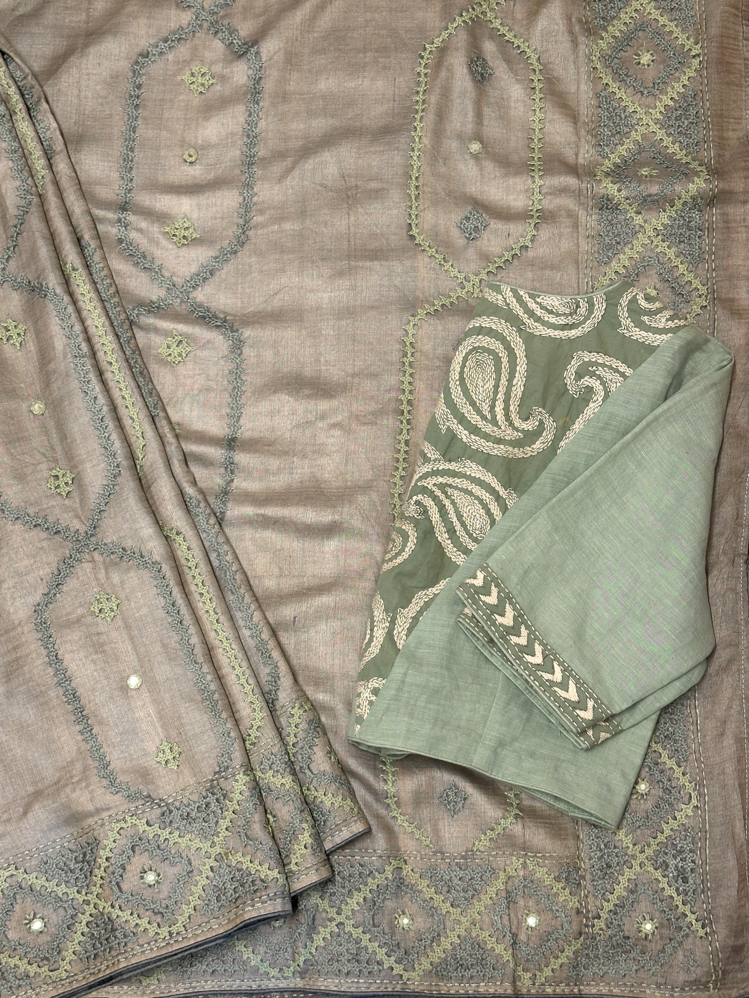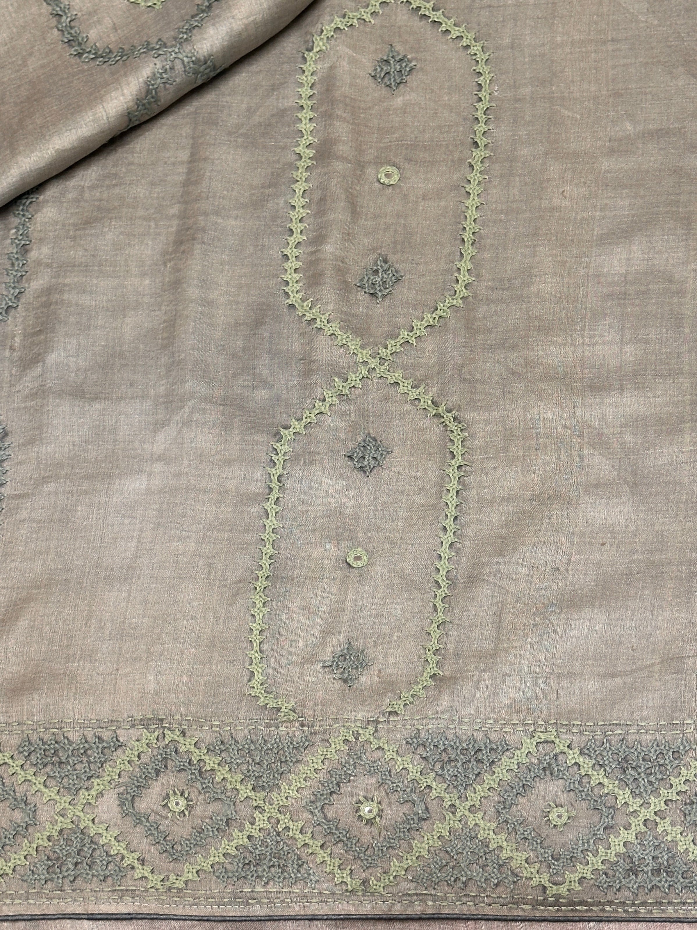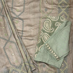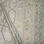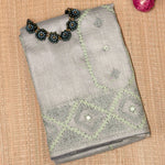 Tushara Sage Grey Kutch Work Tussar Saree