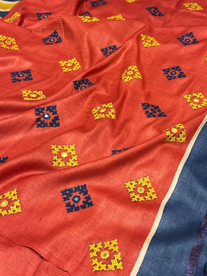 Kutch work detailing on the pallu.