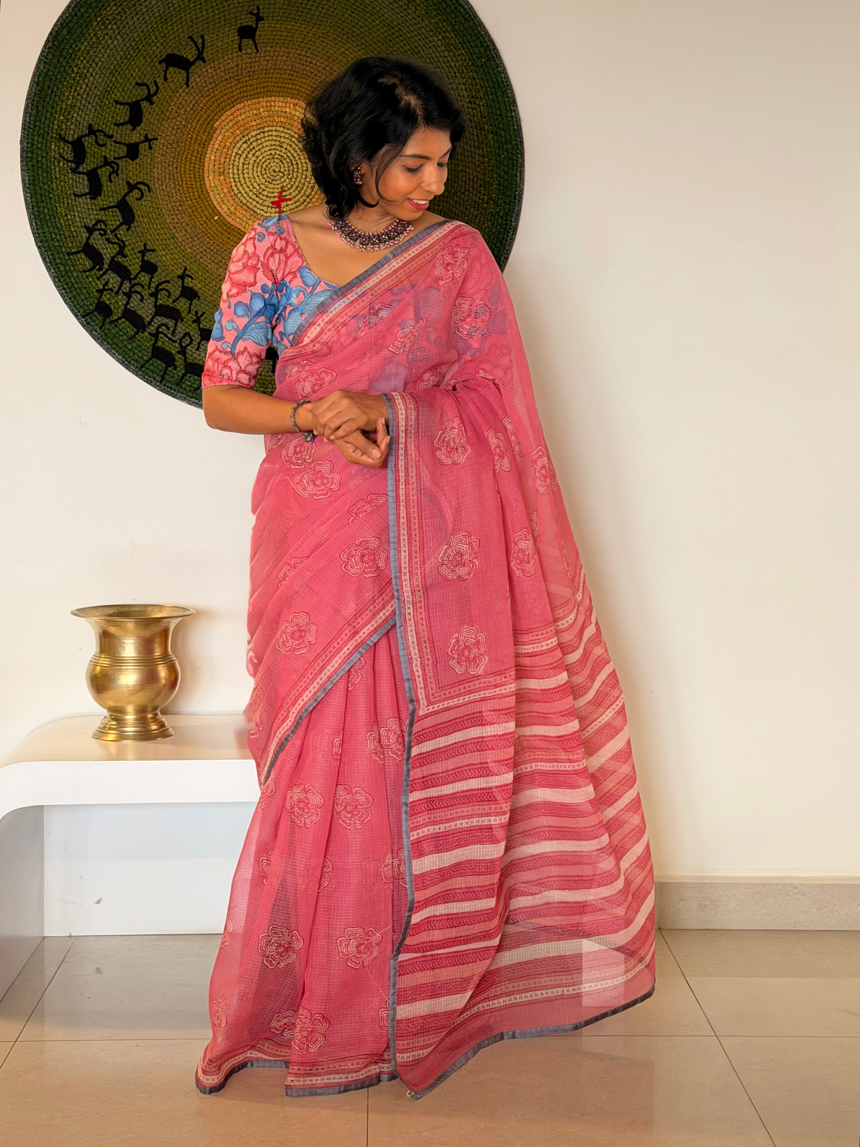 Mishrita Terracotta Floral Kota Saree