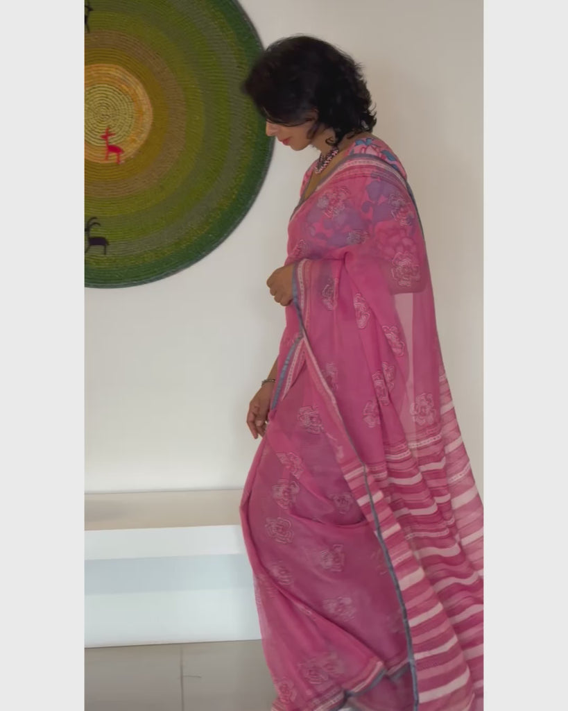 Mishrita Pink Printed Kota Saree