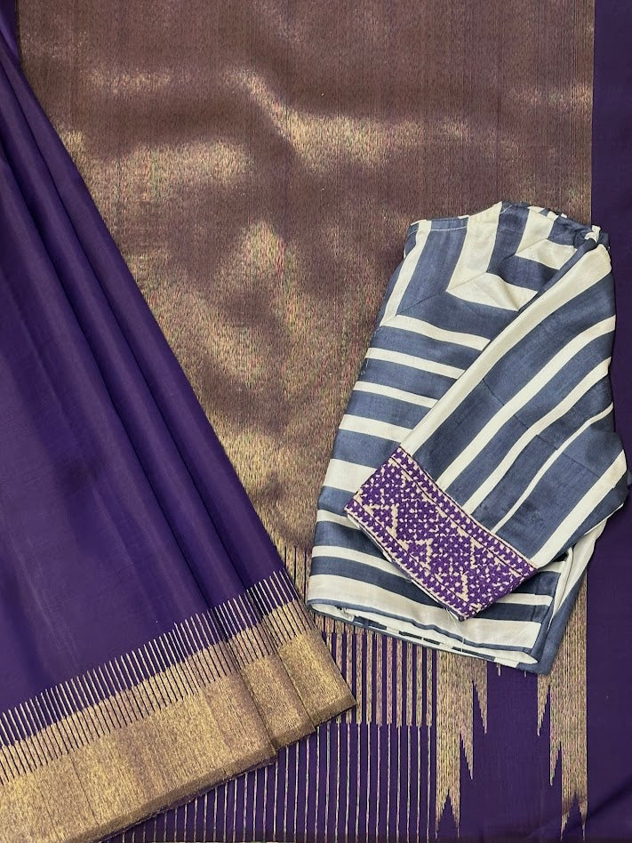 Crafted from pure Kanchipuram silk renowned for its rich texture and durability.