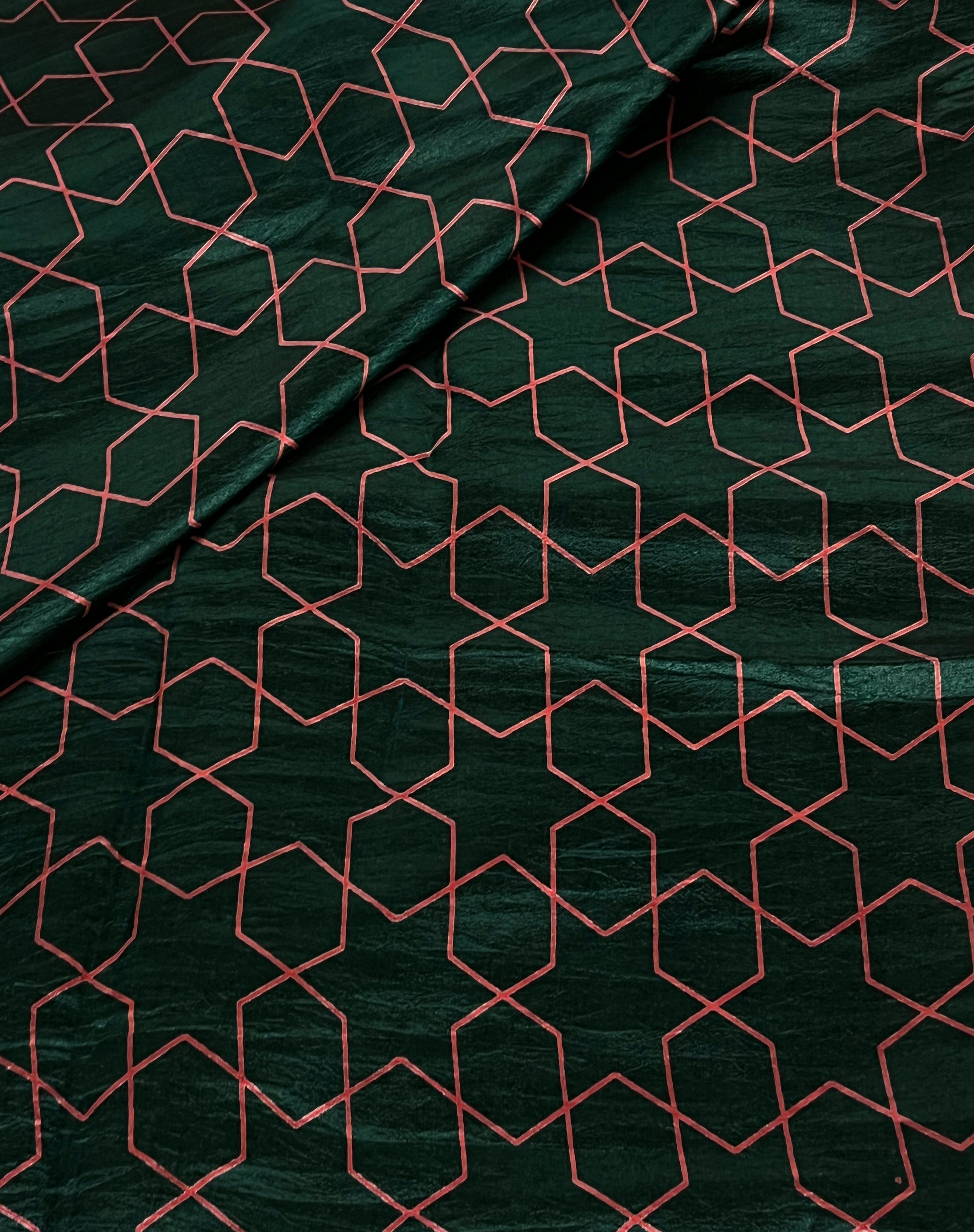 Premium silk fabric featuring hand block printed star motifs all over the body.