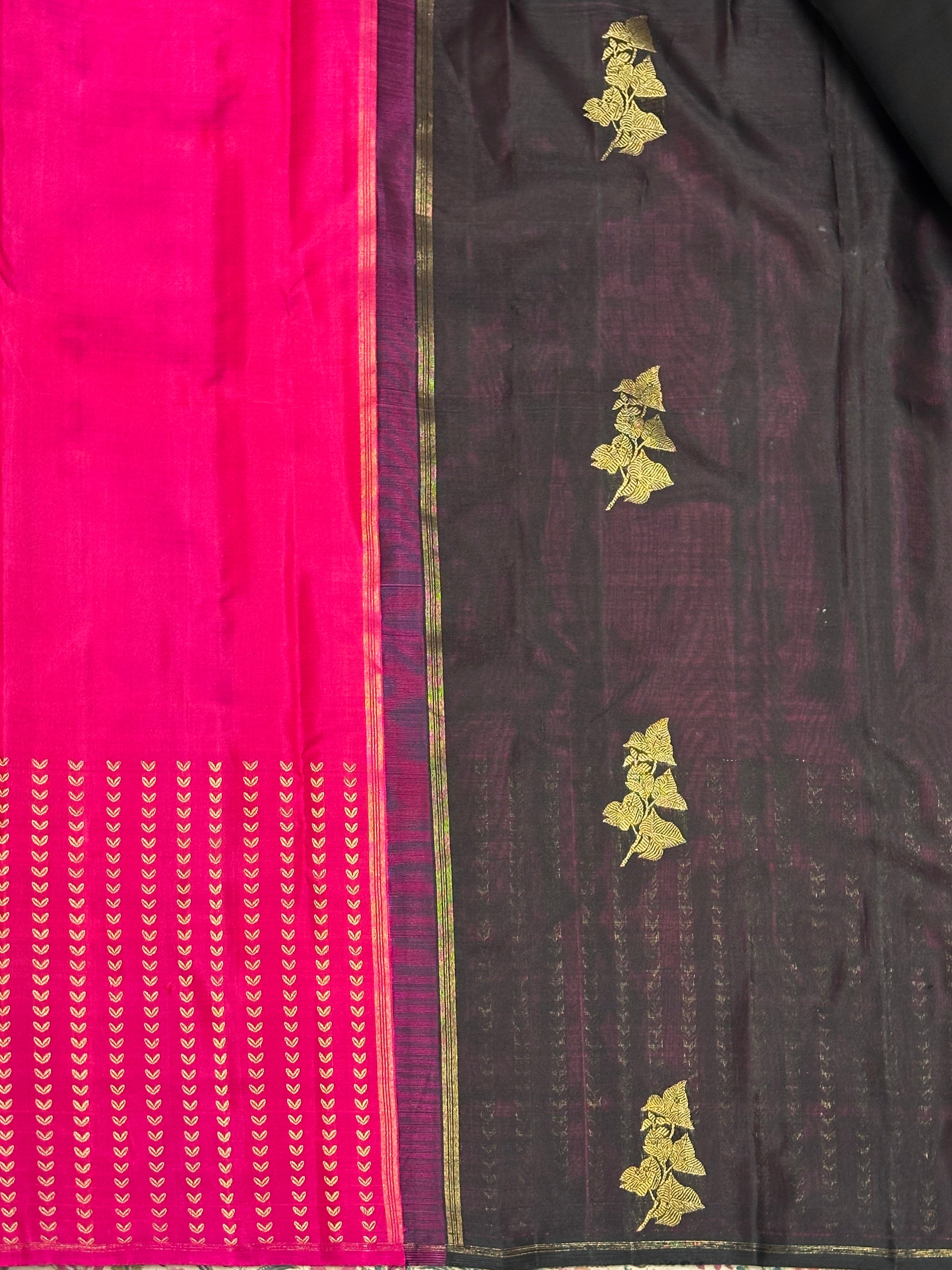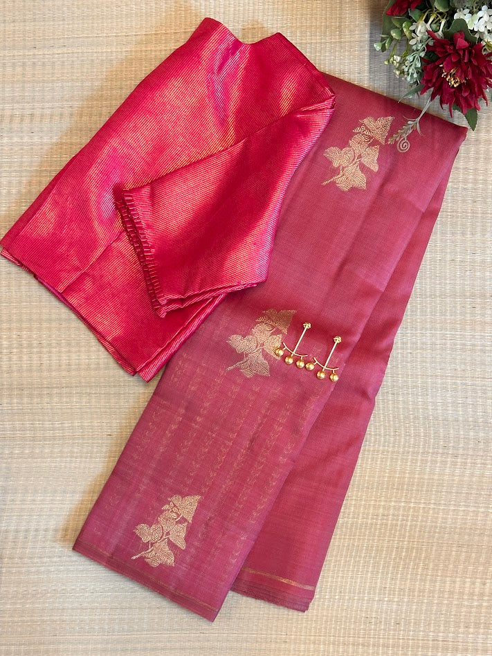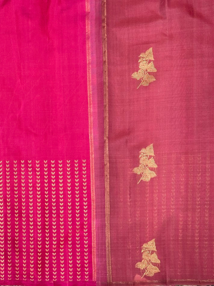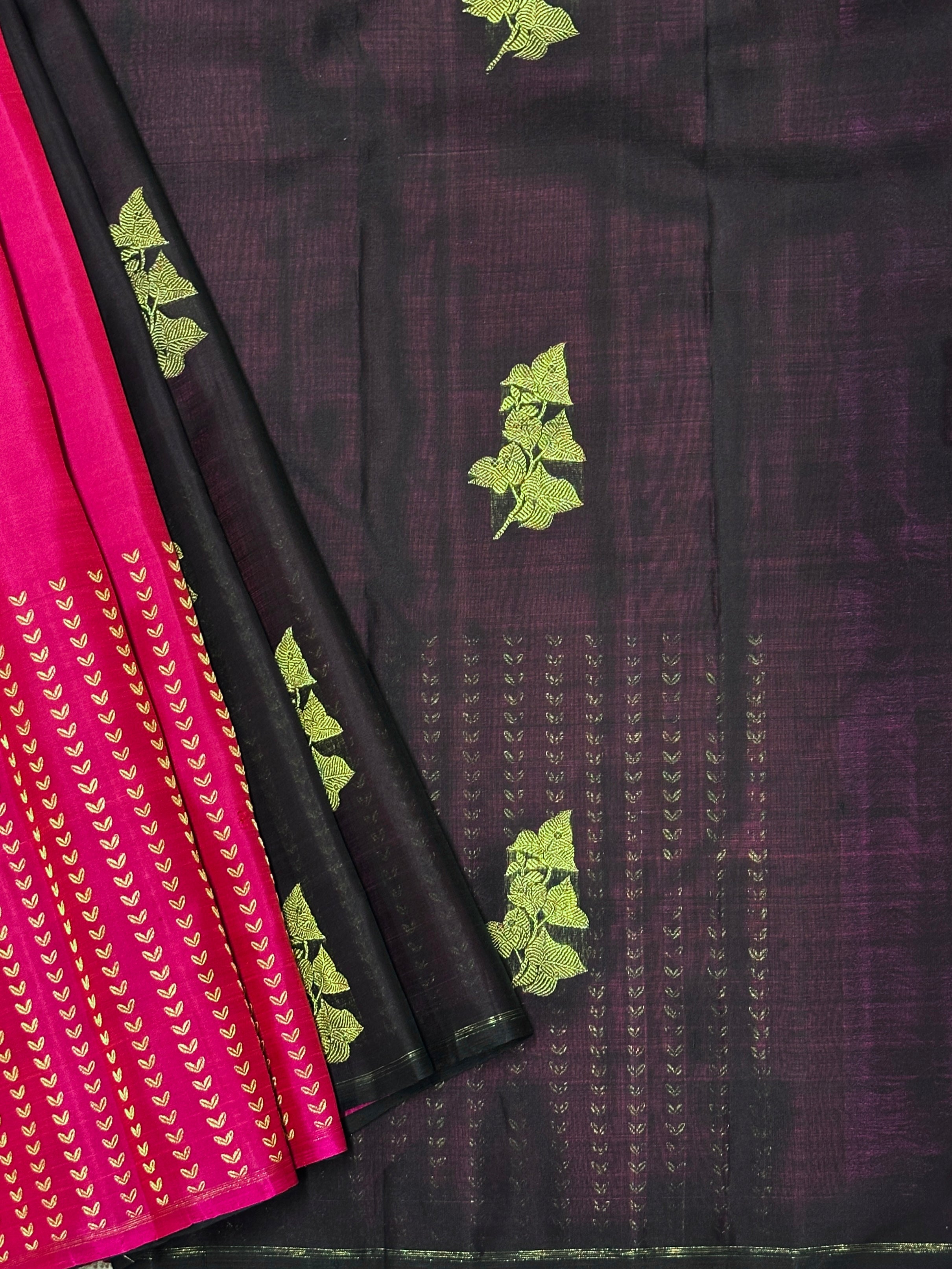 - The Uniqueness of this saree is that the pleats is silk whereas the above portion is organza and they are woven in one loom.