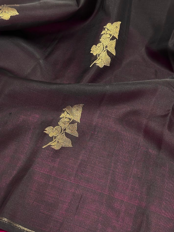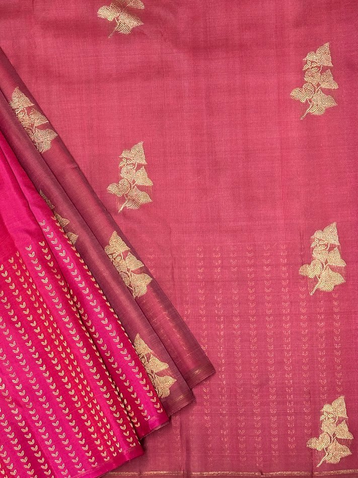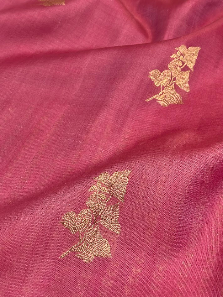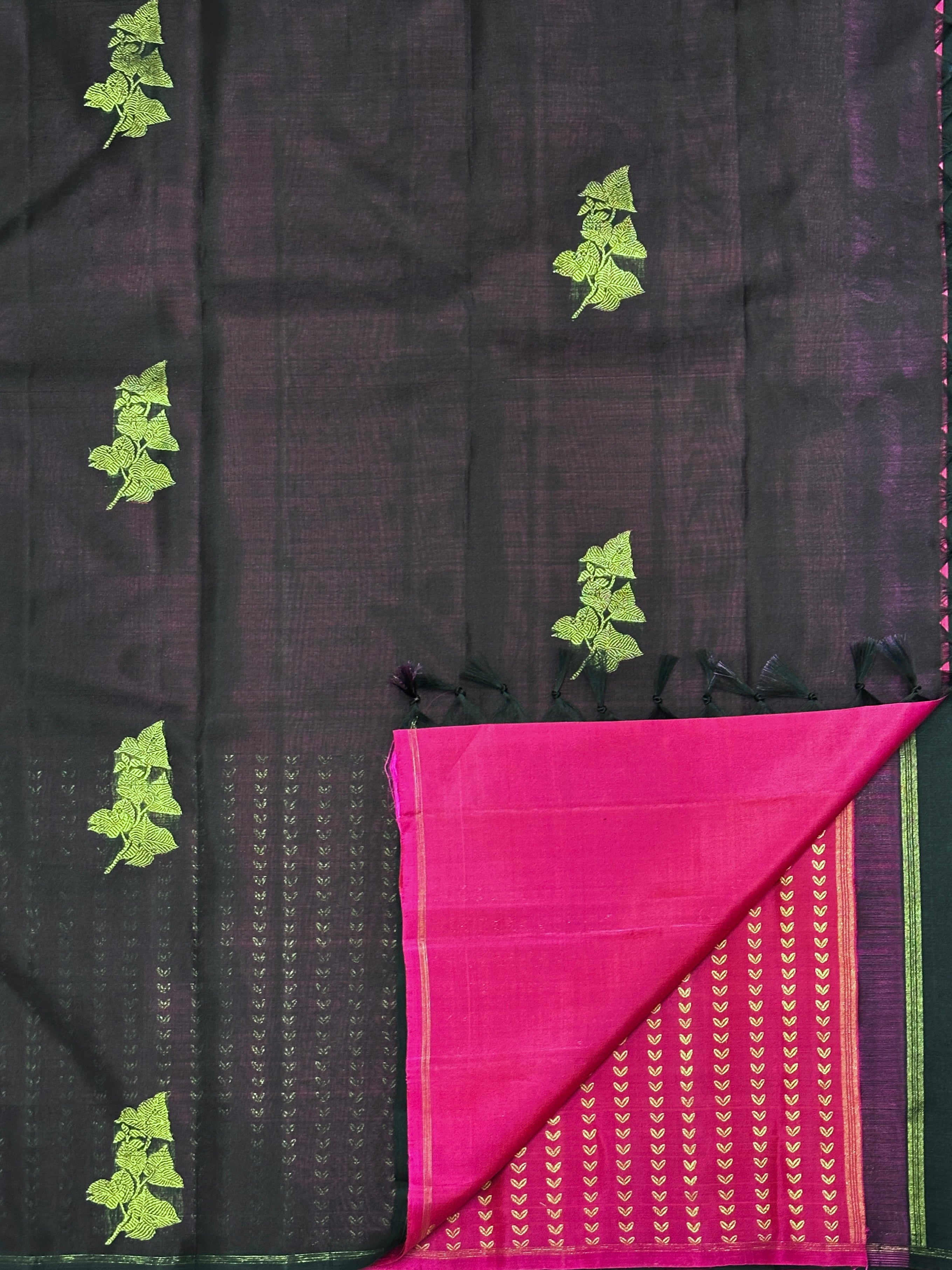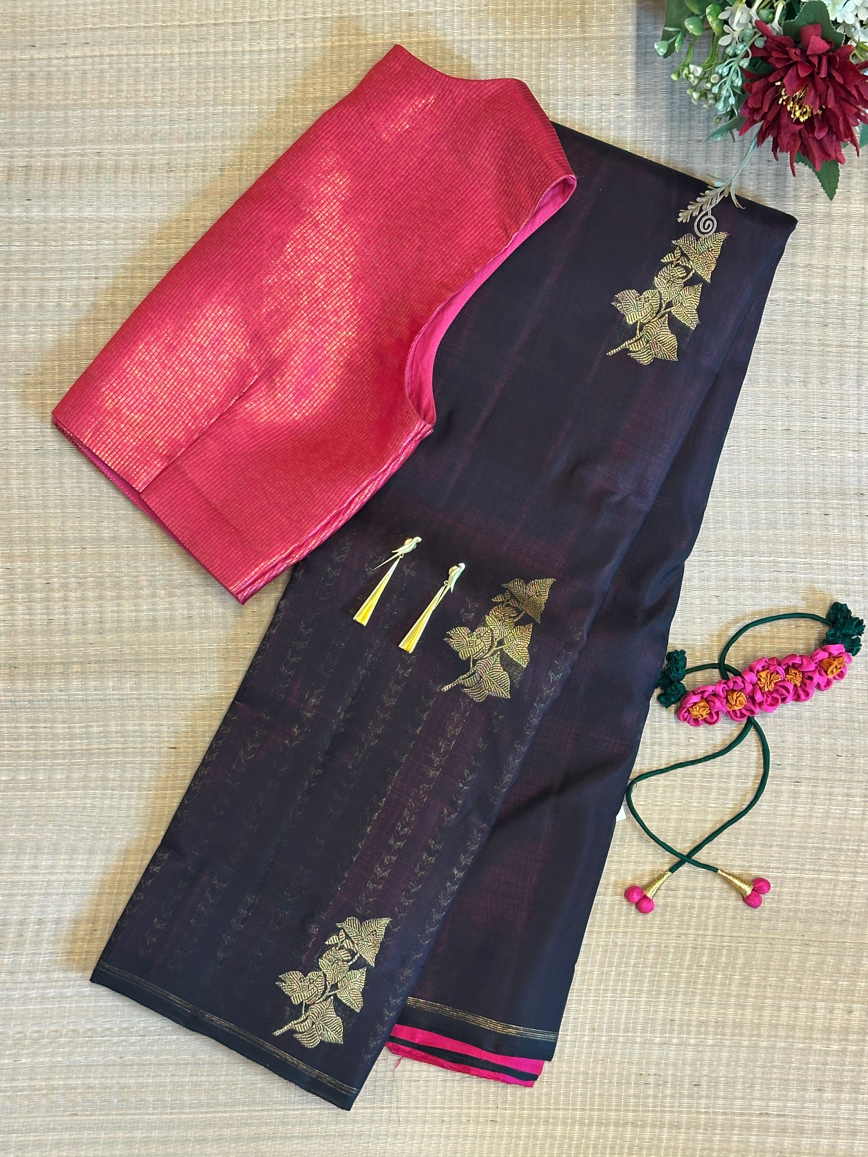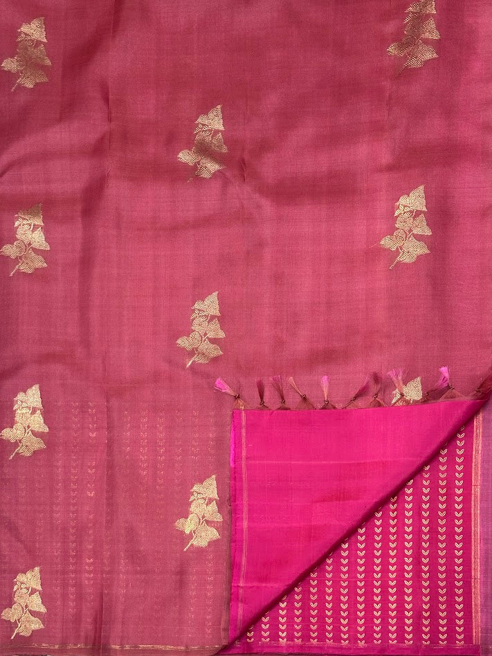 - Zari woven Bougainville inspired motifs in organza.