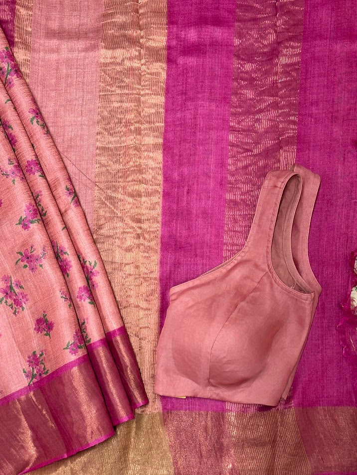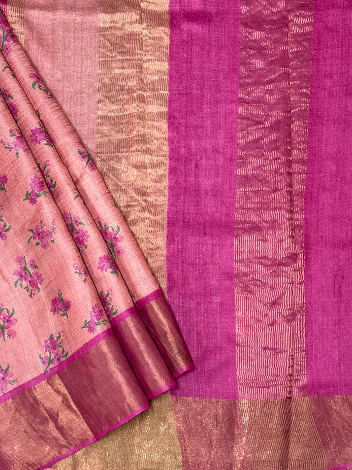 • Crafted from pure tussar silk with exquisite hand block floral prints.