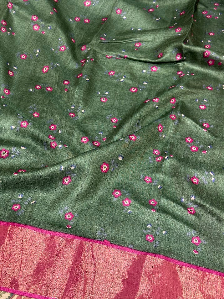 • Crafted from pure tussar silk with exquisite hand block floral prints.