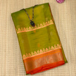 • Pure Kanchipuram silk for a luxurious, smooth finish.