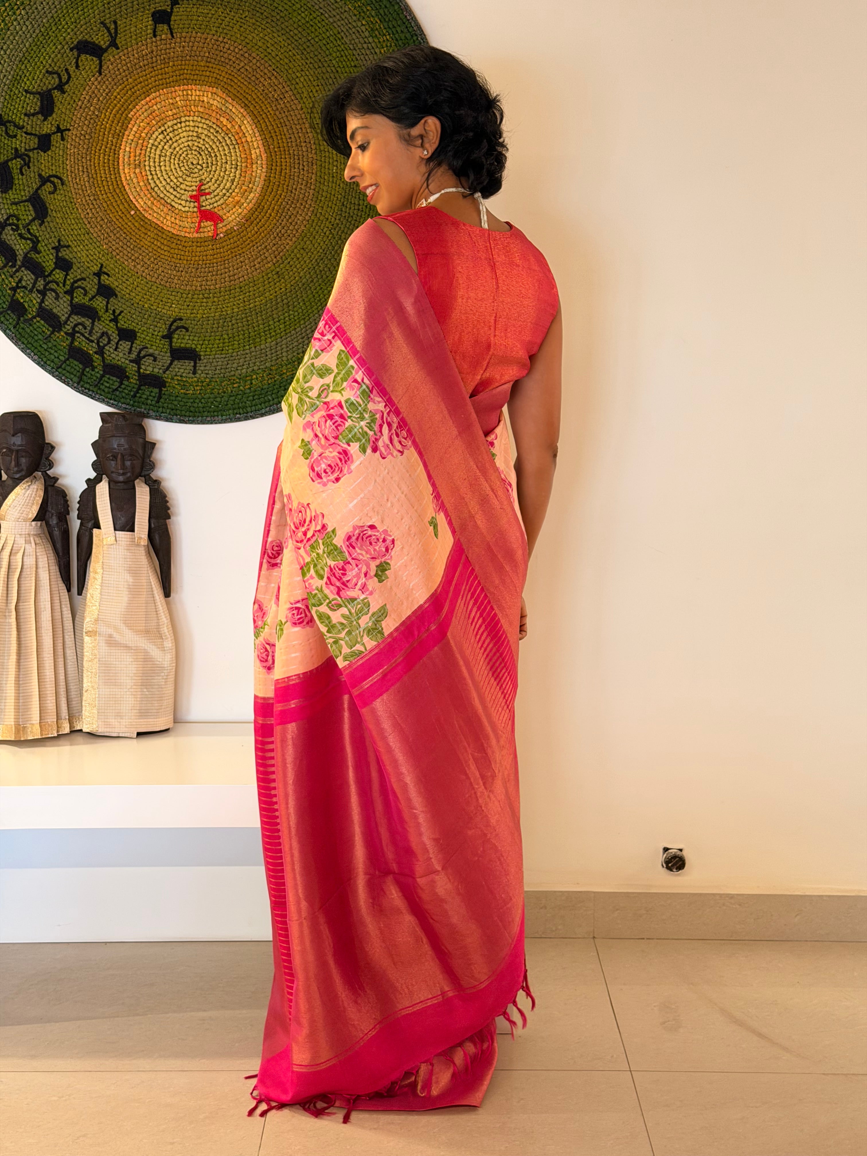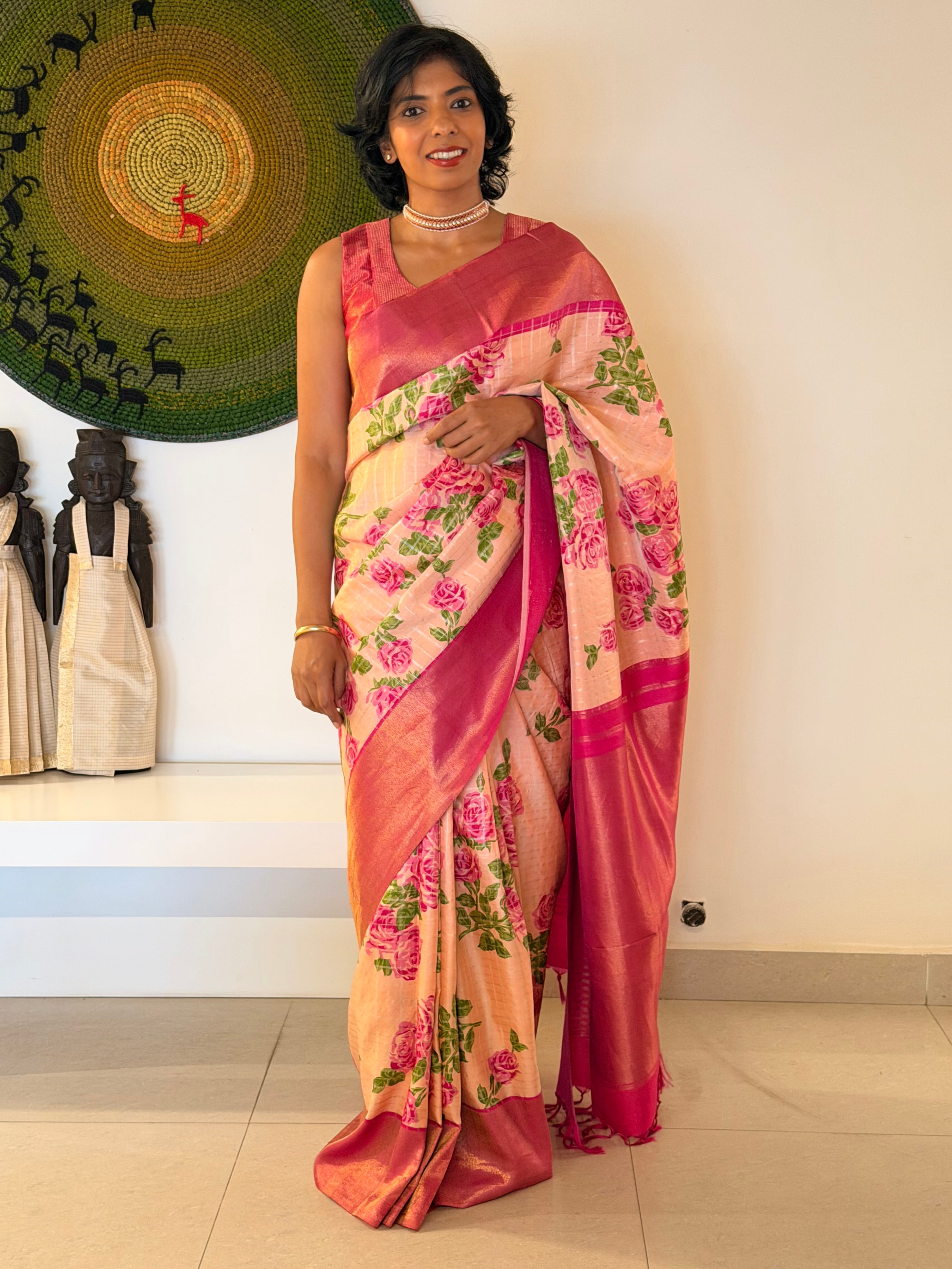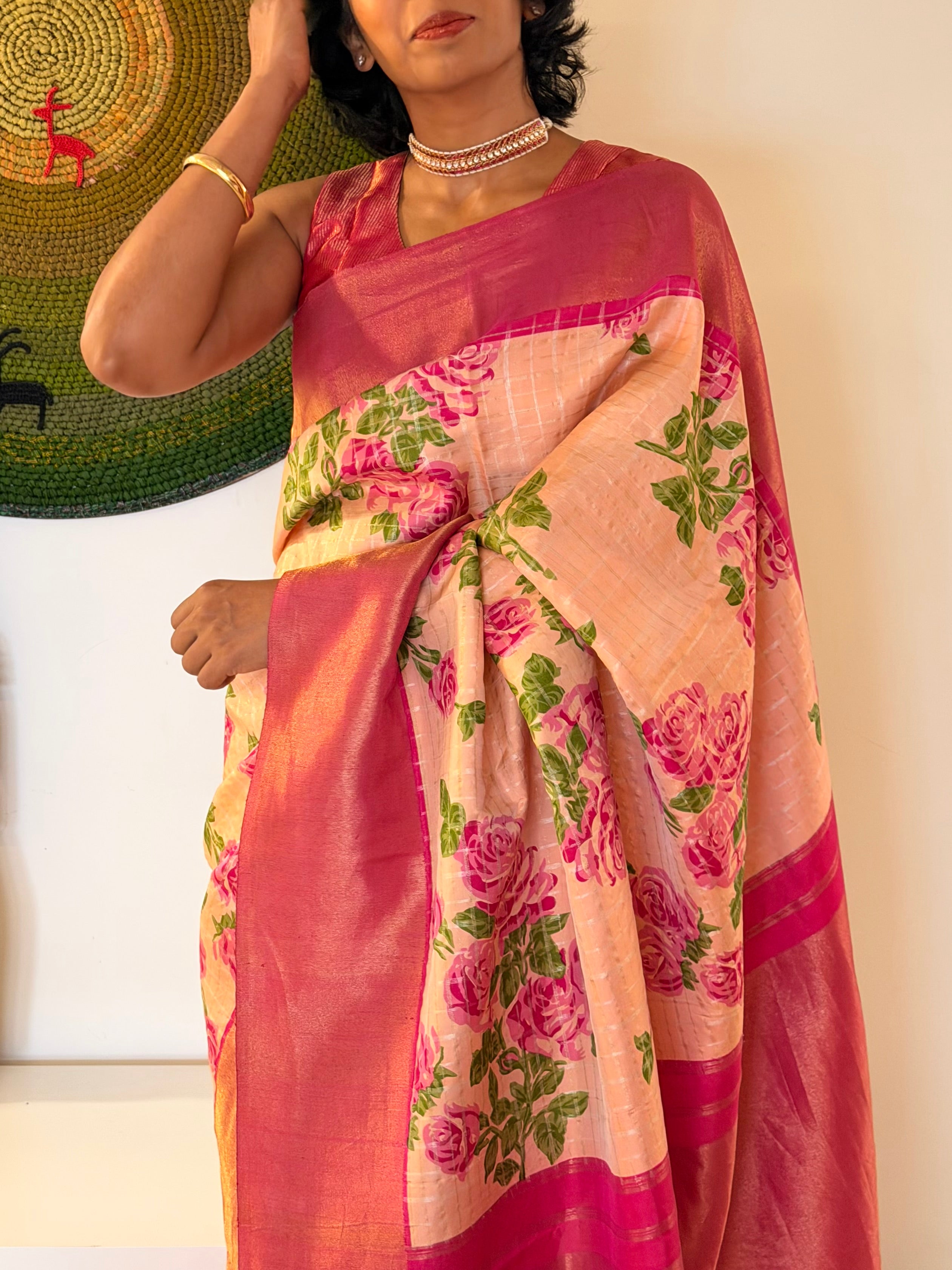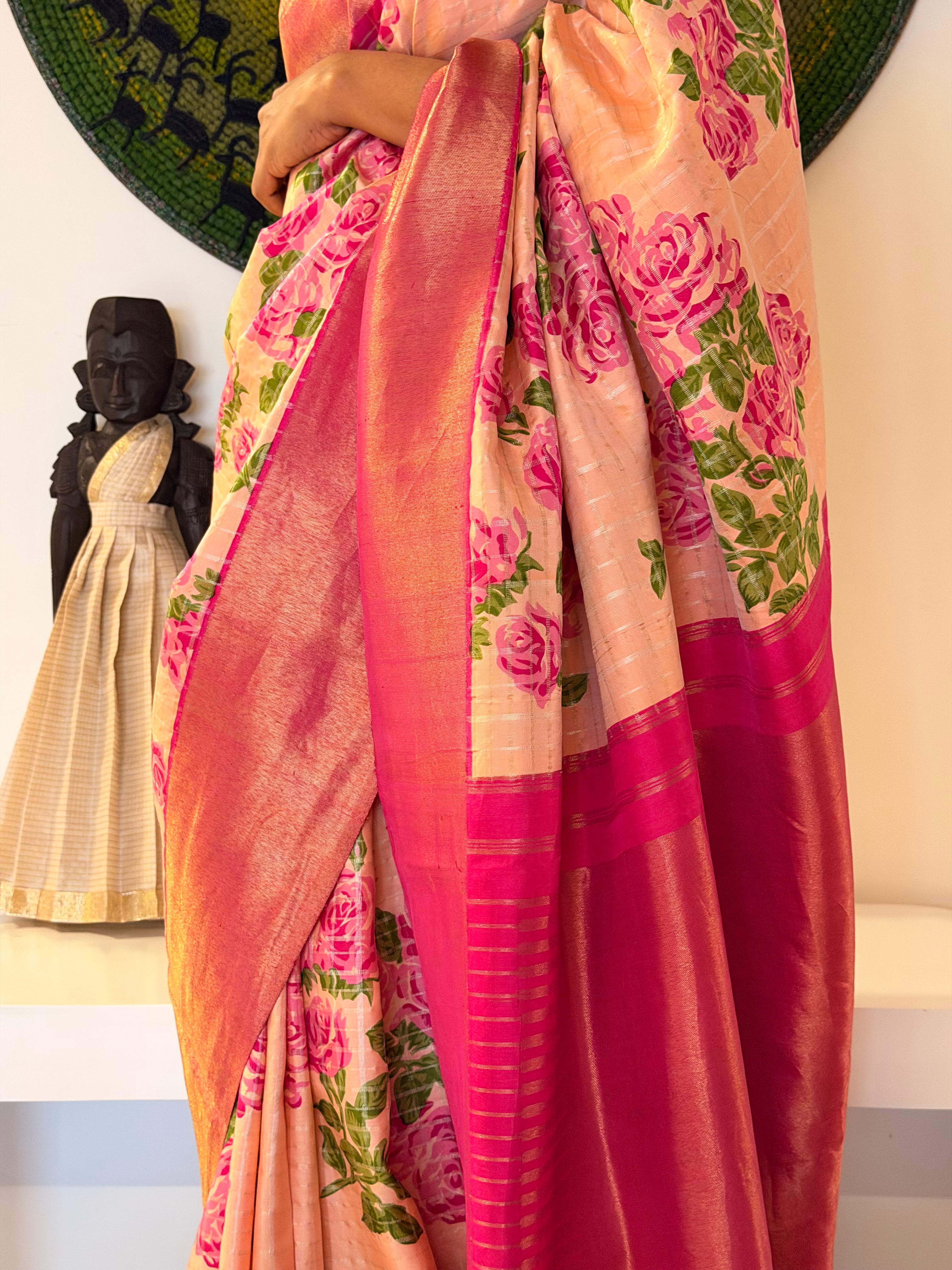 Traditional zari weaving adds a luxurious touch.
