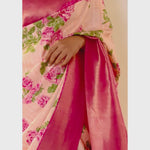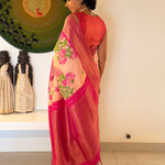 Zari border highlighted with a dark pink shade for a stunning look.