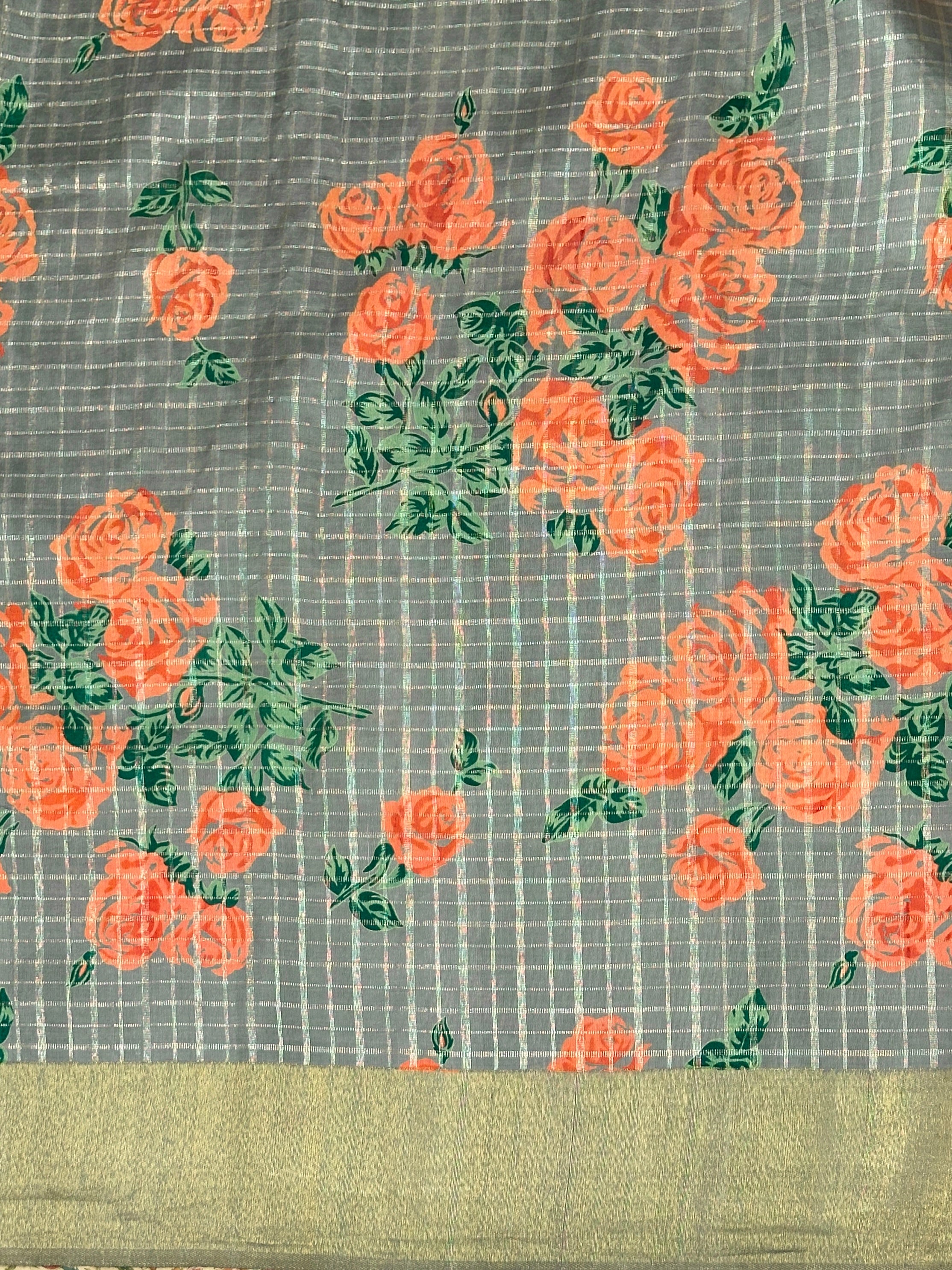 Exquisite woven silver checks across the body.