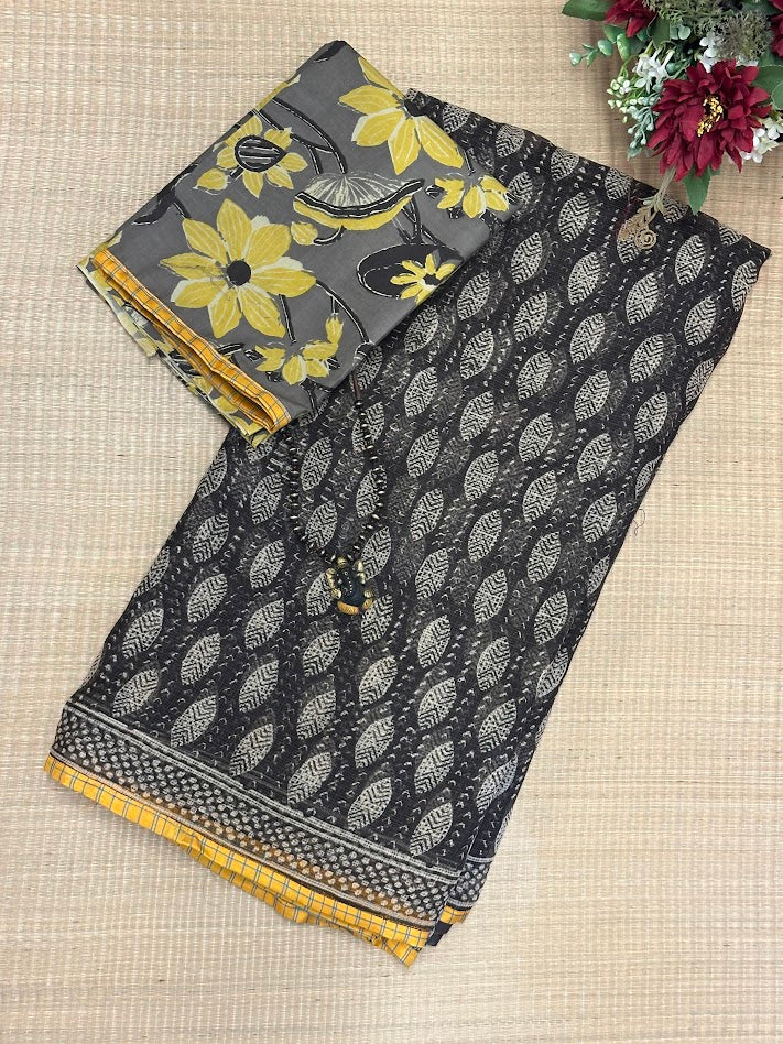 Mishrita Black Foliate Kota Saree