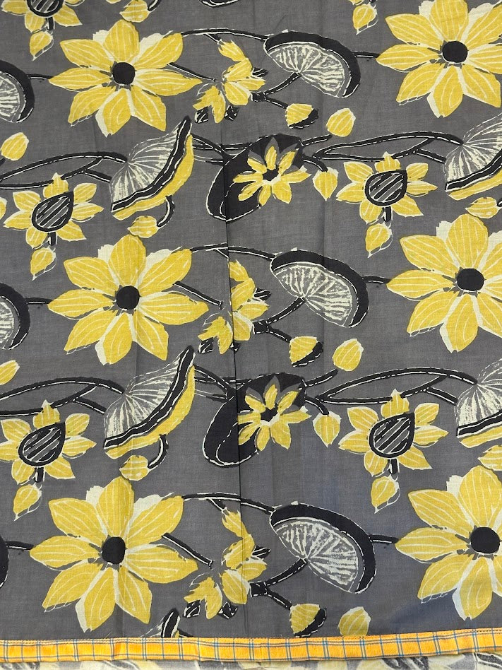 Comes with a matching printed cotton blouse, detailed with the same pure Kanchipuram silk border for a cohesive look.
