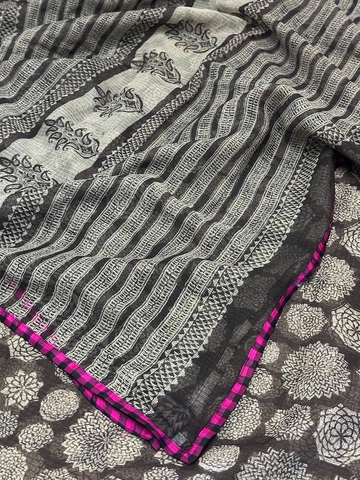 Mishrita Black Geometric Kota Saree