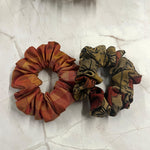 • Handloom fabrics upcycled into a pair of colourful hair ties/scrunchies.