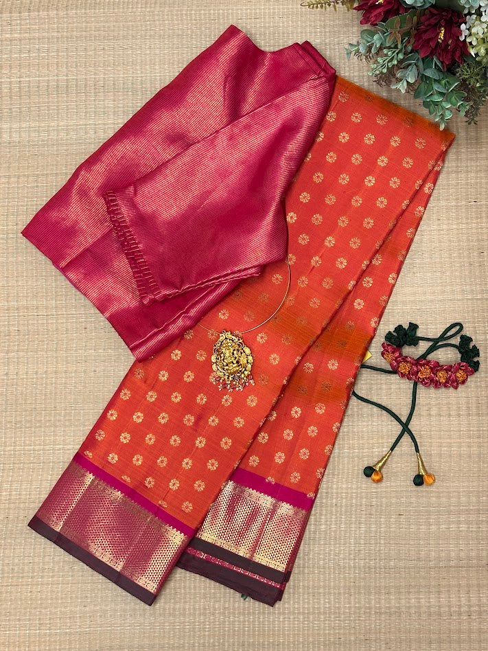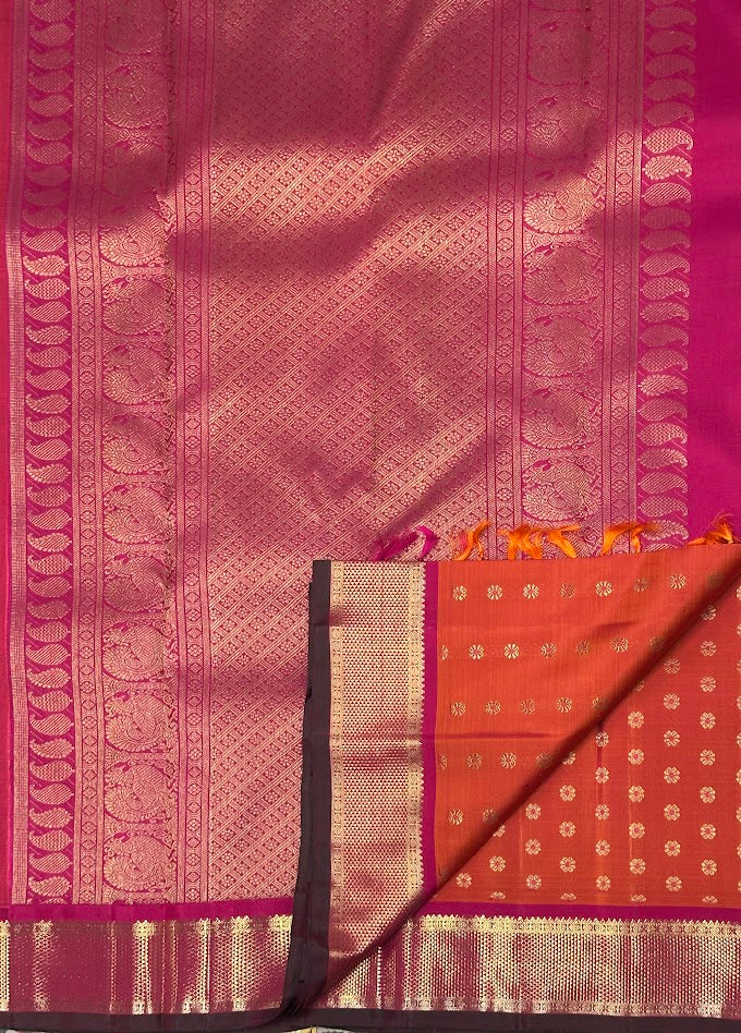Sumangala Meenakari Kanchi Silk Saree - Classic Orange