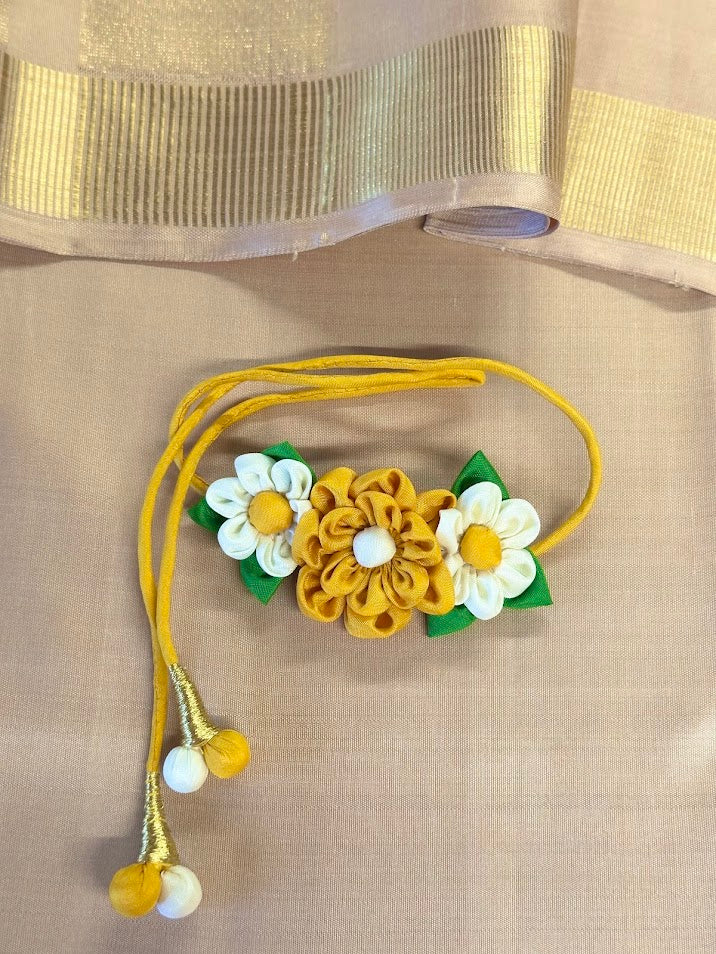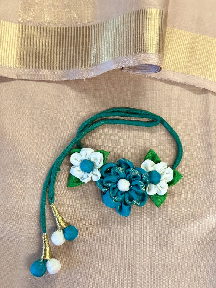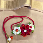 A beautifully upcycled hair accessory,made from tiny silk fabrics. These are carefully crafted by hand by skilled artisans with attention to detail,They can be worn as hair accessories, necklace or used as curtain ties also.