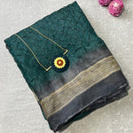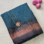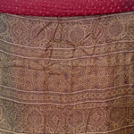 These sarees are hand woven Tussar Kota with hand knotted bandhani from Rajasthan. The sarees come with attached blouse pieces and can be worn casually