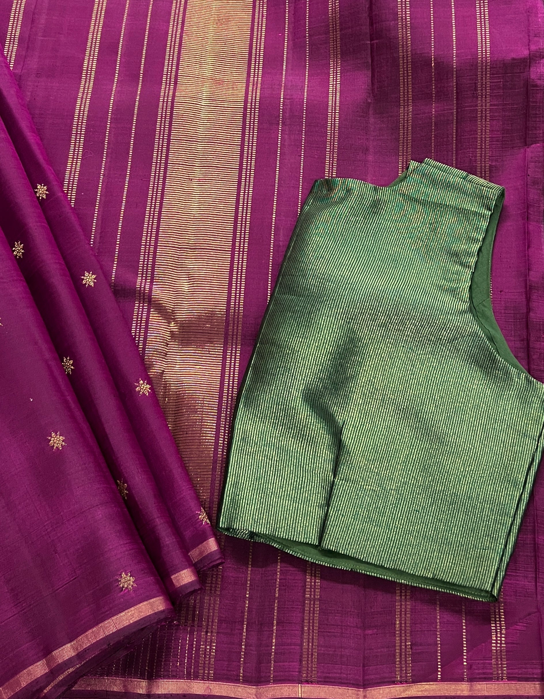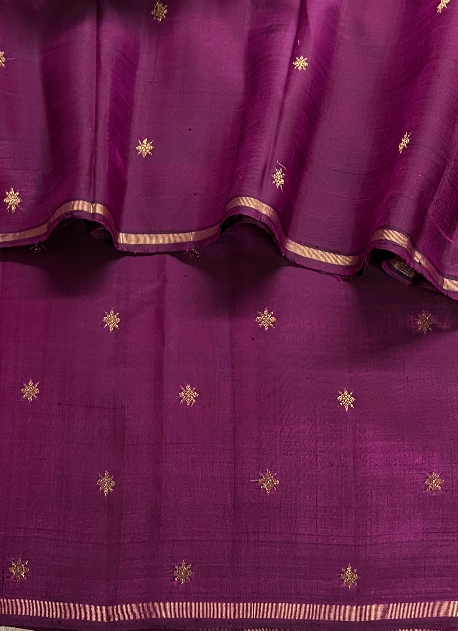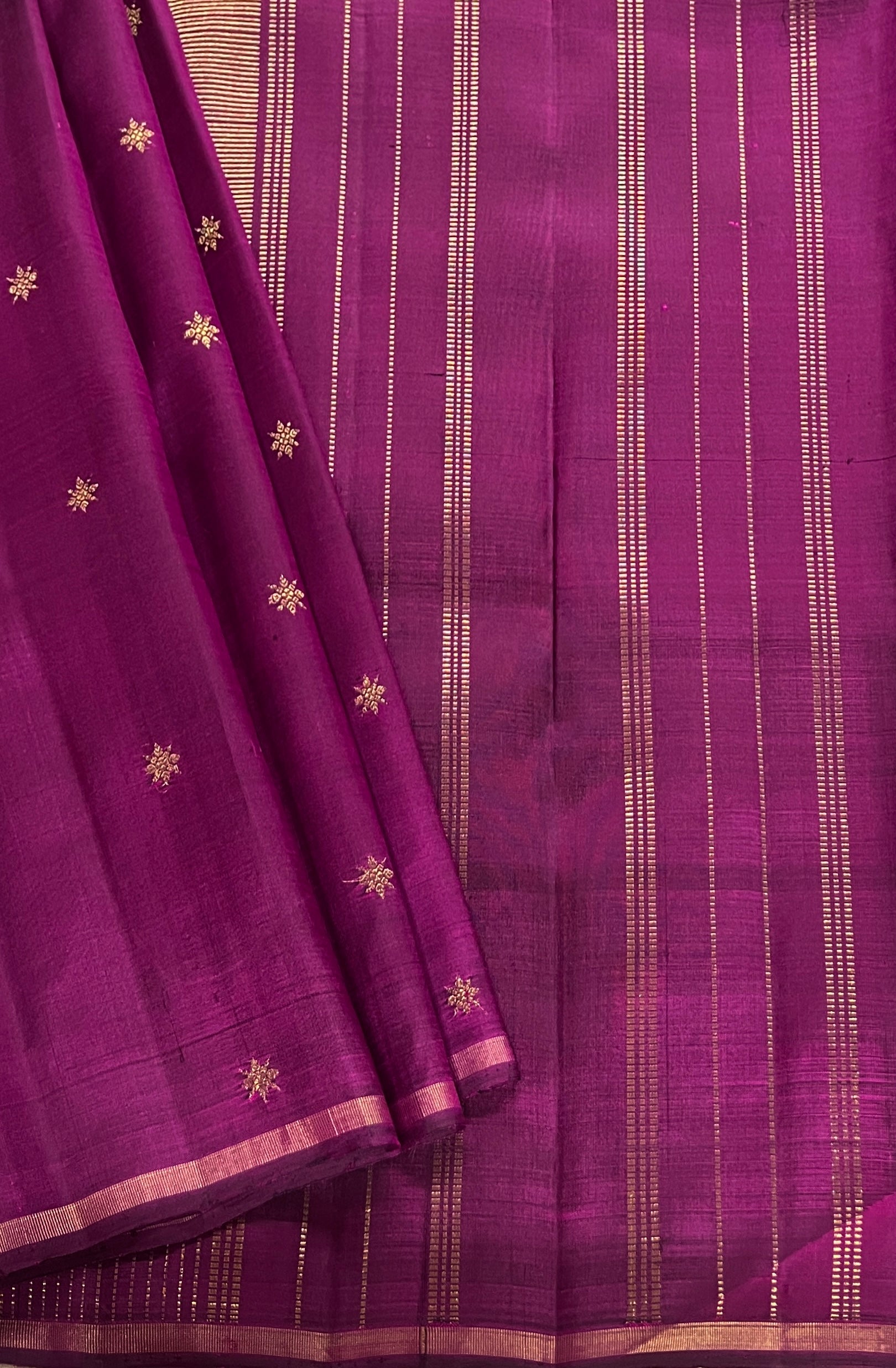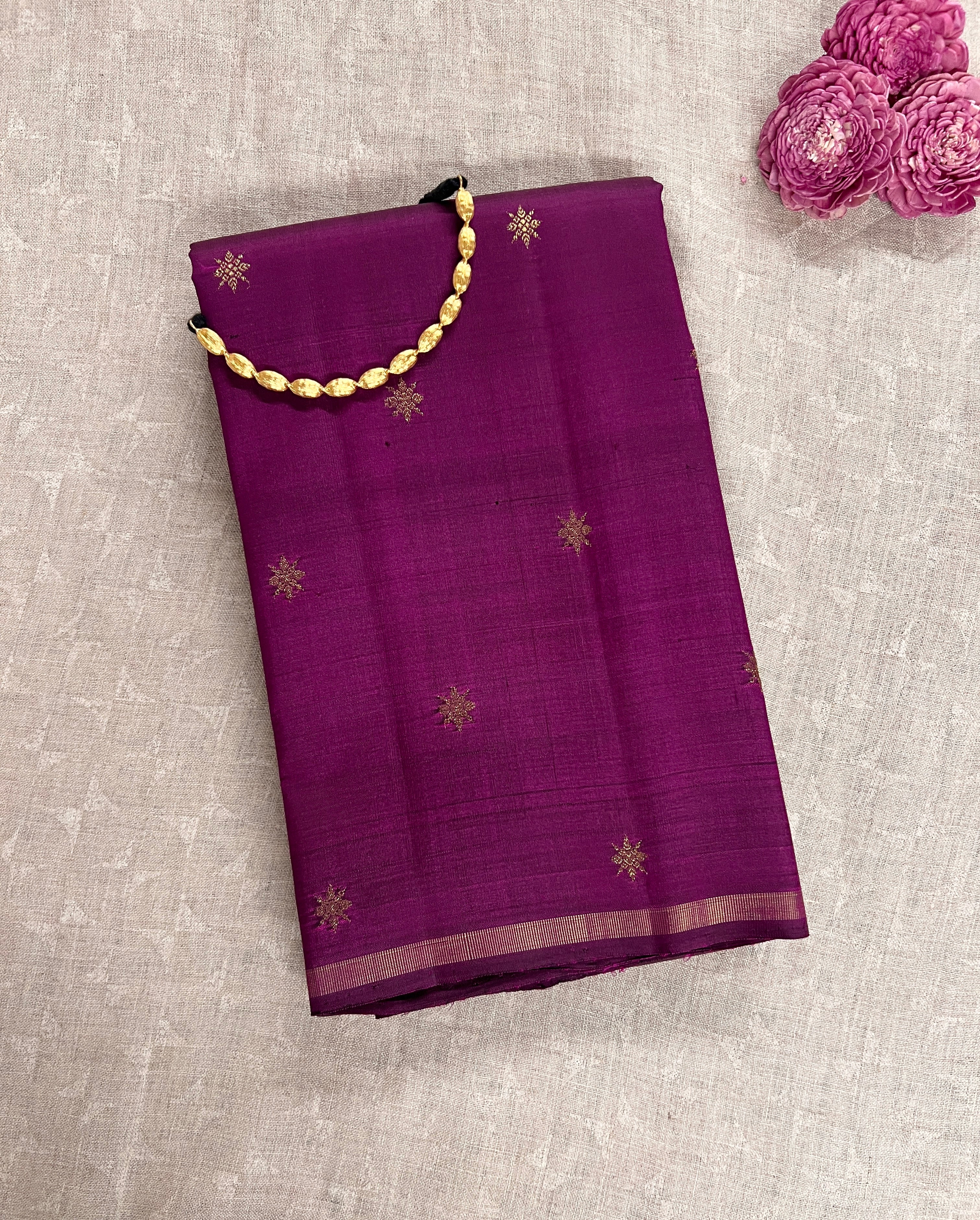 • Deep dark purple body adorned with delicate star-shaped buttas.