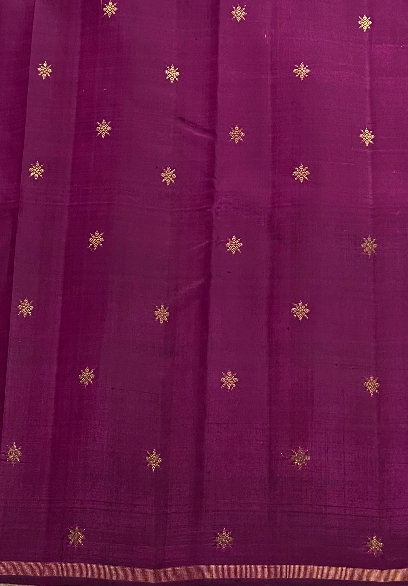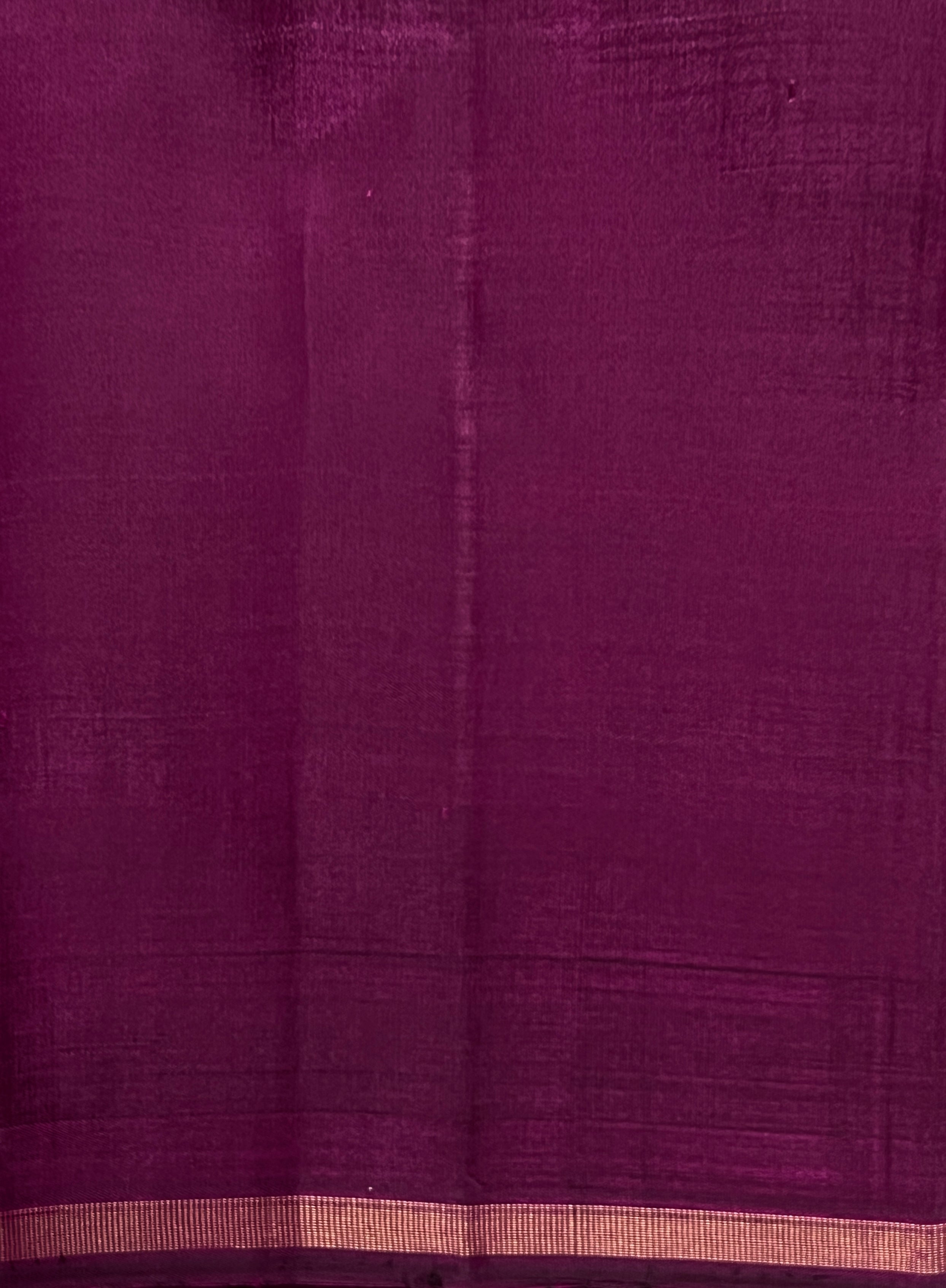 • Elegant border featuring simple gold zari lines as selvage.