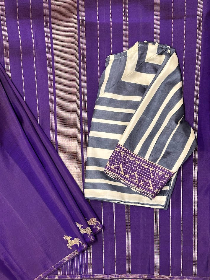 • Matching pallu and blouse in contrasting shades enhance the overall look.