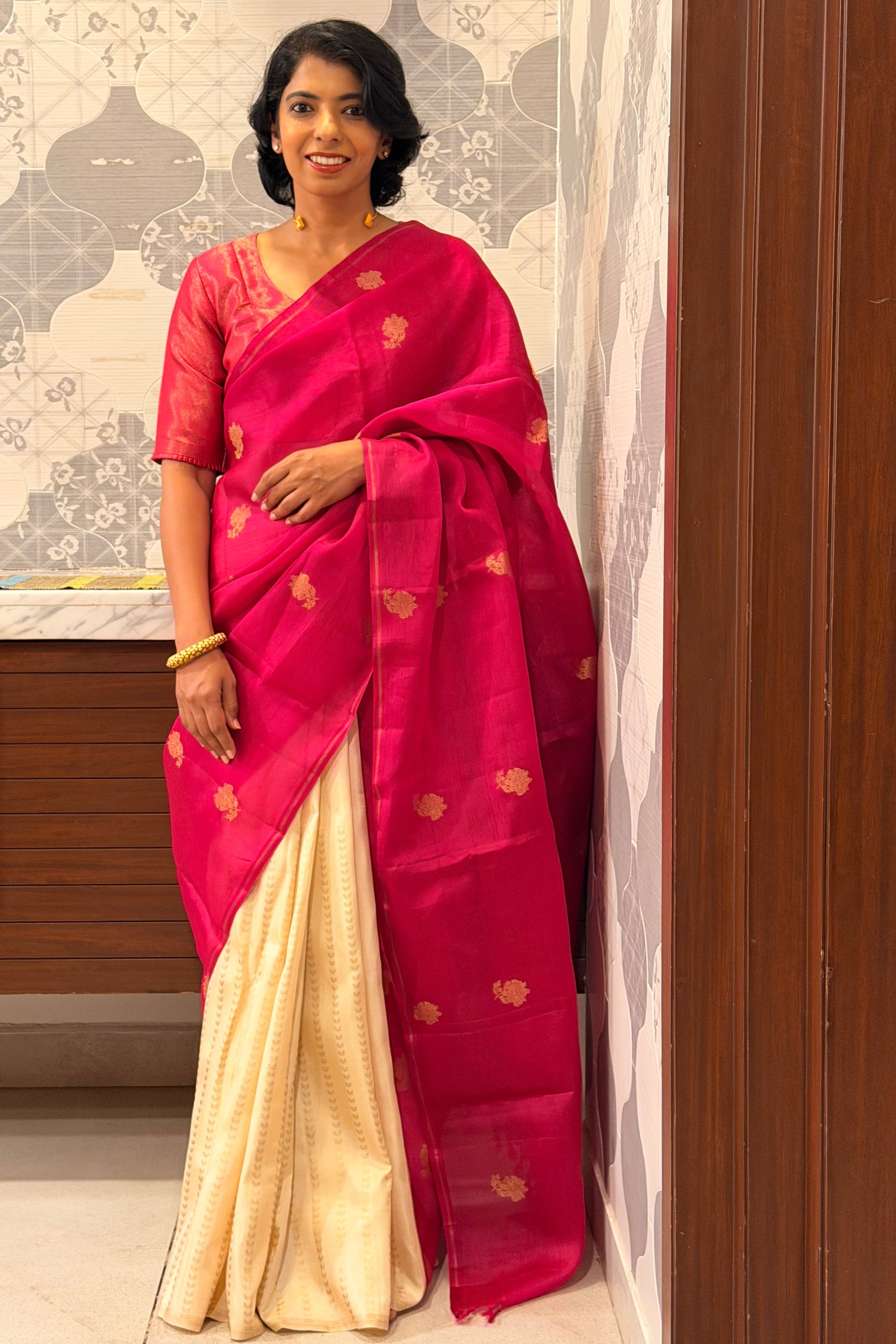 Tuhina Yellow Kutch Embroidery Organza Saree