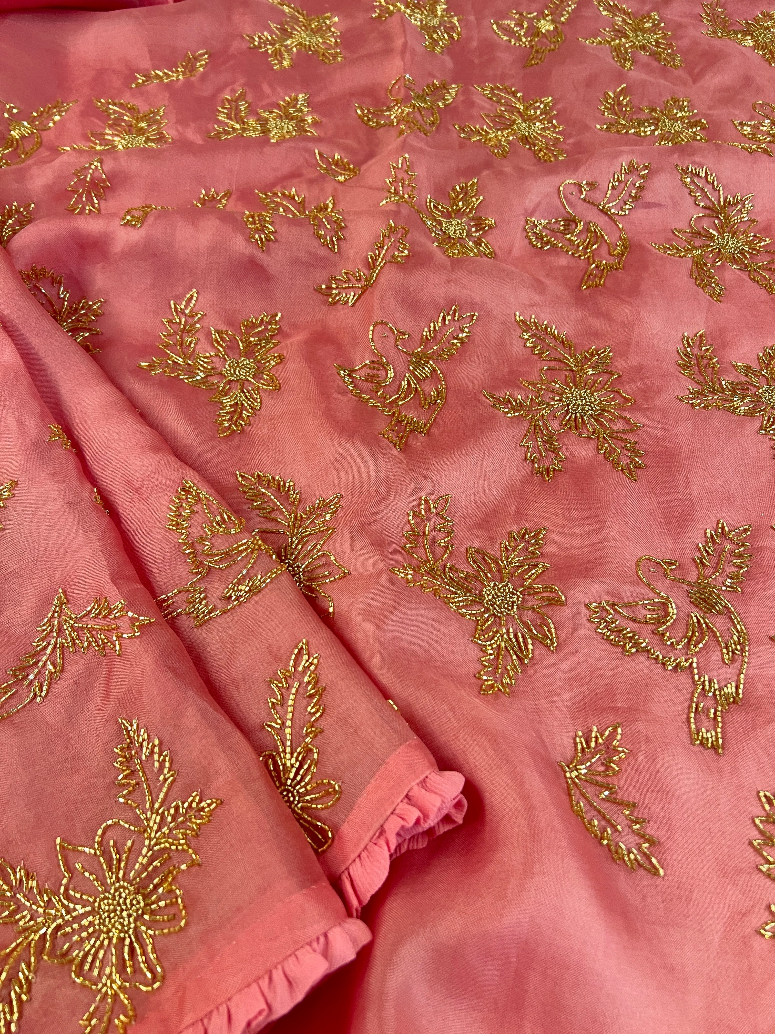 - Any customization like Saree edges, blouses etc will take additional time 7 to 15 working days depending on the level of customization. No refunds will be entertained for customized order even if the customer fails to pick up the order due to high duty charges.