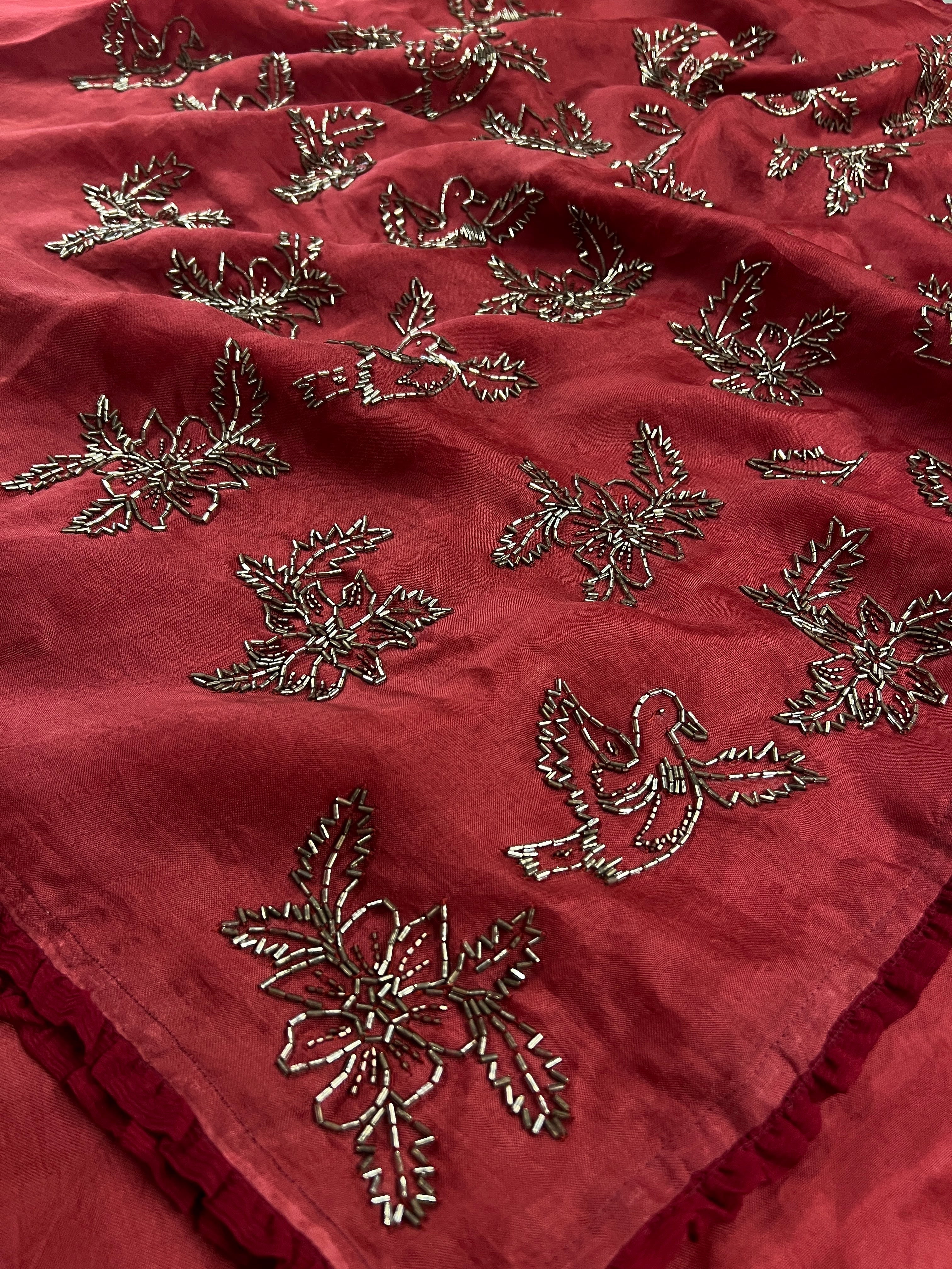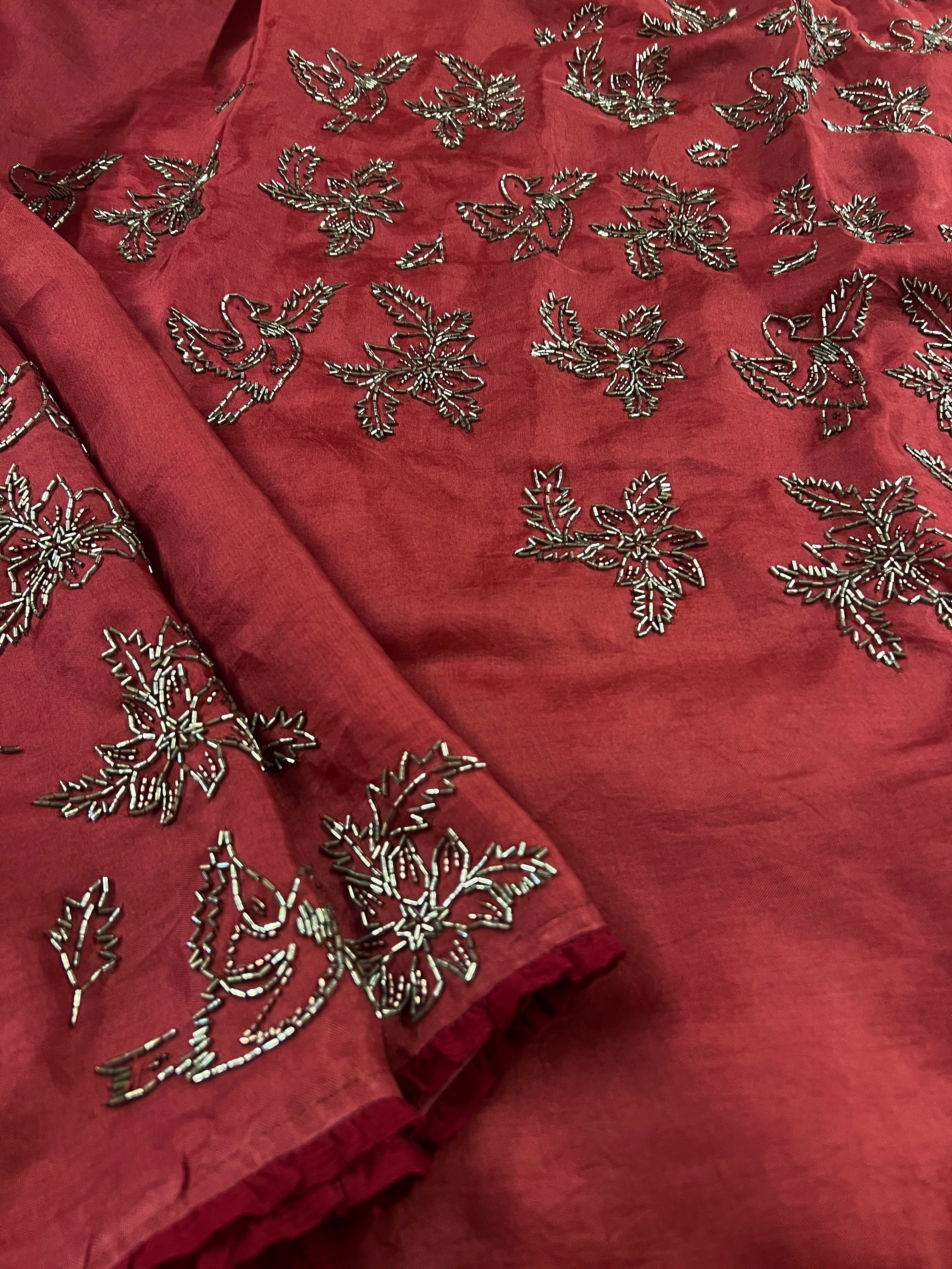 - For international orders, in the event of returns due to exchange, customer issue or if the recipient refuses the delivery due to high duty charges, the customer will be charged to & fro shipping fees as well as local duties that Aavaranaa may incur when the parcel is shipped back to us. Refunds or store credit, if any, will be calculated after the package is returned to us without damage. Any damage to the saree will need to be borne by the customer. Aavaranaa will bear the charges for shipment ONLY in cases where a wrong product or damaged product has been shipped.