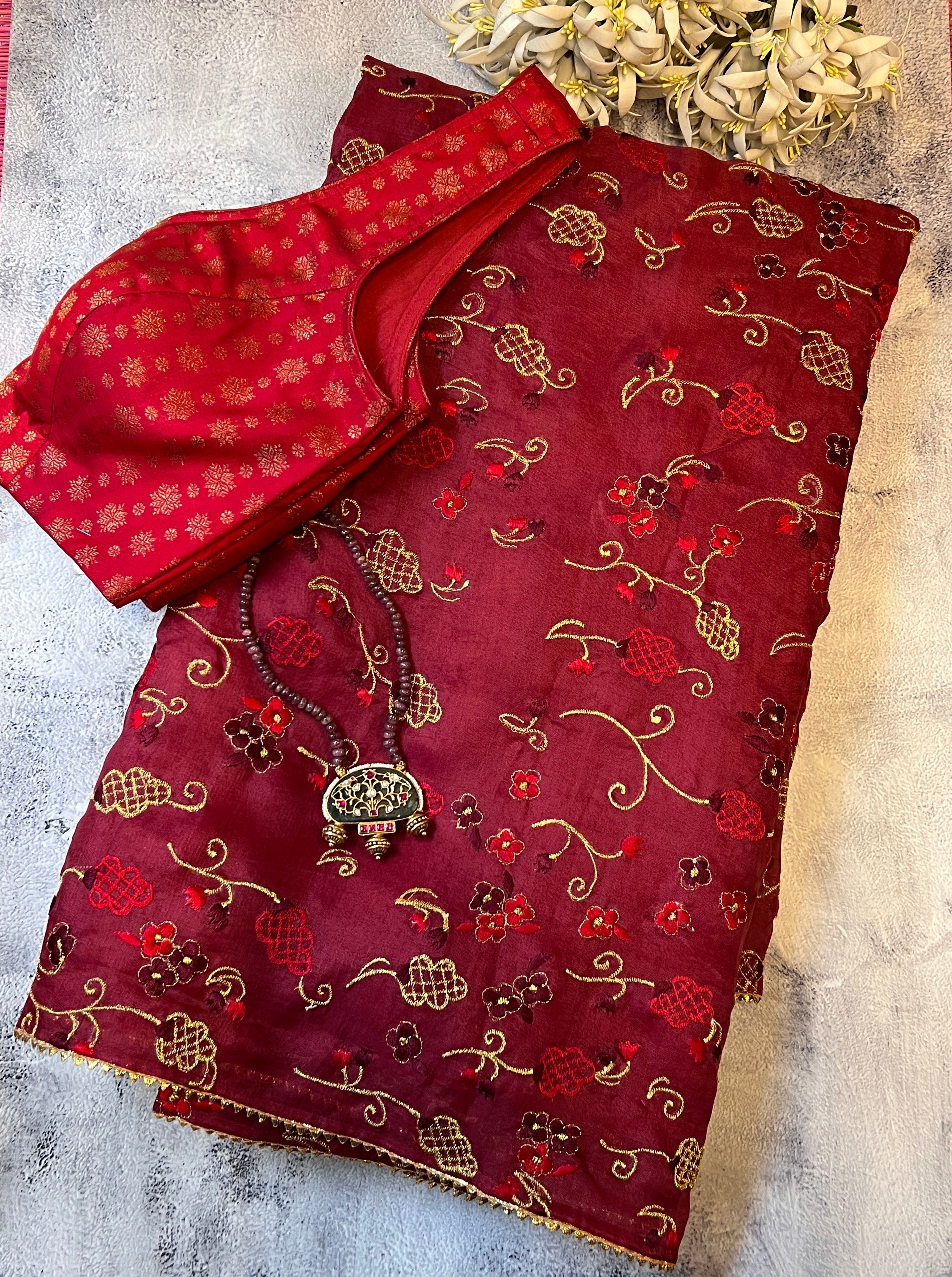 Organza gold embroidered saree