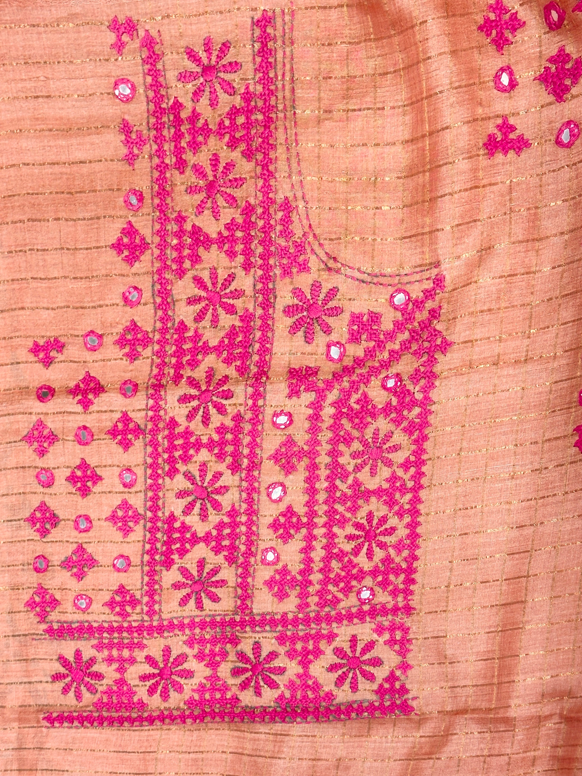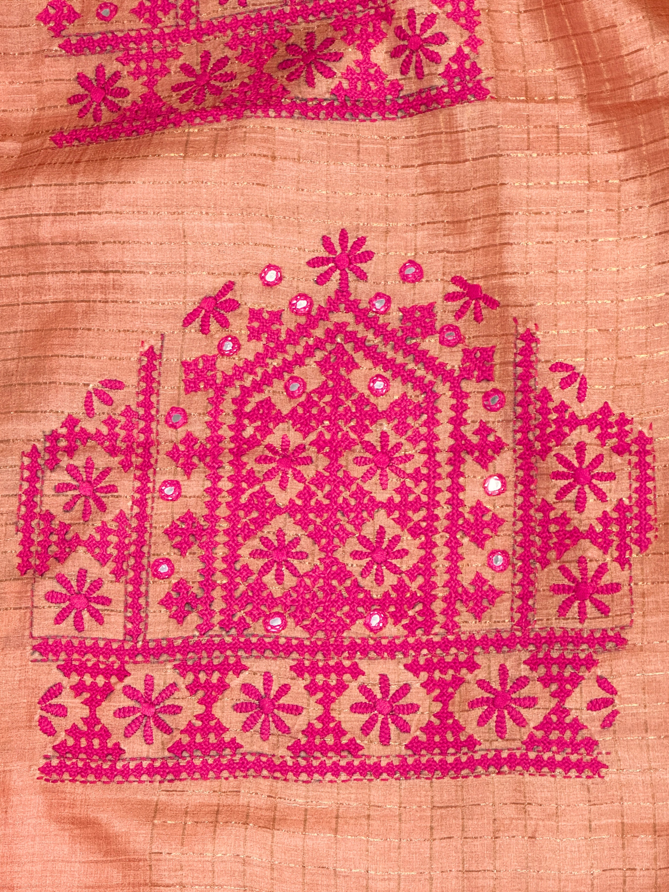 Blouse: Matching blouse with intricate Kutch embroidery.