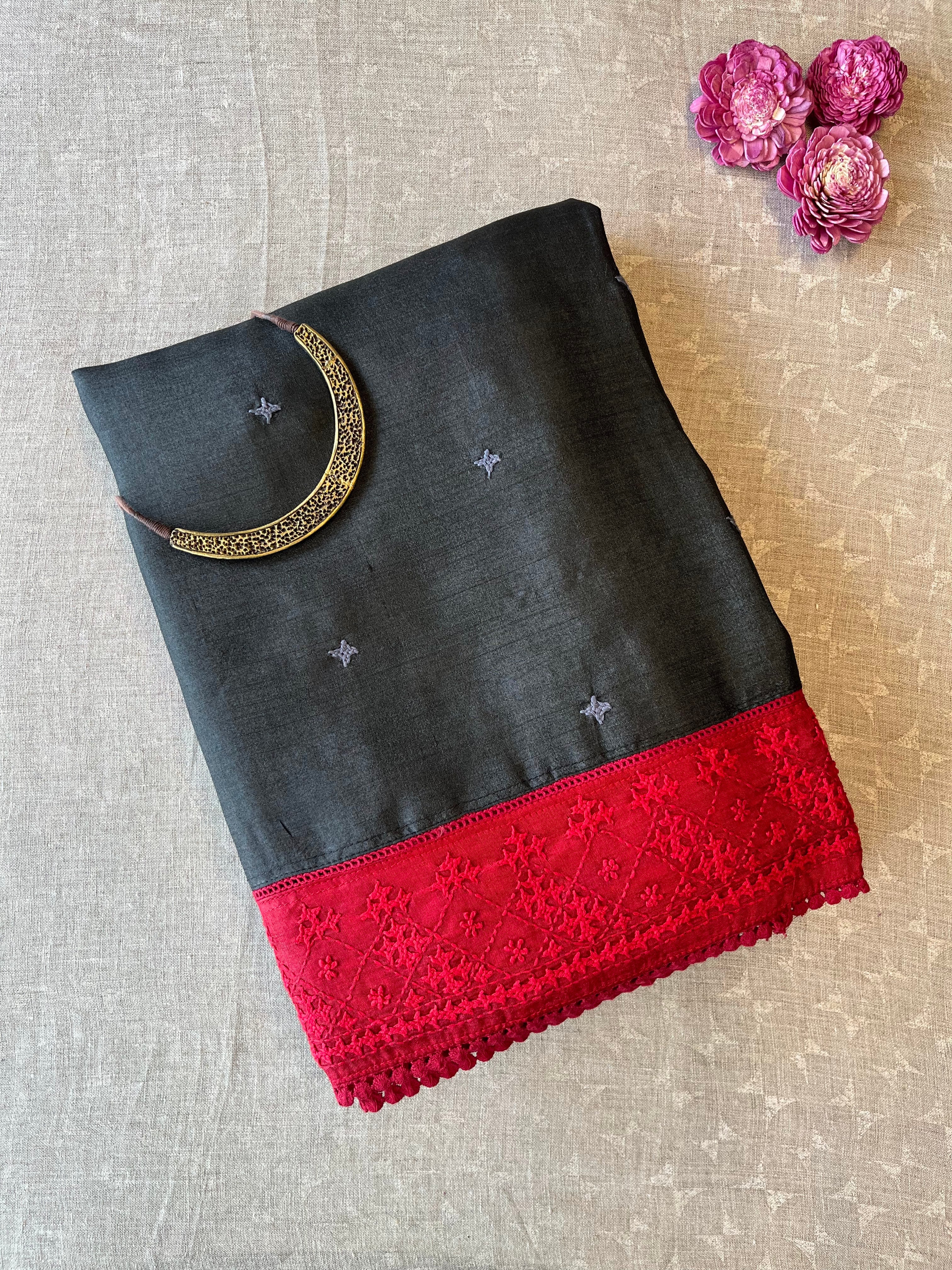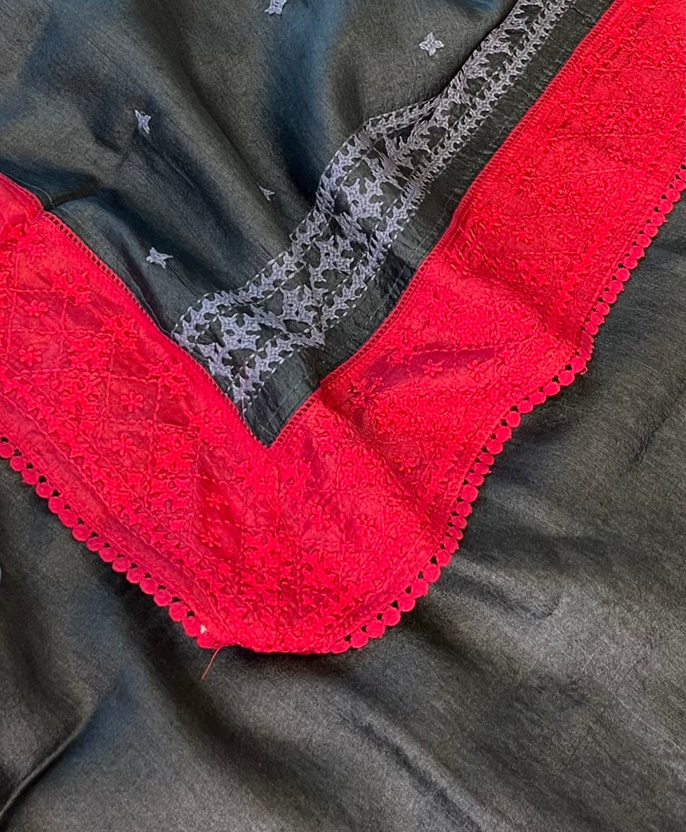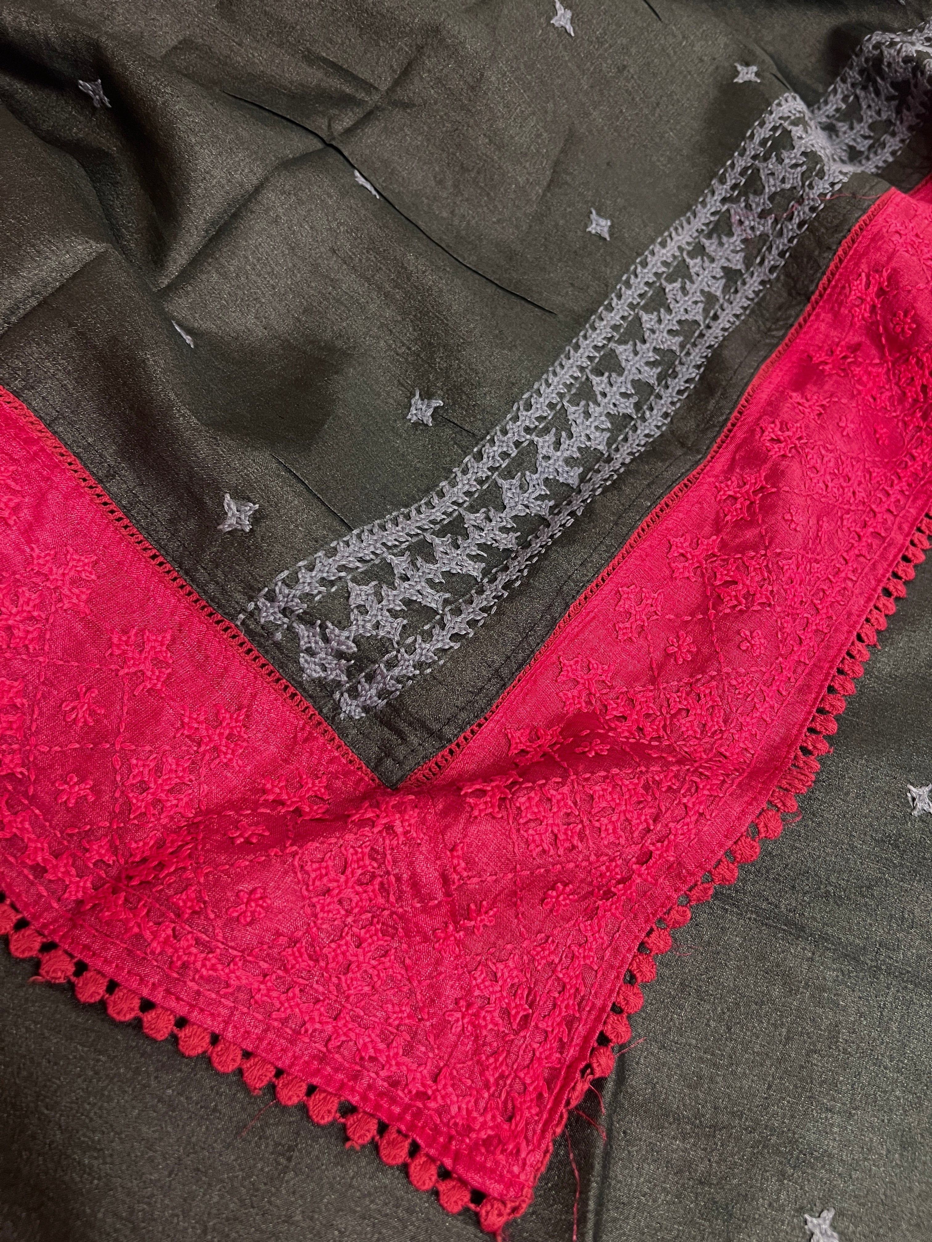 - contrasting hand embroidered Kutch border