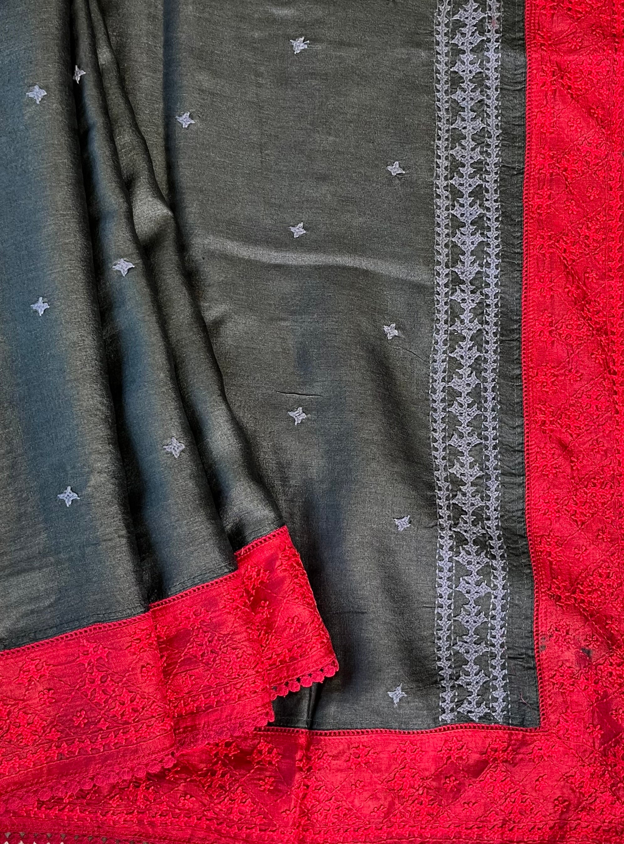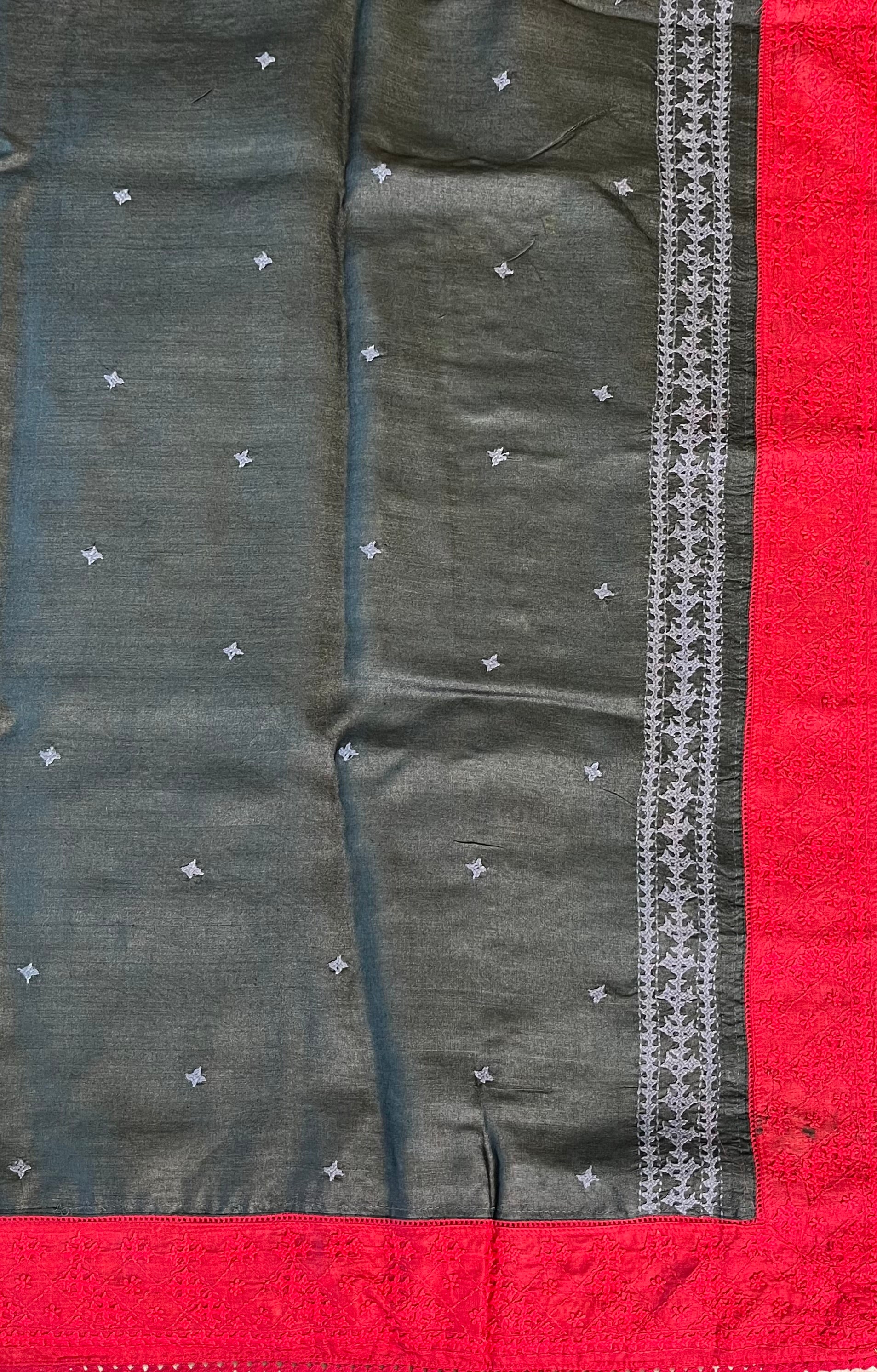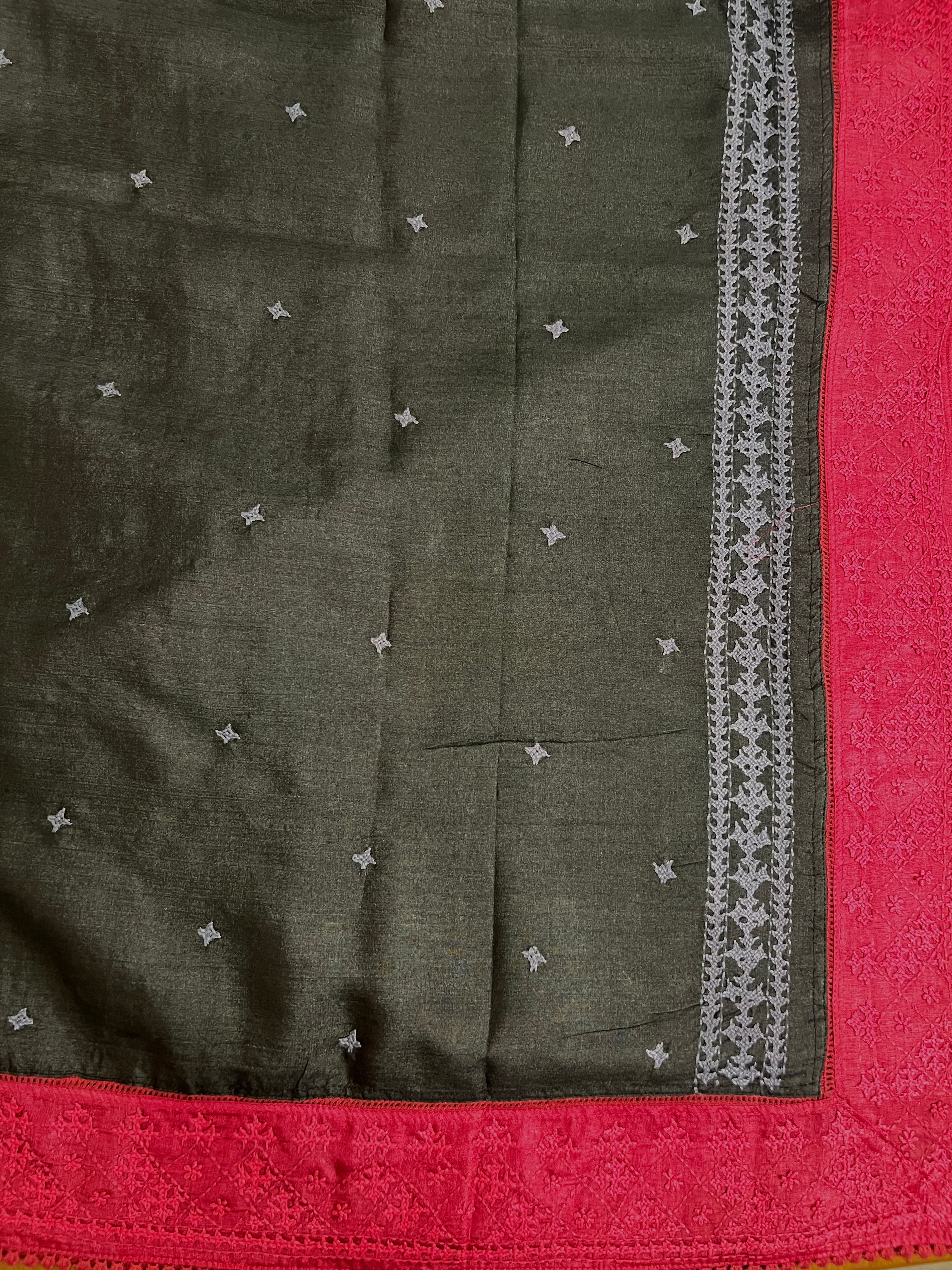 - contrasting hand embroidered Kutch border