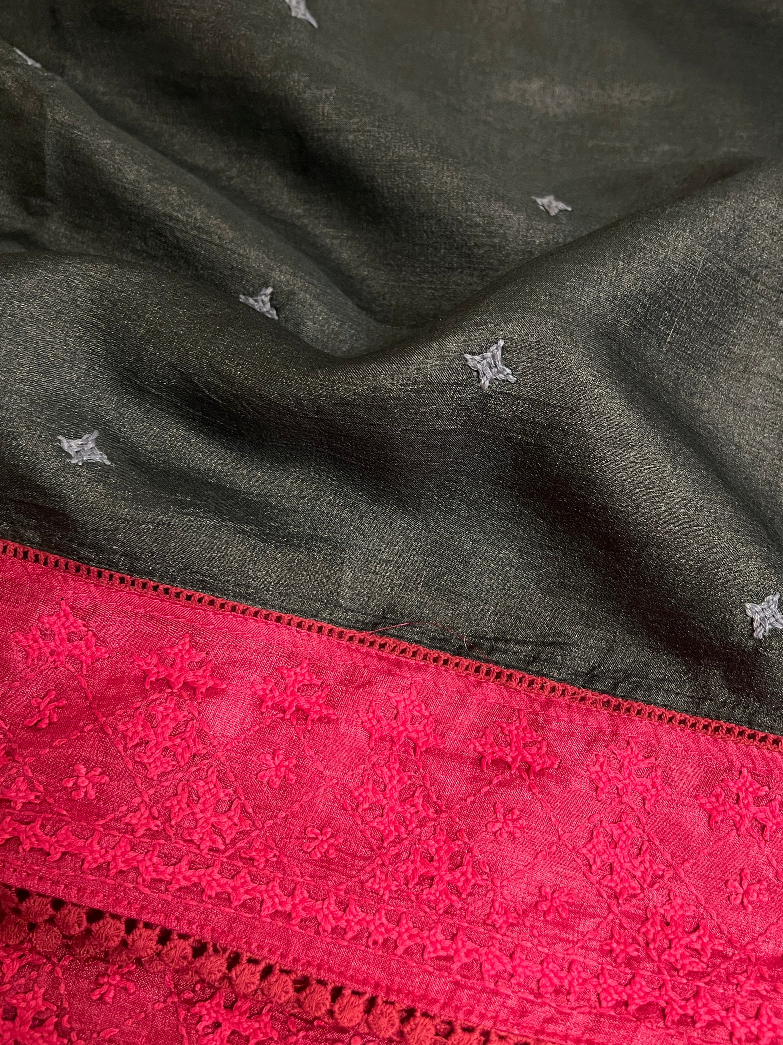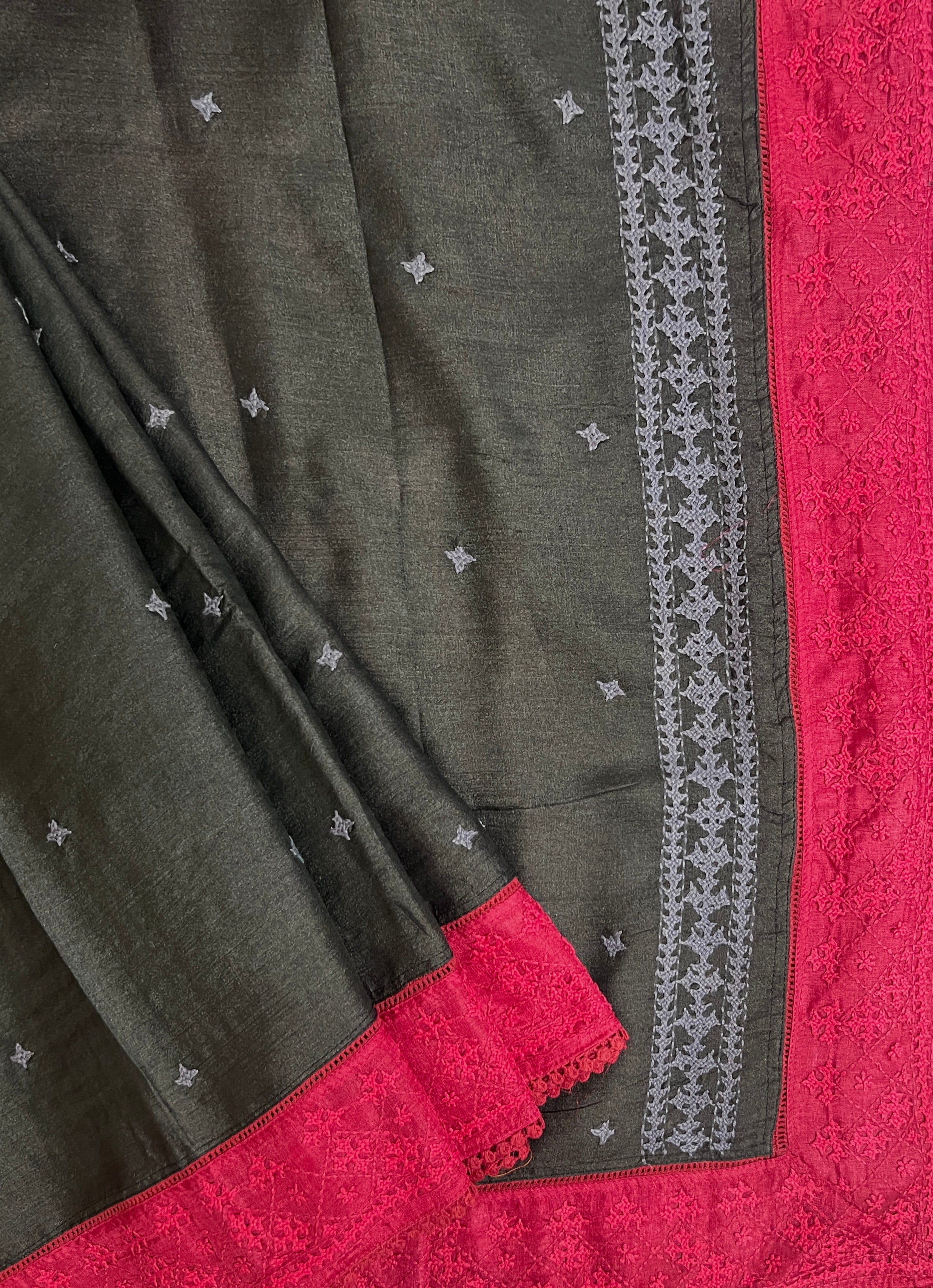 - Handwoven Tussar silk saree