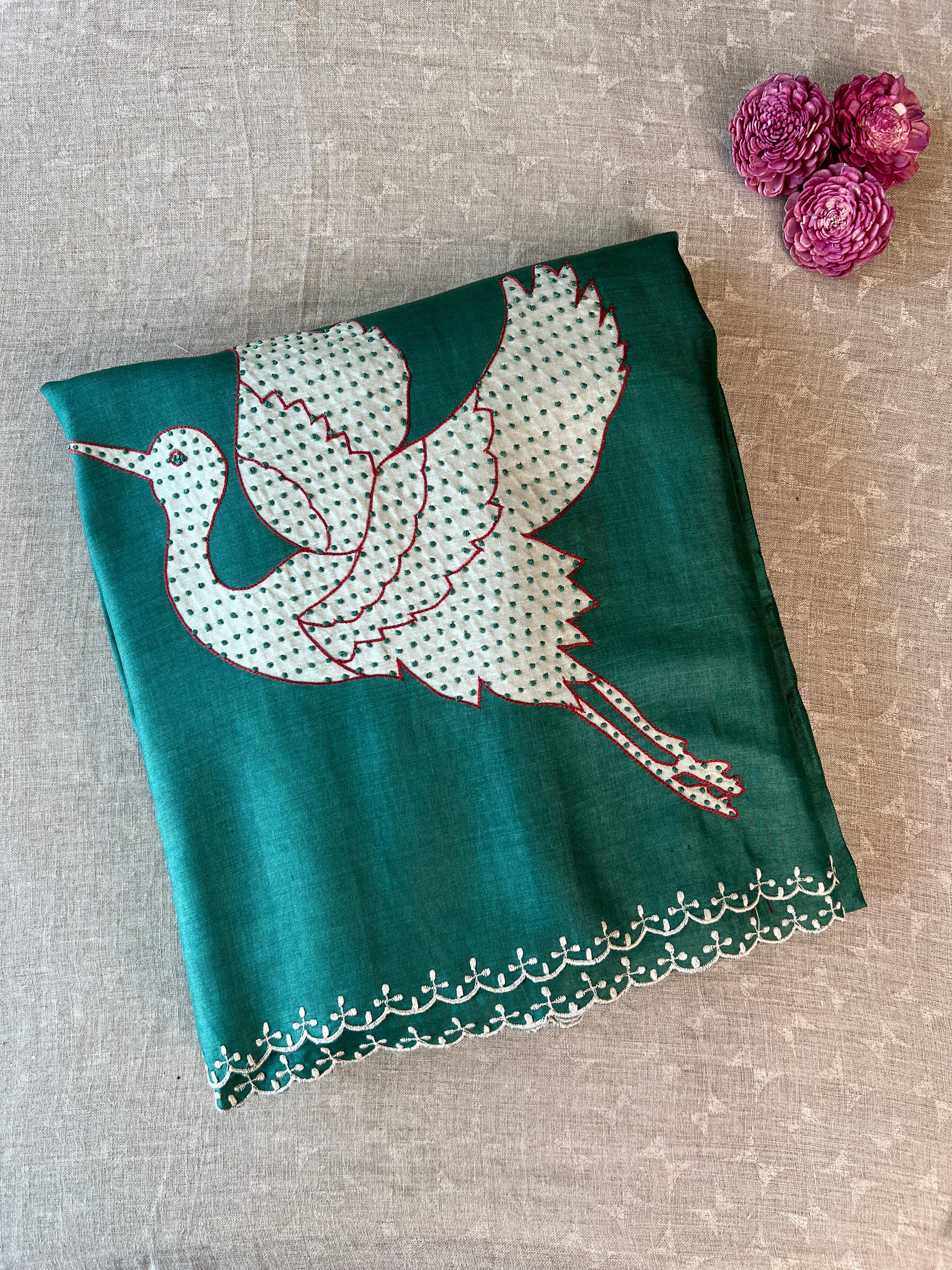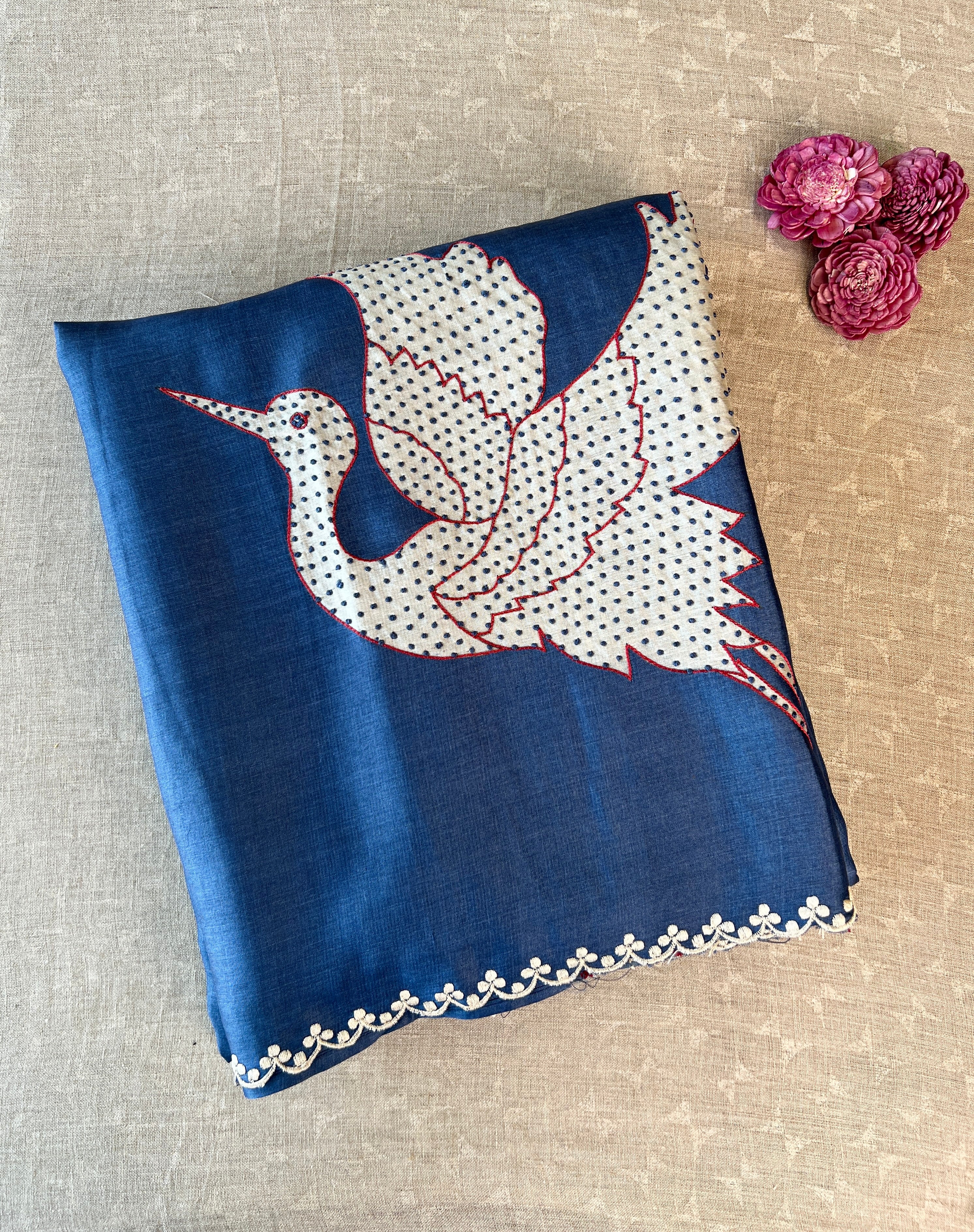 Tussar applique saree
