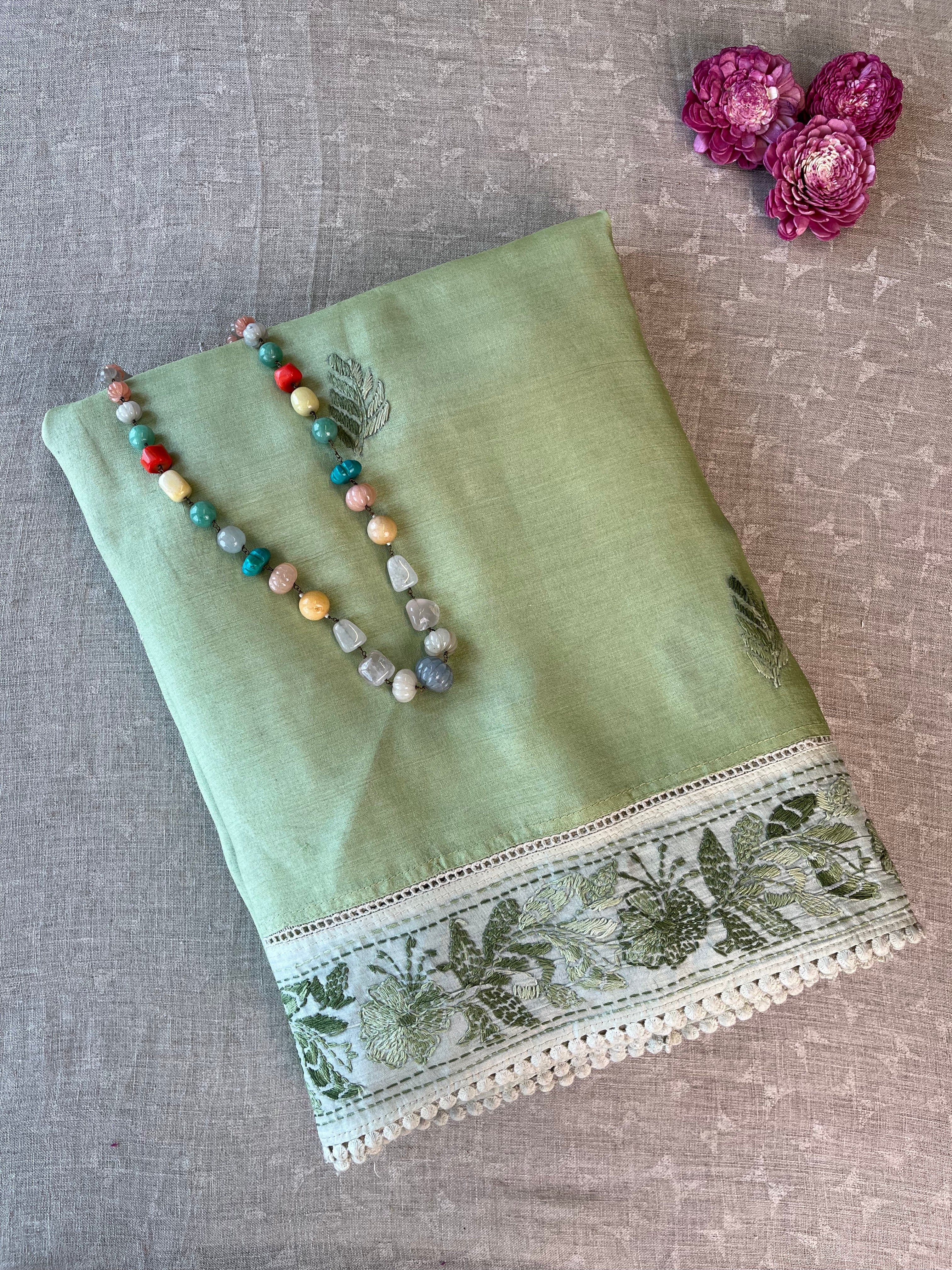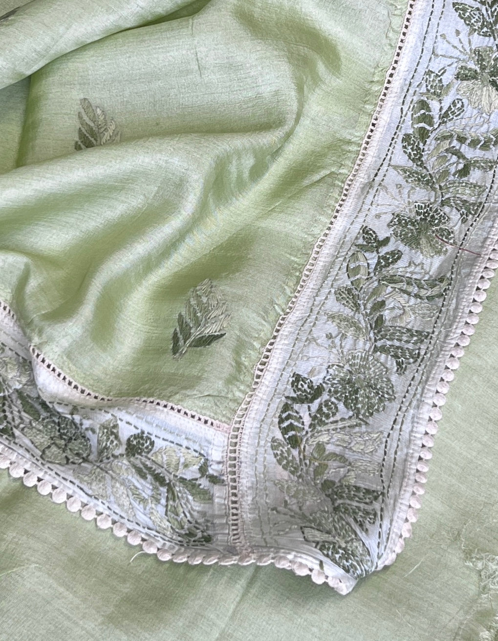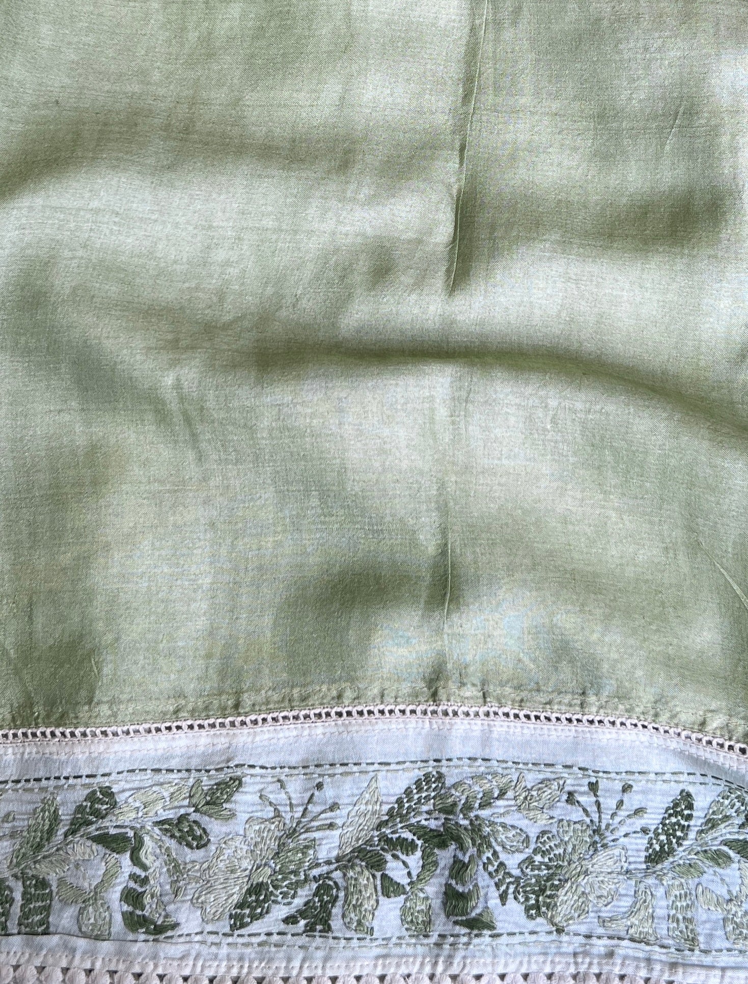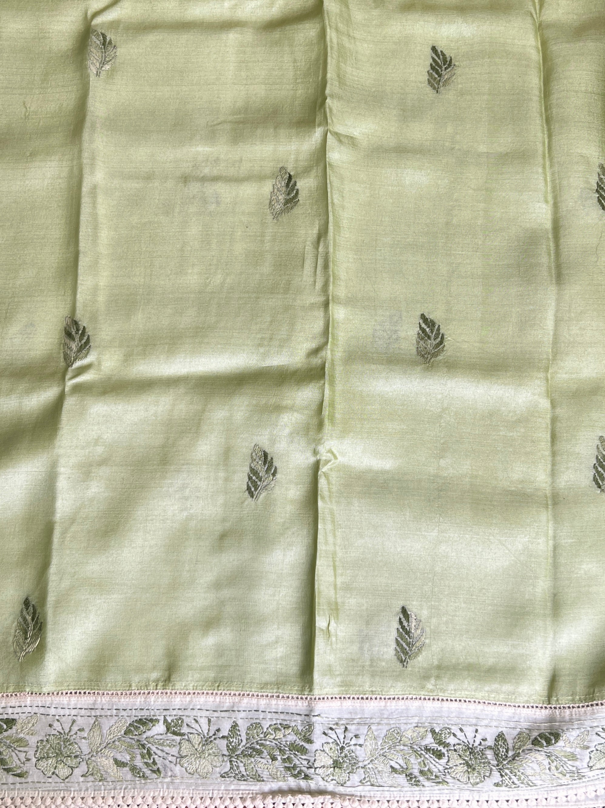 - Hand embroidered chikankari work on the border, and pallu