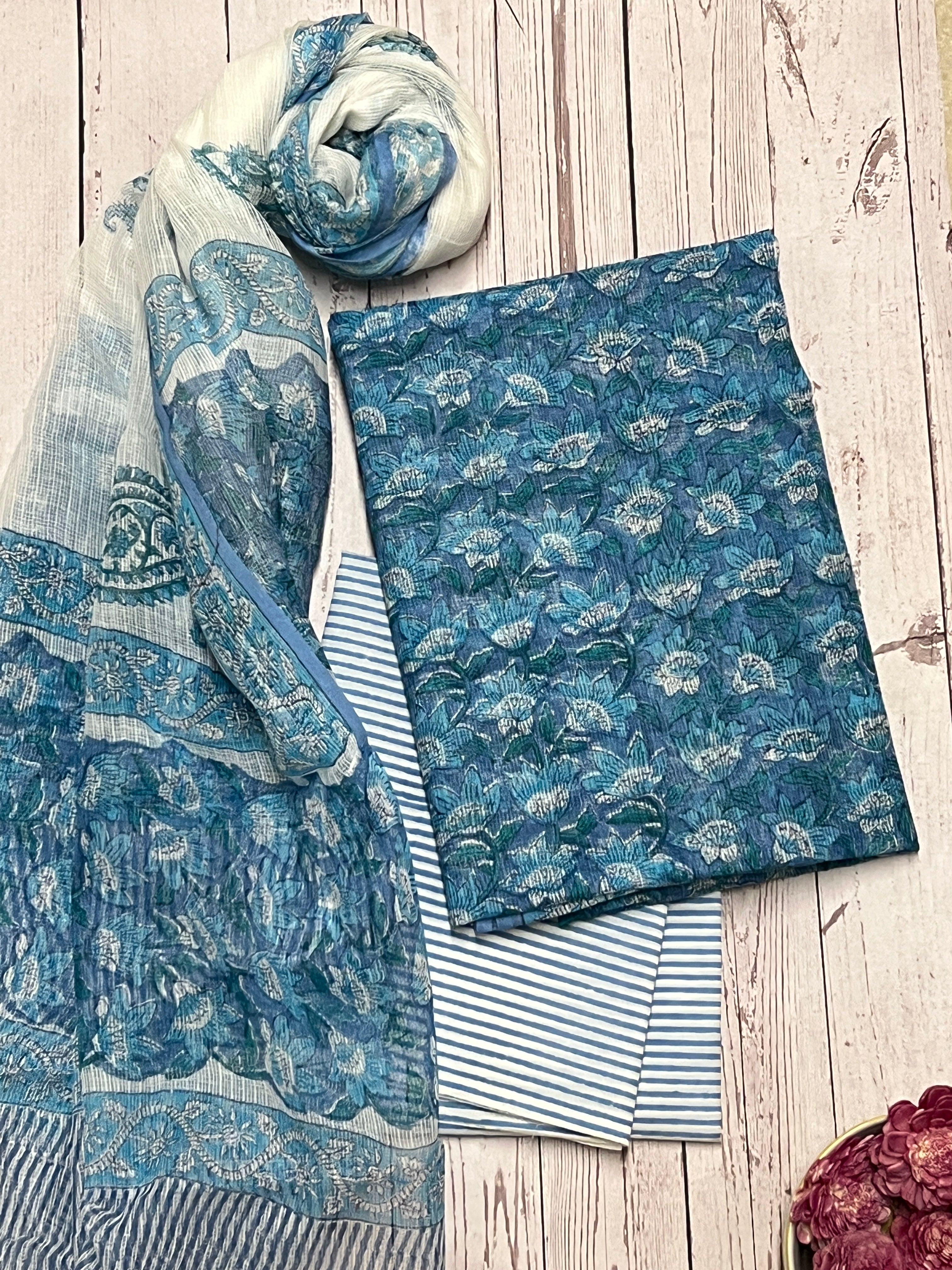 Indigo floral printed kota kurta set