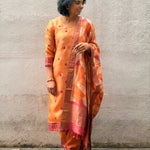 - Comes with a printed tussar dupatta finished with an elegant zari border.
