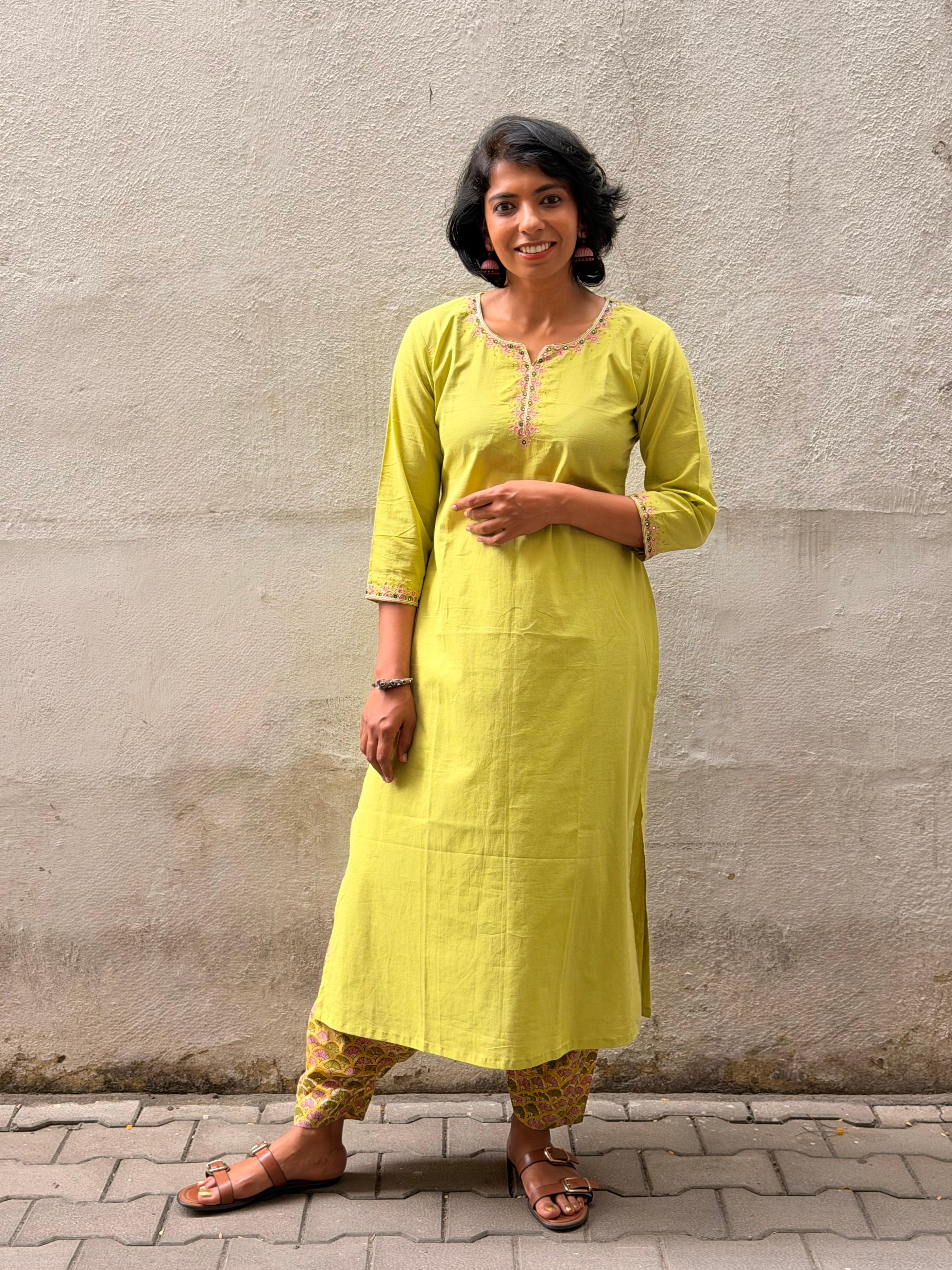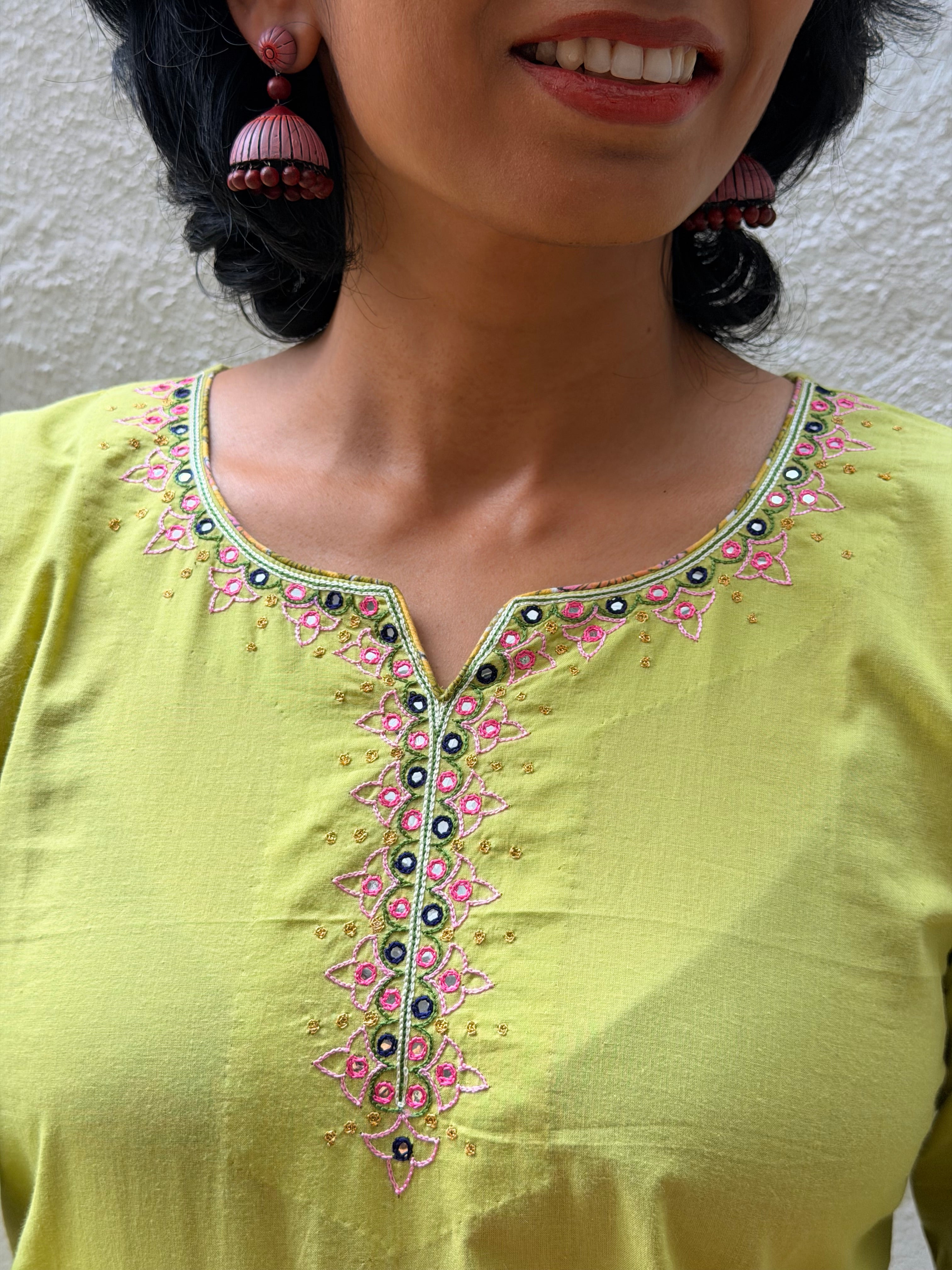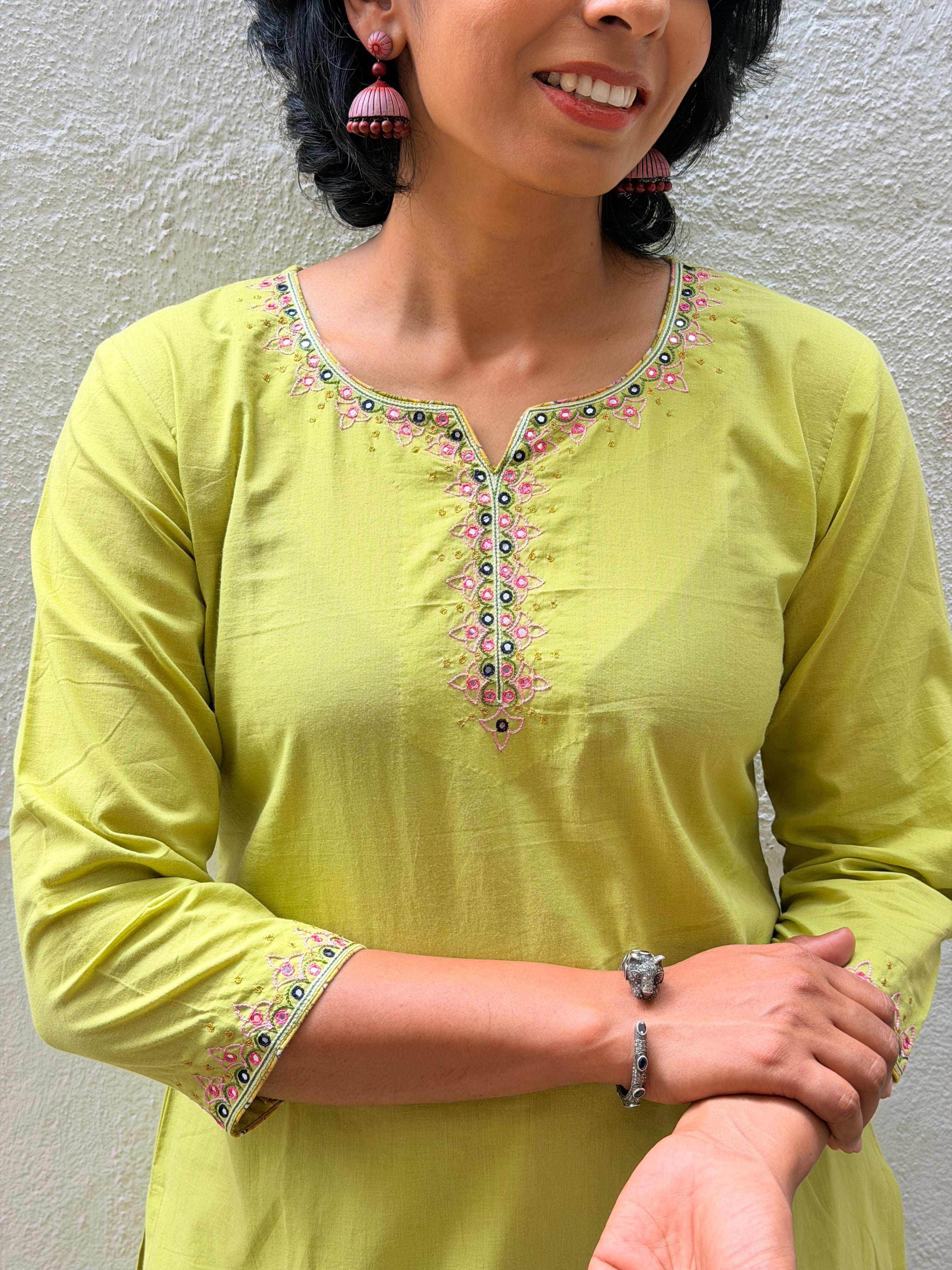 Green Embroidered Kurta Set