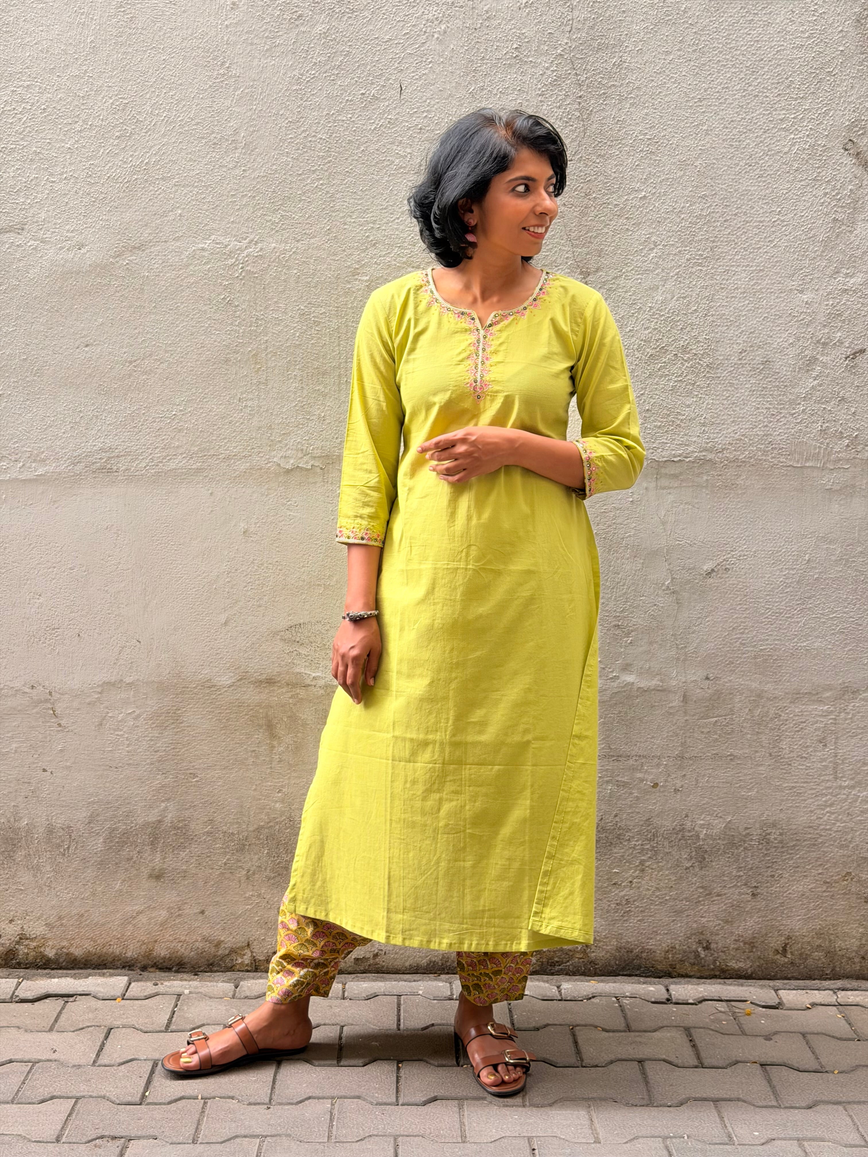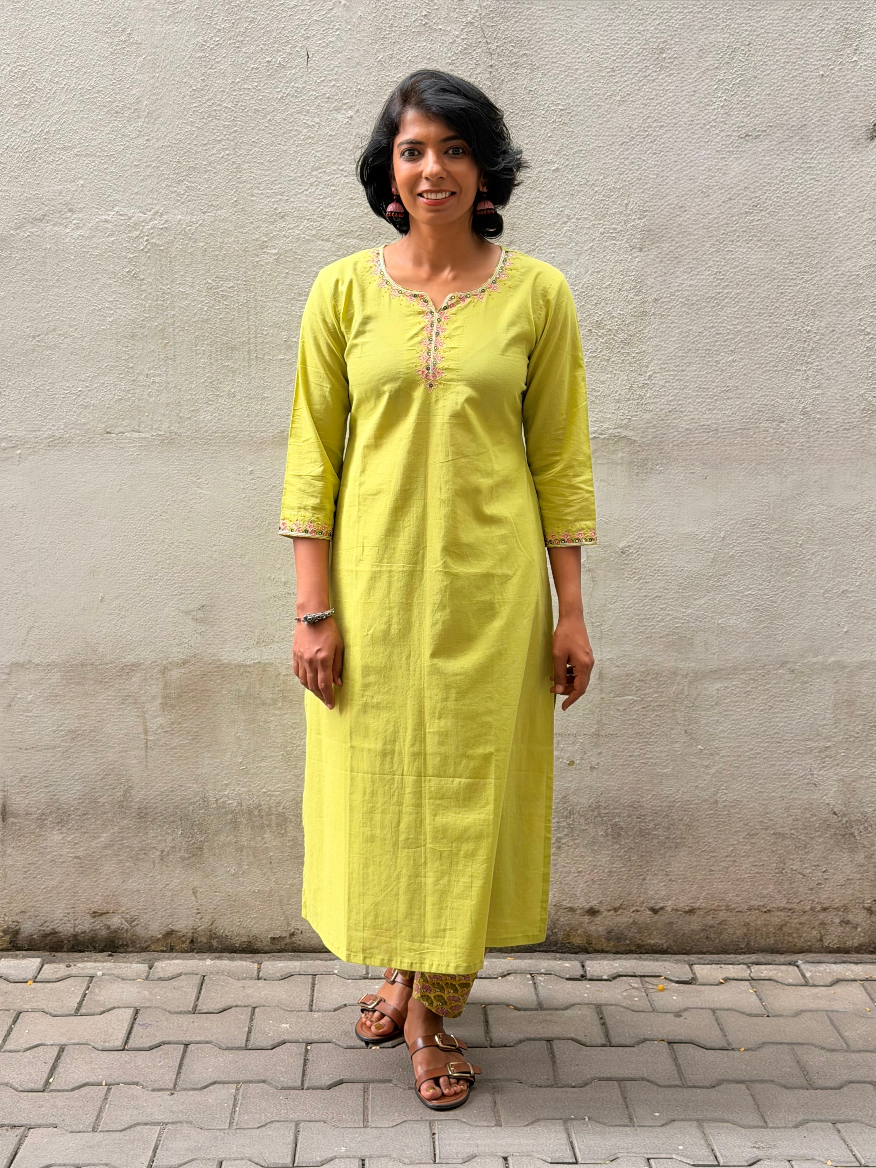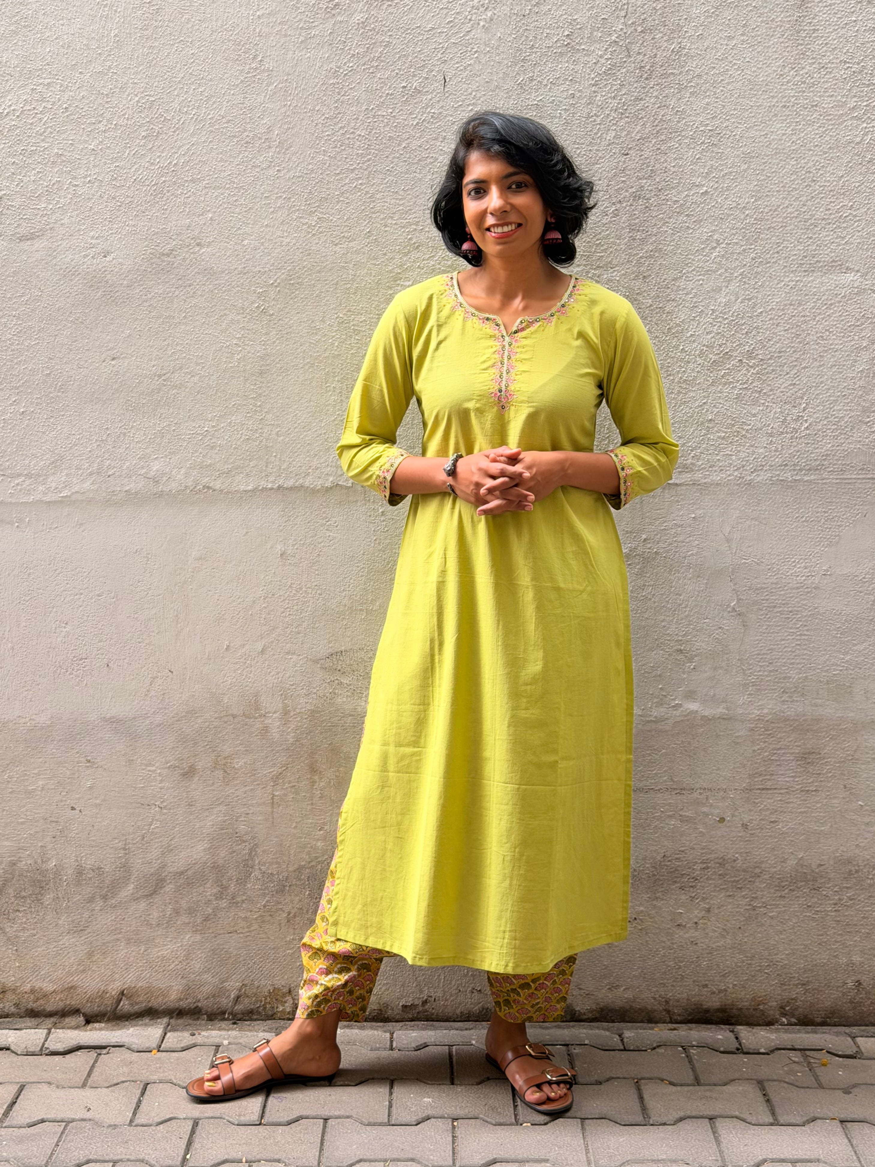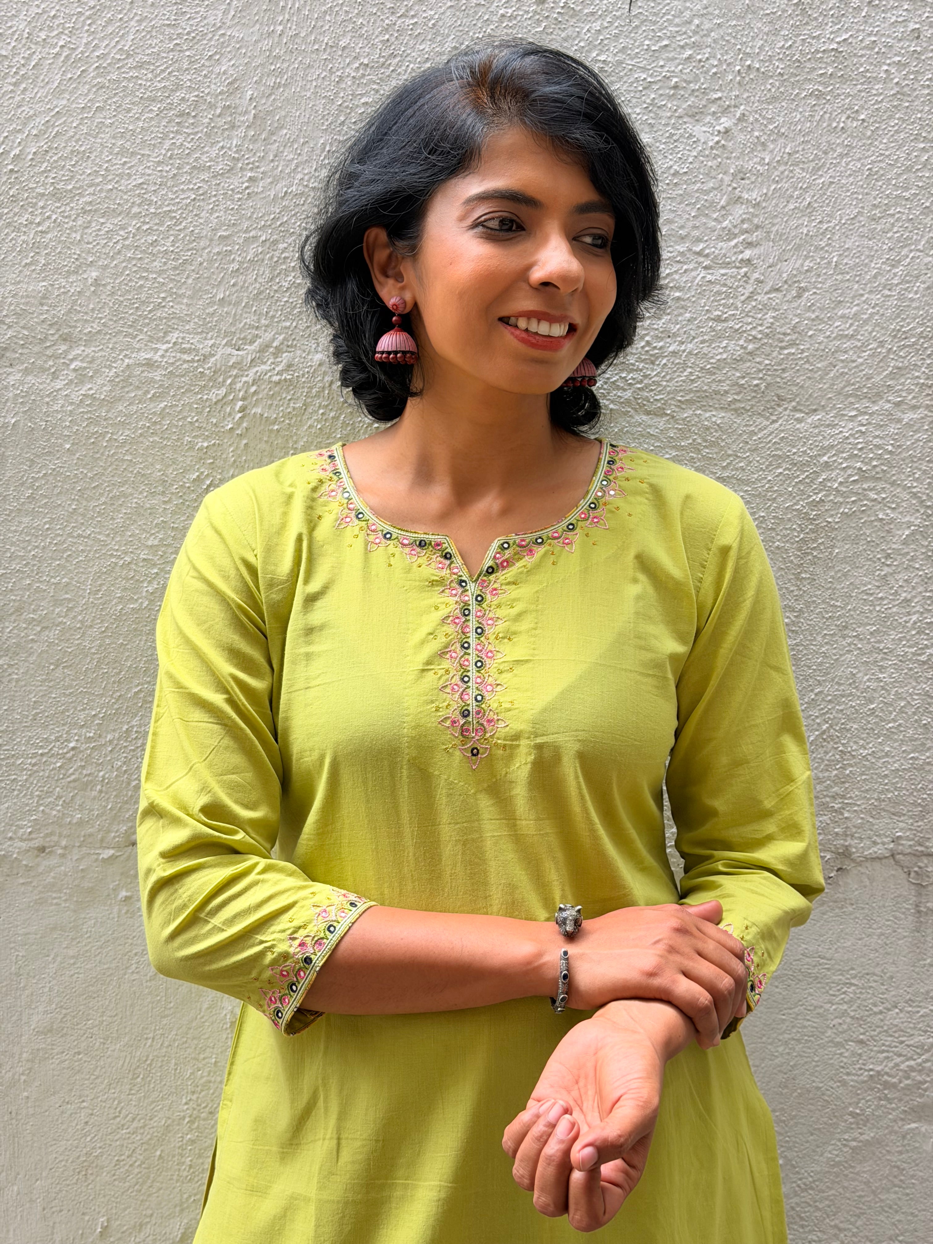Green Embroidered Kurta Set