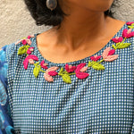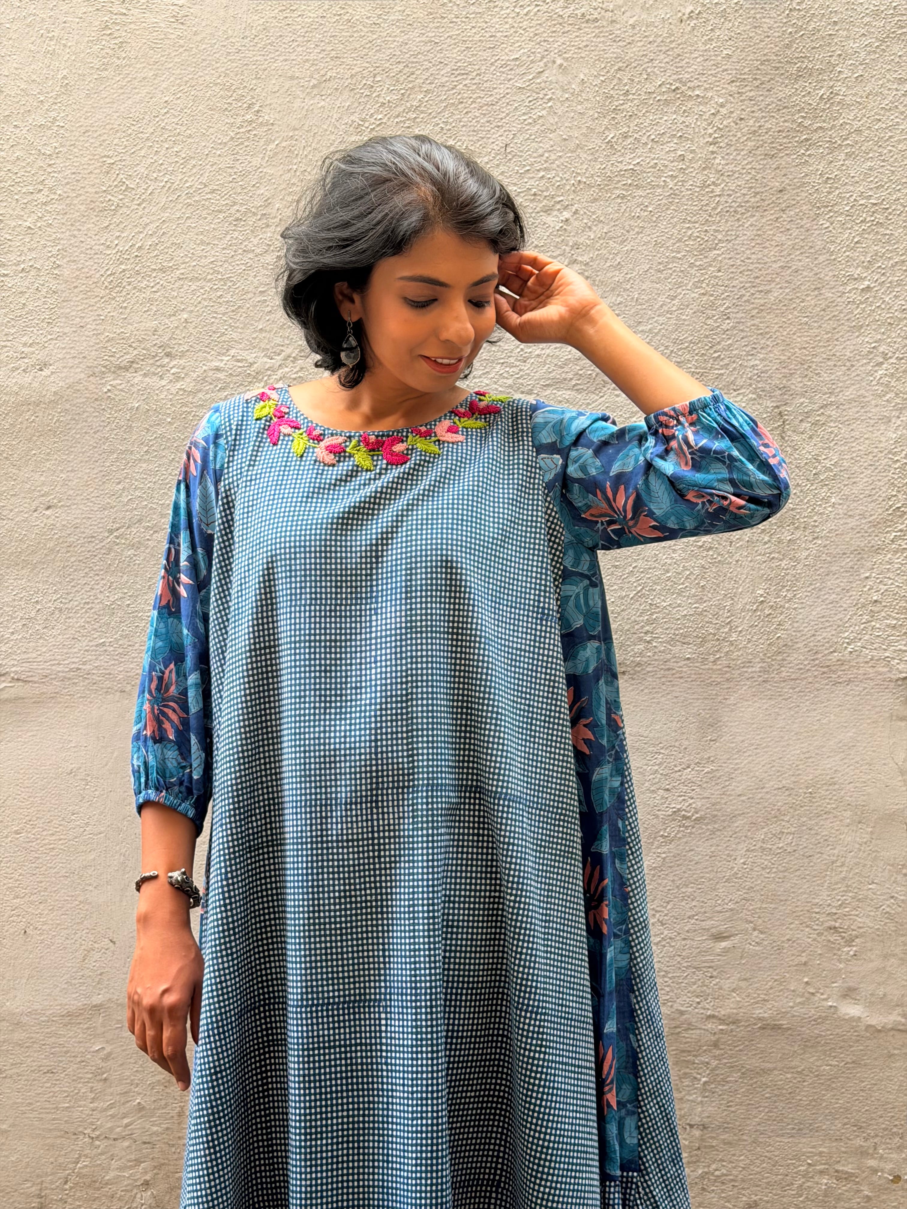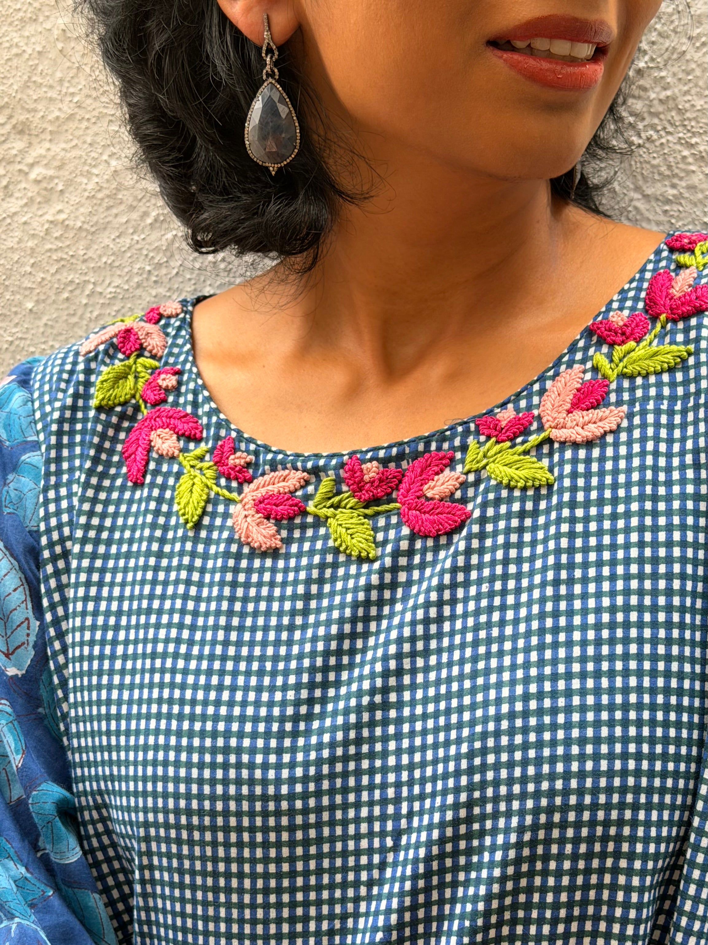 - Unique design combining checks, florals, and texture for an elegant everyday look.