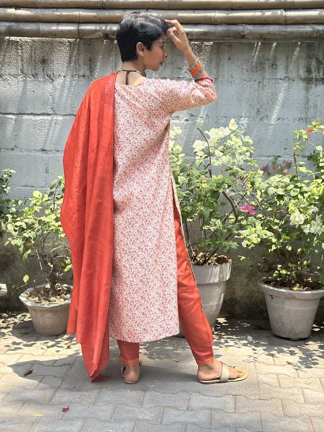 Rang cream orange silk kurta
