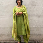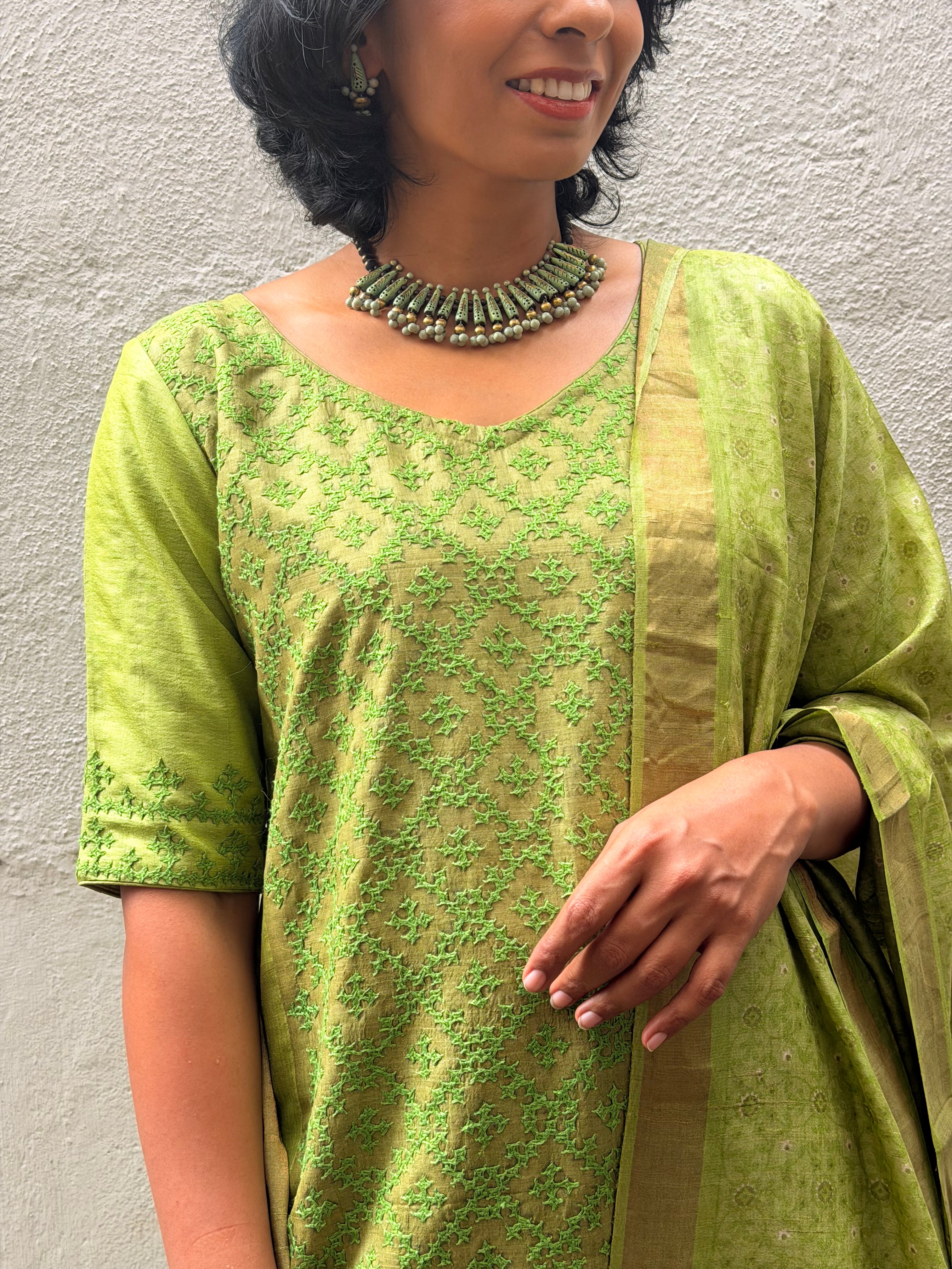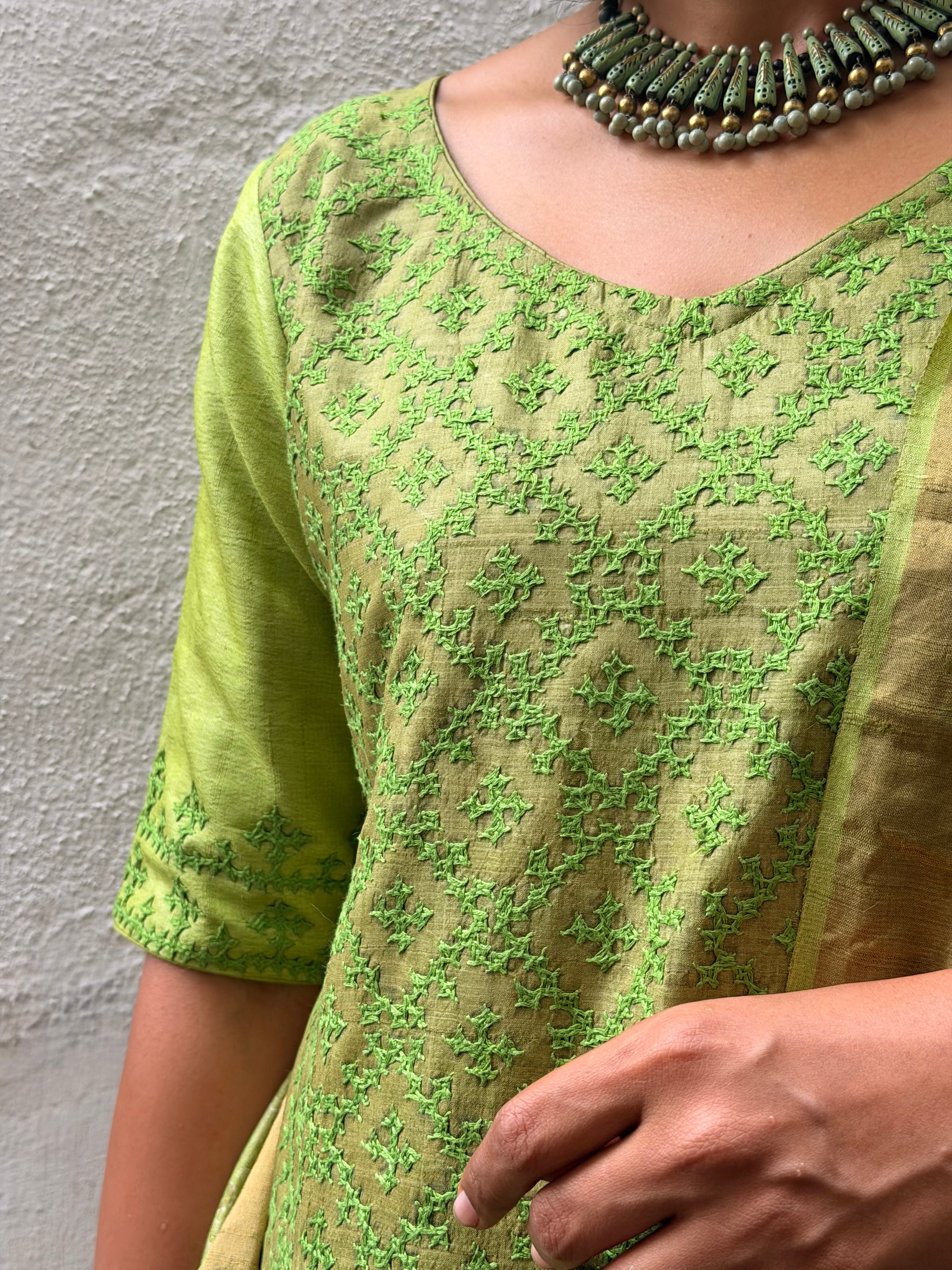Soft Sage Kutch Embroidered Tussar Kurta Set
