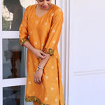 - Hand painted kalamkari detailing on the hemline and sleeves