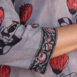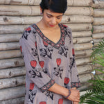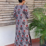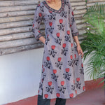 Grey rose printed cotton kurta